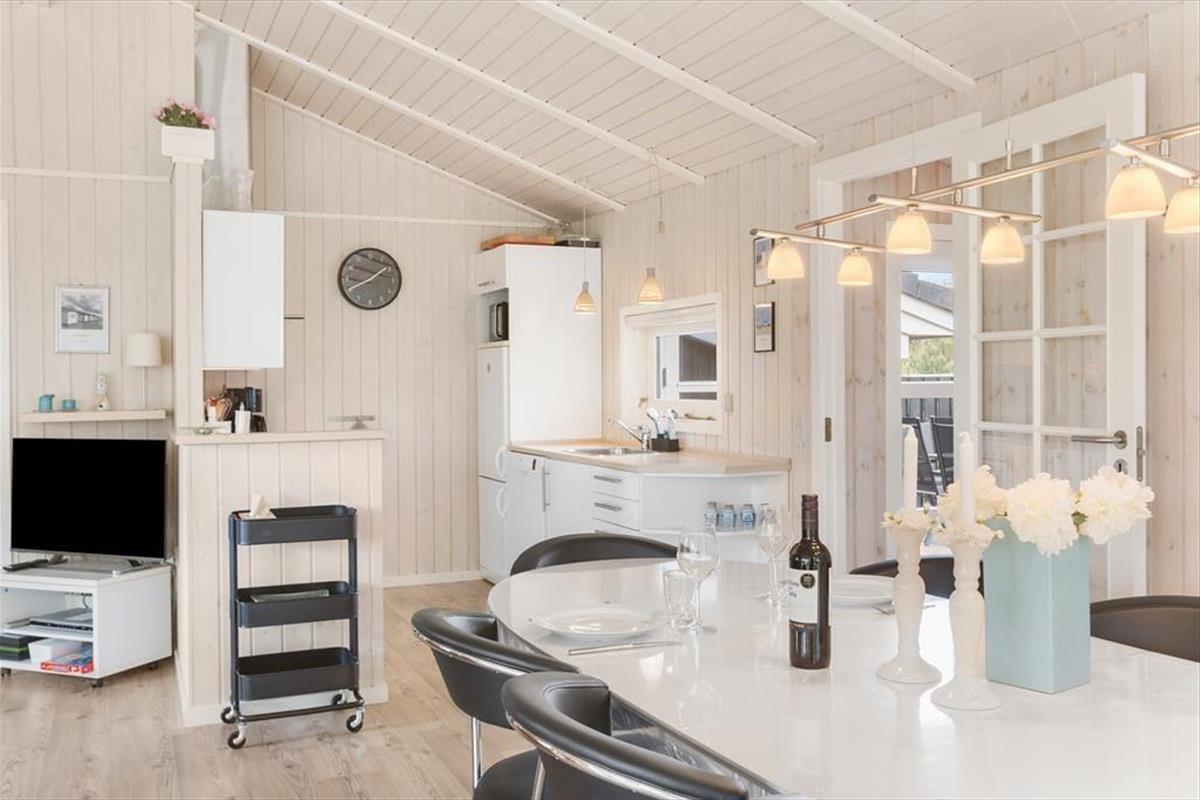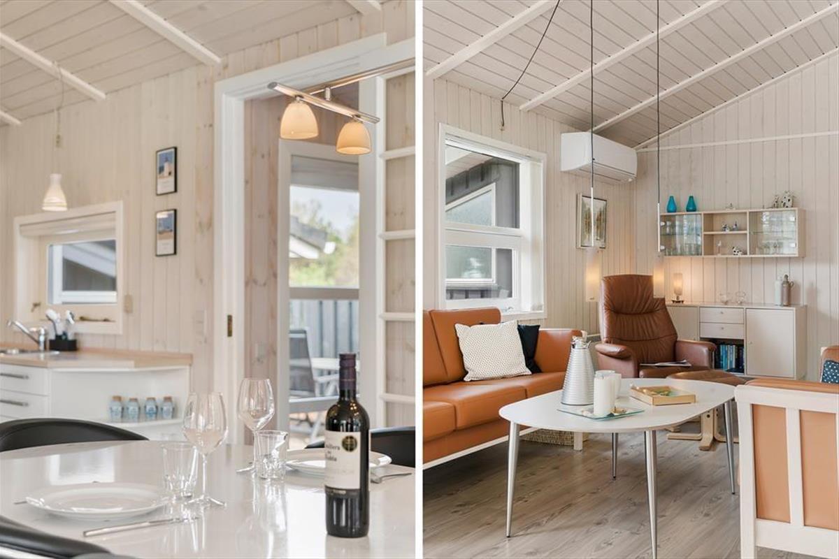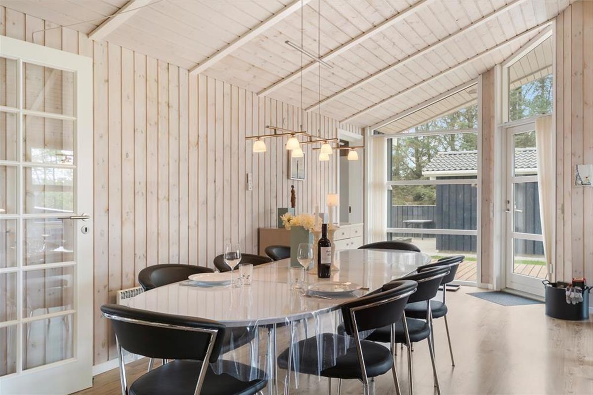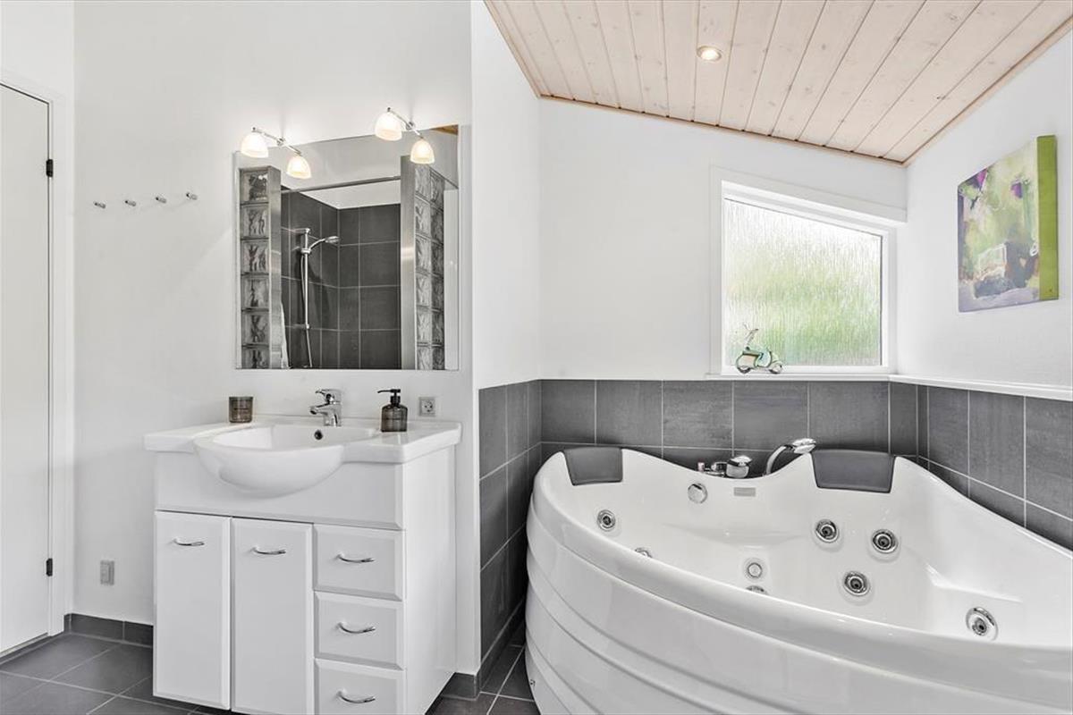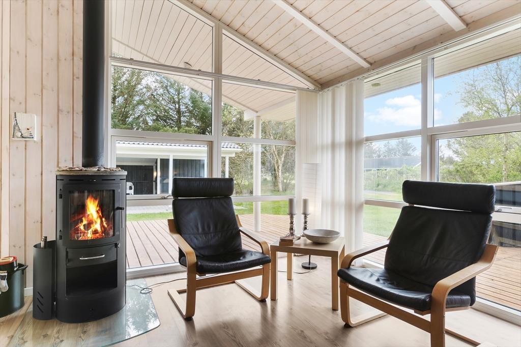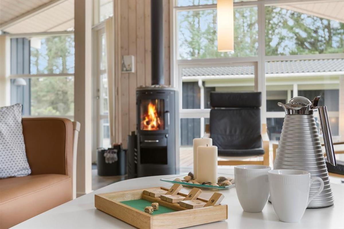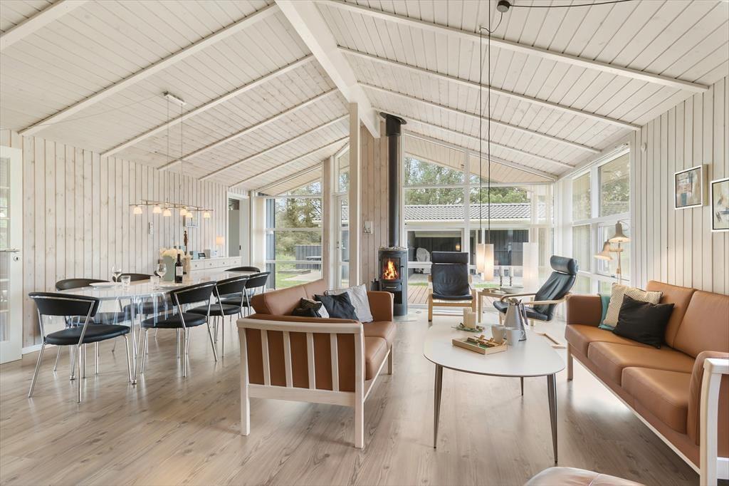 Dieses Ferienhaus bietet nicht nur moderne Annehmlichkeiten wie einen Whirlpool, eine Sauna und WLAN, sondern auch eine stilvolle und geschmackvolle Einrichtung mit schönen Möbeln und feinen Details sowie die gemütliche Atmosphäre, die durch das große Lichtangebot in Kombination mit dem Feuer und der Wärme des Kaminofens entsteht. Hier gibt es viel Platz für acht Personen, die sich in der zentralen Küche-Wohnküche mit direktem Zugang zum Essbereich und dem Wohnzimmer mit Sofas und Fernseher treffen können. Das Ferienhaus verfügt zudem über drei Schlafzimmer und zwei Badezimmer und schließlich noch ein weiteres Schlafzimmer, das man über die Terrasse im Freien erreicht. Dieses Zimmer eignet sich besonders gut für Teenager oder größere Kinder, die sich zurückziehen möchten, um zu spielen oder zu entspannen. Das Ferienhaus eignet sich hervorragend für große Familien oder zwei bis drei Paare, die Nordjütland gemeinsam erleben möchten.