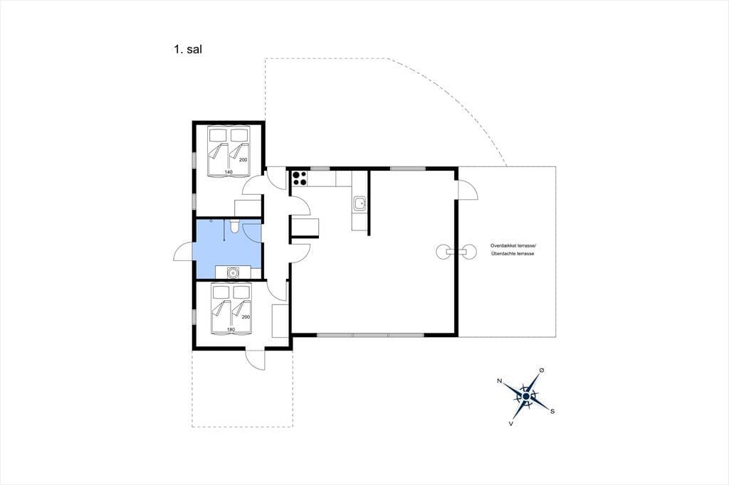 Vom Ferienhaus sind es nur 350 Meter zu einem der besten Strände der Westküste, an dem man den ganzen Tag schwimmen und lange, romantische Spaziergänge am Wasserrand unternehmen kann. Auf dem Grønhøj Strand Campingplatz kann man in der Sommerzeit frische Brötchen und Zeitungen kaufen, ansonsten gibt es gute Einkaufsmöglichkeiten in Saltum mit Supermarkt, Bäckerei und Metzgerei. Es wird auch empfohlen, die beliebte Molkerei in Ingstrup zu besuchen, wo man lokal hergestellten Käse und frisch gemahlenes Butter kaufen kann. Grønhøj liegt zwischen den größeren Ferienorten Blokhus und Løkken, die beide verschiedene Veranstaltungen, zahlreiche Einkaufsmöglichkeiten sowie gute Cafés und Restaurants bieten.