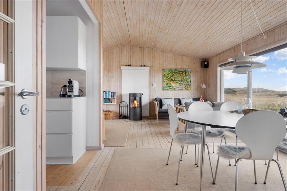 Das Ferienhaus umfasst 72 m² und strahlt Gemütlichkeit und Charme aus. Es ist eine gute Wahl für den anspruchsvollen Ferienhausgast und eignet sich besonders gut für ein oder zwei Paare, die dem Alltag entfliehen und Entspannung, Ruhe und Gemütlichkeit in den Vordergrund stellen möchten. Es liegt hoch und bietet von den großen Fensterpartien einen herrlichen Blick auf die Dünen und die Nordsee sowohl aus der Küche als auch aus dem Wohnraum – hier kann man wirklich viele schöne Momente mit der Tageszeitung oder einem guten Buch verbringen. Das Ferienhaus ist gut gepflegt, hübsch möbliert und in einer hellen und freundlichen Atmosphäre eingerichtet. Es gibt 2 Schlafzimmer mit Doppelbetten und 1 Schlafzimmer mit einem Einzelbett.