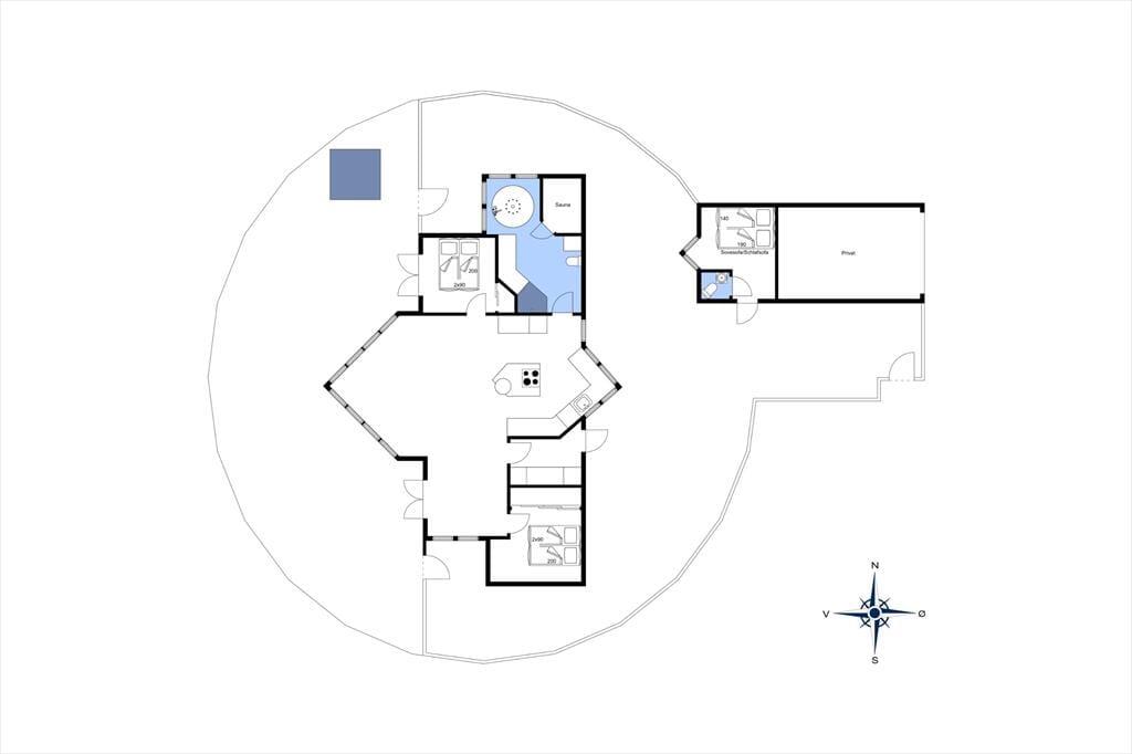 Das Ferienhaus liegt völlig ungestört, aber dennoch in der Nähe des Zugangs zum Grønhøj Strand, einem der schönsten Strände in der gesamten Jammerbugt. Im Westen gibt es eine große Außenterrasse, auf der Sie den wunderschönen Meerblick den ganzen Tag genießen können, und außerdem gibt es eine große, geräumige Terrasse nach Osten, die zu 100 % abgeteilt ist und somit Privatsphäre garantiert.