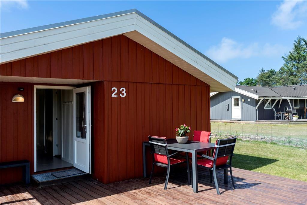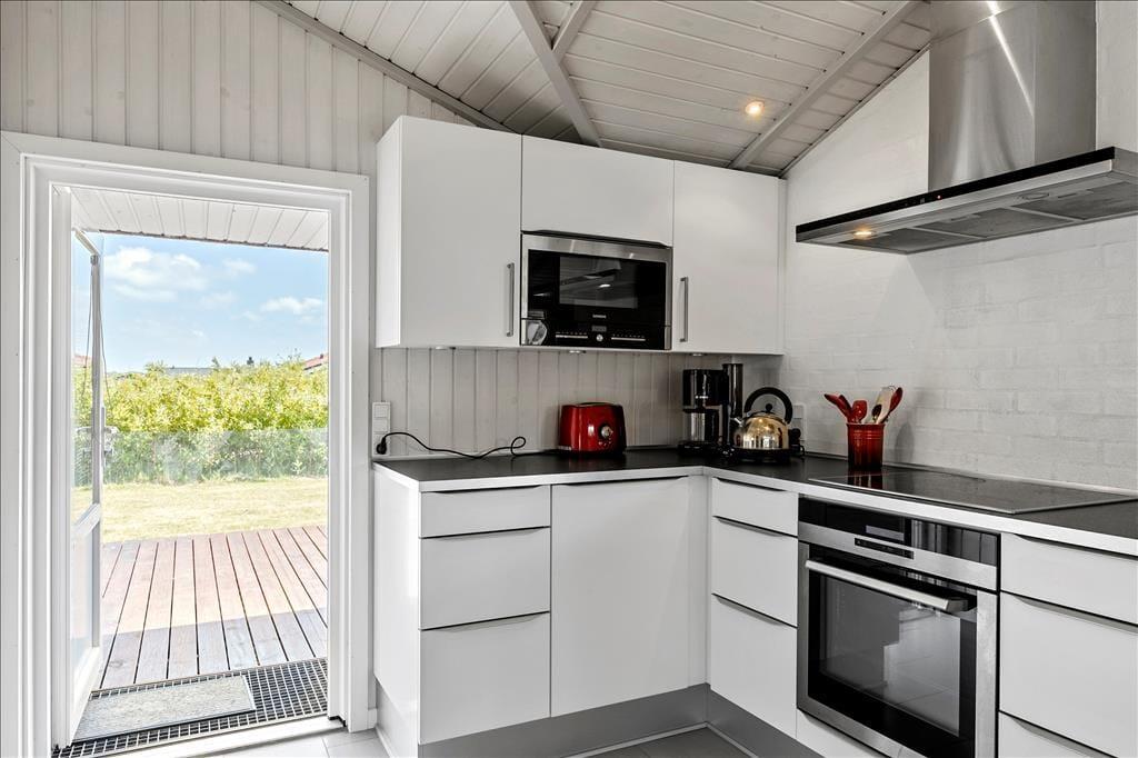 Nur 850 Meter vom kilometerlangen, weißen Sandstrand entfernt, liegt das Ferienhaus im naturschönen Gebiet Grønhøj. Hier gibt es eine Fülle an schöner Natur, Wäldern, Dünenlandschaften und einen sehr kinderfreundlichen Badestrand. In Løkken kann man einkaufen, shoppen, essen und die traditionellen weißen Strandhäuser sowie den schönen Hafen auf dem Strand erleben.