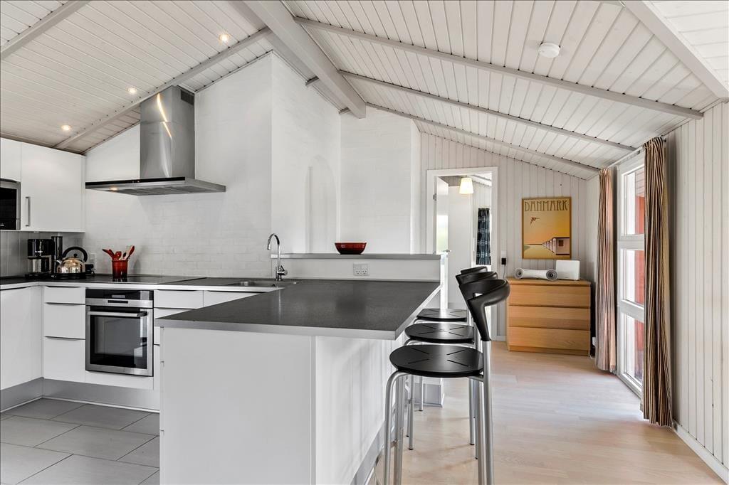 Das Ferienhaus wurde umfassend renoviert und präsentiert sich heute in absolutem Topzustand. Vom Eingang gelangt man direkt in die helle und moderne Küche mit Hochglanzschränken und Geschirrspüler. Darauf folgt das Wohnzimmer, in dem Dachfenster für eine wunderschöne Lichtdurchflutung sorgen. Das Wohnzimmer ist hell und freundlich und bietet einen einfachen Zugang zur teilweise überdachten Terrasse. Das Ferienhaus verfügt über drei Schlafzimmer, alle mit Doppelbett. Im schönen und hell eingerichteten Badezimmer kann man im Whirlpool und in der Sauna entspannen; hier gibt es einfach alles, was man sich von einem guten und gelungenen Urlaub wünscht.