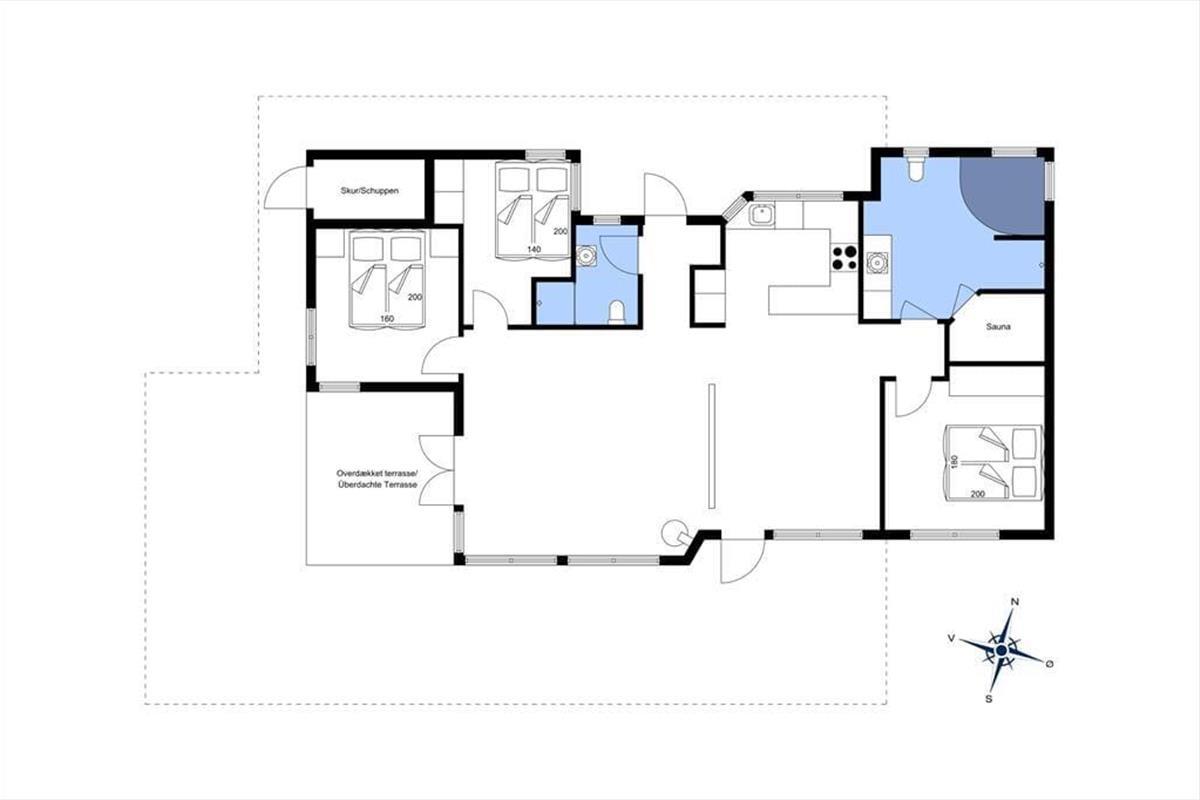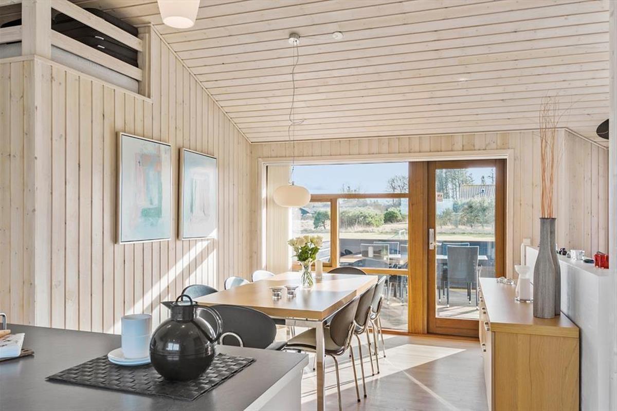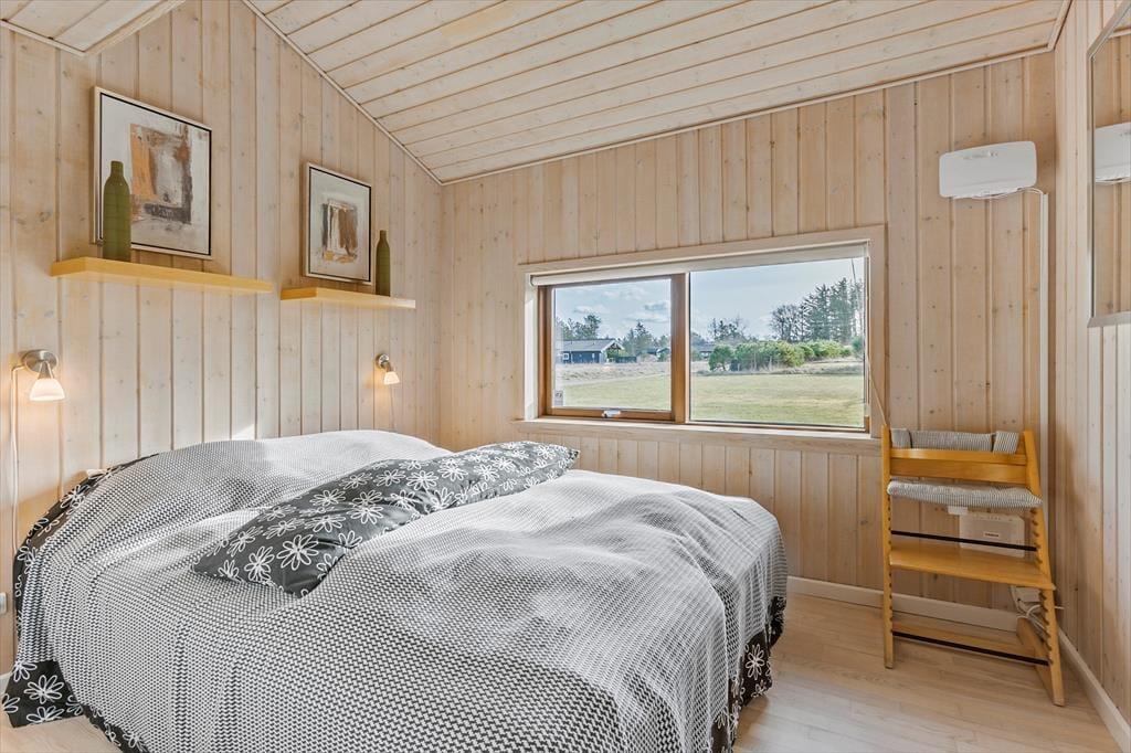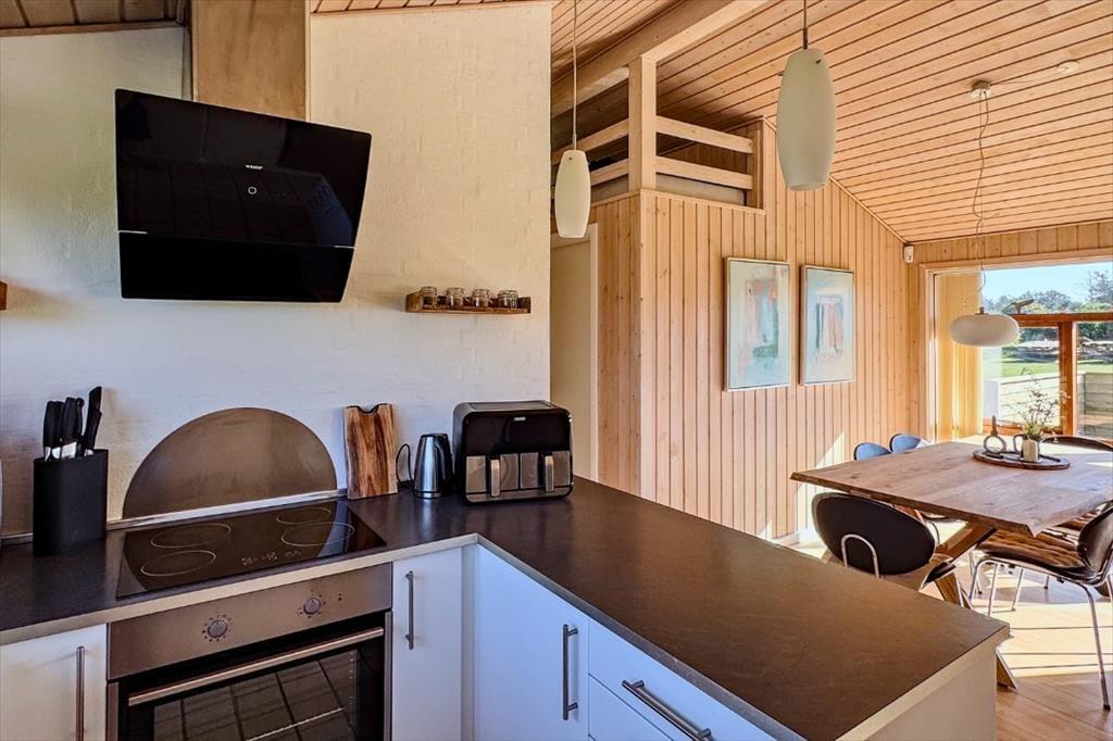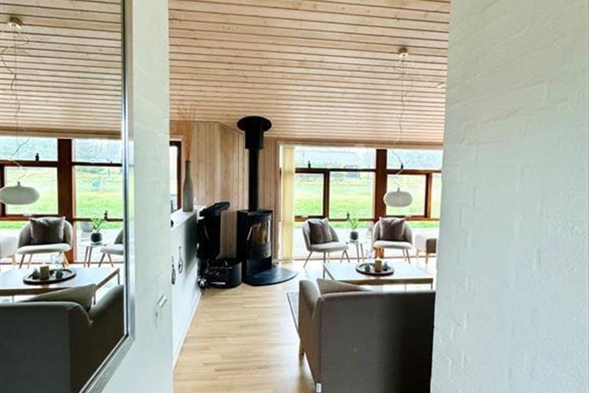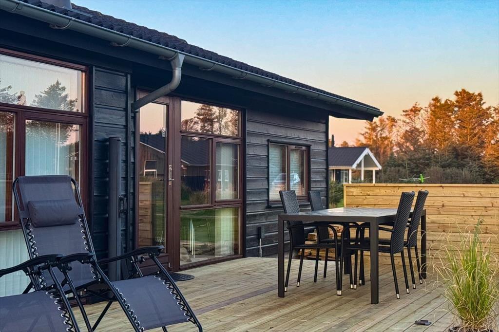 Vom Flur aus gelangen Sie zu einem der beiden schönen Badezimmer des Ferienhauses sowie zum Wohnzimmer. Das Wohnzimmer hat ein Giebeldach und viele Panoramafenster, die das ganze Jahr über eine herrlich helle Atmosphäre schaffen. Das Wohnzimmer ist außerdem mit einer Soundbar ausgestattet, die einen ausgezeichneten Klang bietet. Die offene, gut ausgestattete Küche ist mit dem Essbereich verbunden, der durch eine halbhohe Wand vom Wohnzimmer abgetrennt ist. In der Küche befindet sich eine Airfryer, die das Kochen erleichtert. Vom Wohnzimmer aus haben Sie Zugang zu einer schönen Terrasse vor dem Haus. Im Osten liegt eines der drei Schlafzimmer des Hauses mit einem guten Doppelbett sowie das große Badezimmer mit Whirlpool und Sauna. Hier befindet sich auch das Hausdach mit 2 Matratzen. Am anderen Ende des Hauses befinden sich die beiden anderen Schlafzimmer, die ebenfalls mit guten Doppelbetten ausgestattet sind. Das Haus ist mit einer Wärmepumpe ausgestattet, sehr energieeffizient und für die ganzjährige Vermietung geeignet. Ein Haus, in dem man sich sofort wohlfühlt und das definitiv den Rahmen für einen schönen Urlaub bieten kann. Das Haus enthält sowohl Sommer- als auch Winterdecken.
