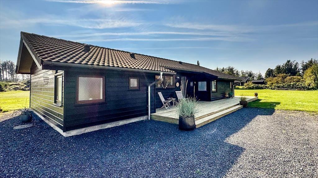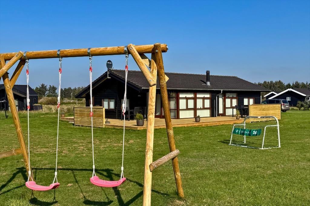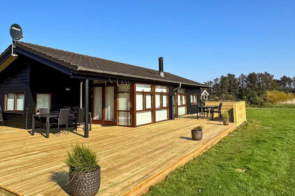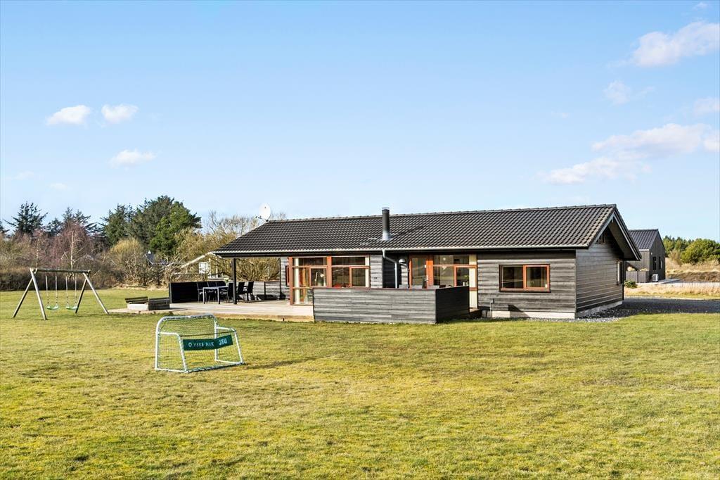 Dieses atmosphärische Luxus-Ferienhaus liegt in dem kinderfreundlichen Feriengebiet in Grønhøj. Hier befindet sich einer der schönsten Sandstrände Nordeuropas, der sich von Blokhus bis Løkken erstreckt und jedes Jahr mit der Blauen Flagge ausgezeichnet wird, als Garantie für hohe Wasserqualität.