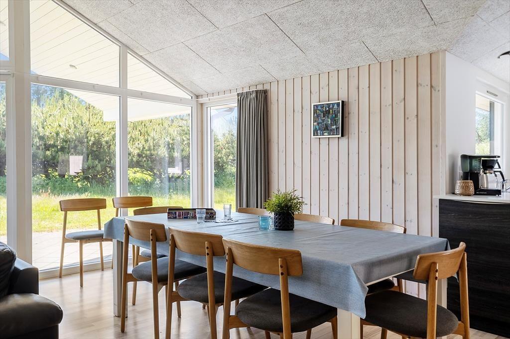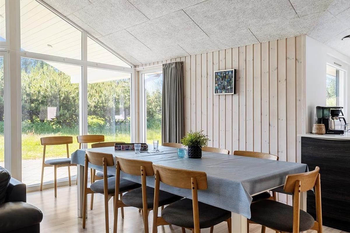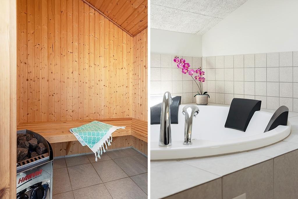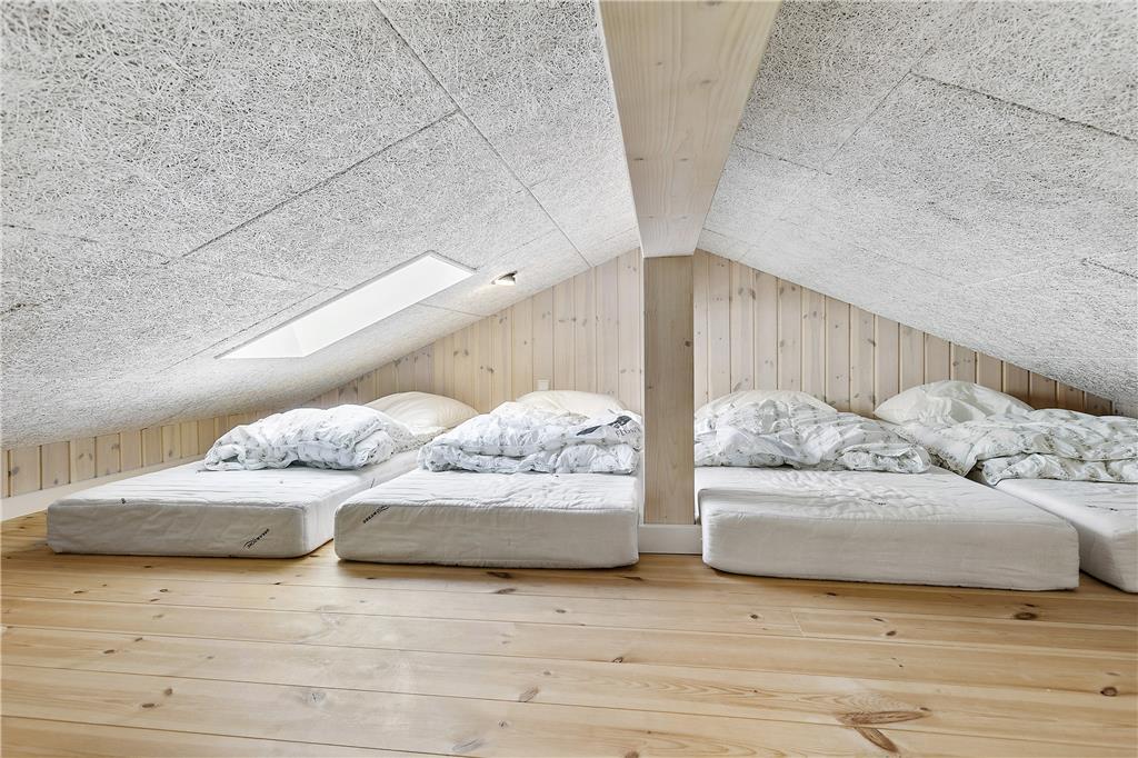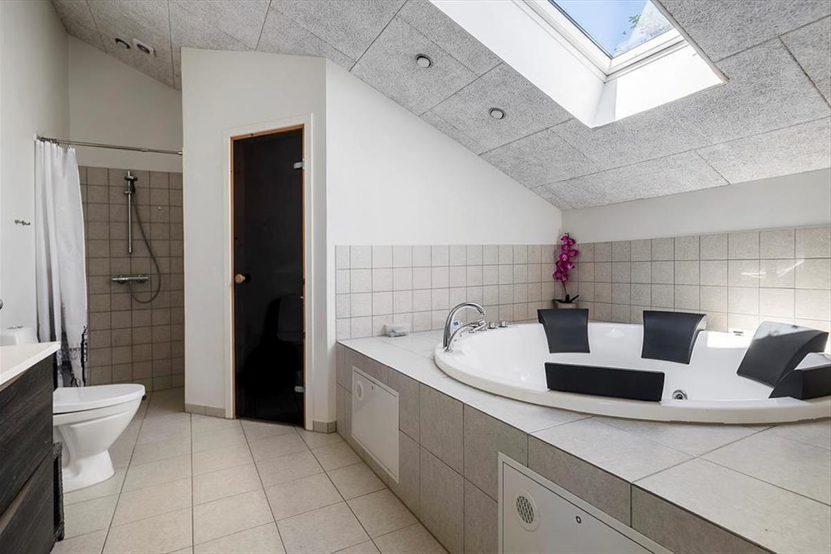 Das Ferienhaus wurde aus den besten Materialien gebaut und stilvoll mit hochwertigen dänischen Möbeln eingerichtet. Die Schlafzimmer sind in zwei Bereiche unterteilt, sodass das Haus problemlos zwei Familien beherbergen kann, die gemeinsam Urlaub machen möchten. Die große Dachfenster im gut ausgestatteten Küchenbereich sorgt für viel Tageslicht, und vom großen Wohnzimmer mit Essbereich und Kaminofen hat man Zugang zu einer großen, teilweise überdachten Terrasse. Die vier Schlafzimmer, die an verschiedenen Enden des Hauses liegen, sind mit Doppelbetten ausgestattet, die auch als Einzelbetten aufgestellt werden können. Mit zwei Badezimmern, von denen eines über ein großes und schönes 6-Personen-Whirlpool und eine Sauna verfügt, muss man sich auch bei voller Belegung des Hauses keine Sorgen um Wartezeiten machen. Auf dem großen Schlafboden, der mit einem schönen Dachfenster ausgestattet ist, befinden sich vier Matratzen, und man hat über eine ausziehbare Treppe im Spielzimmer Zugang dazu. Das Ferienhaus ist sehr energie- und kosteneffizient, da es mit einer Luft-Wasser-Wärmepumpe beheizt wird, die auch mit der Fußbodenheizung kombiniert ist. Ein schönes und gut funktionierendes Ferienhaus mit Qualität und der Garantie für viele gemütliche Momente mit der Familie.
