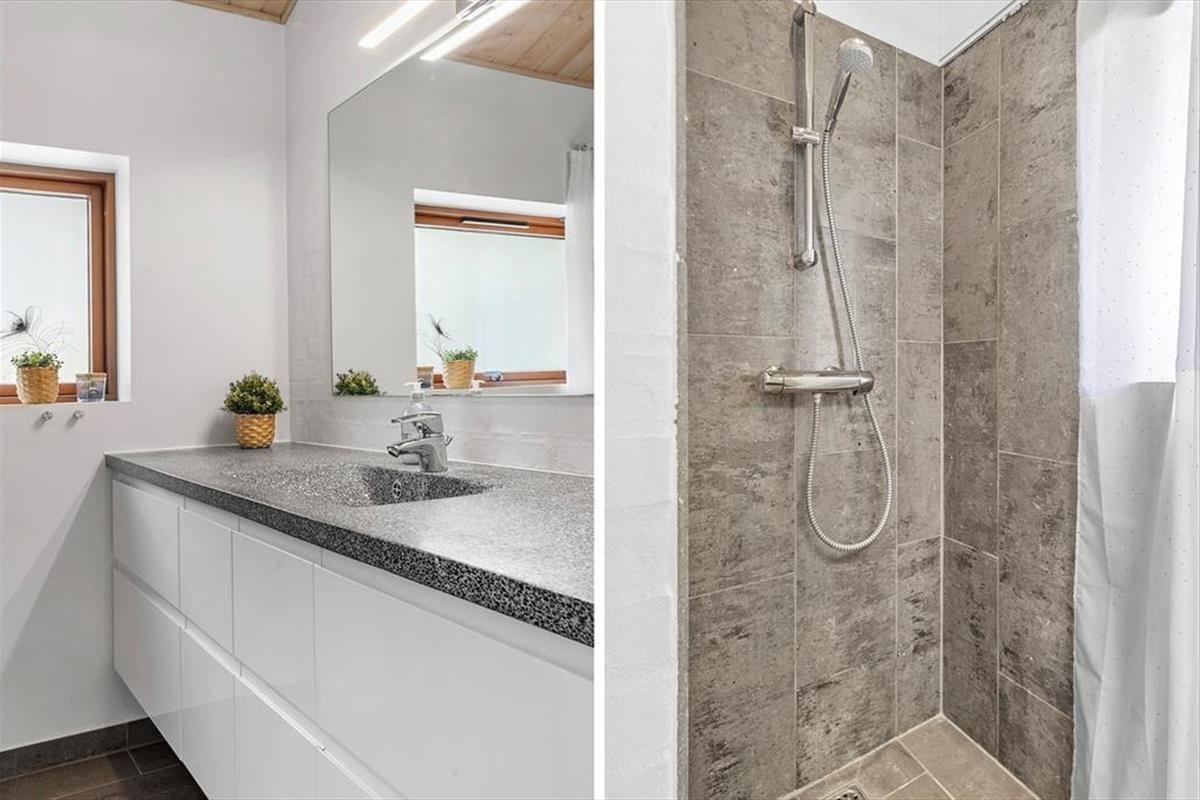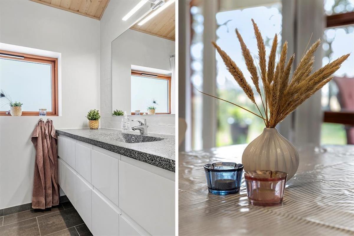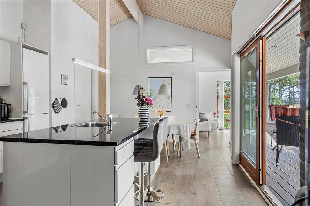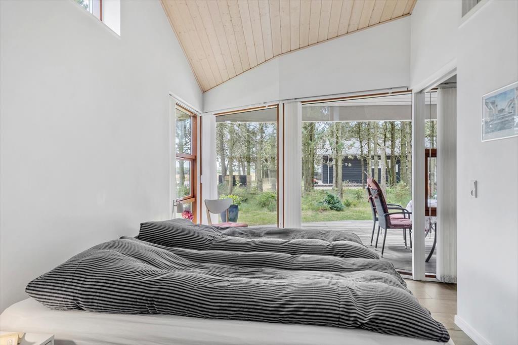 Beim Betreten dieses Ferienhauses wird einem zuerst der Kamin auffallen, der vor der großen Fensterfront steht – von hier aus wird im Winter viel Wärme und Gemütlichkeit verbreitet. Das Haus ist modern und hell eingerichtet. Die gut ausgestattete Küche ist offen mit dem Wohnzimmer und dem Essbereich verbunden. Die fantastischen Panoramafenster lassen Licht und Natur herein, sodass man die Aussicht auf die umliegende Natur genießen kann. Vom Wohnzimmer aus gelangt man in die vier Schlafzimmer des Hauses – zwei mit Doppelbetten und zwei mit Boxspringbetten. Es gibt zwei Badezimmer, eines davon ist mit einer neuen Dusche und einem luxuriösen Whirlpool ausgestattet, der auf jeden Fall dabei helfen wird, einen entspannten Urlaub in der schönen Gegend von Grønhøj Strandpark zu genießen. Außerdem gibt es eine Waschmaschine und einen Trockner, die nach den vielen Badeausflügen sicher von Nutzen sein werden.