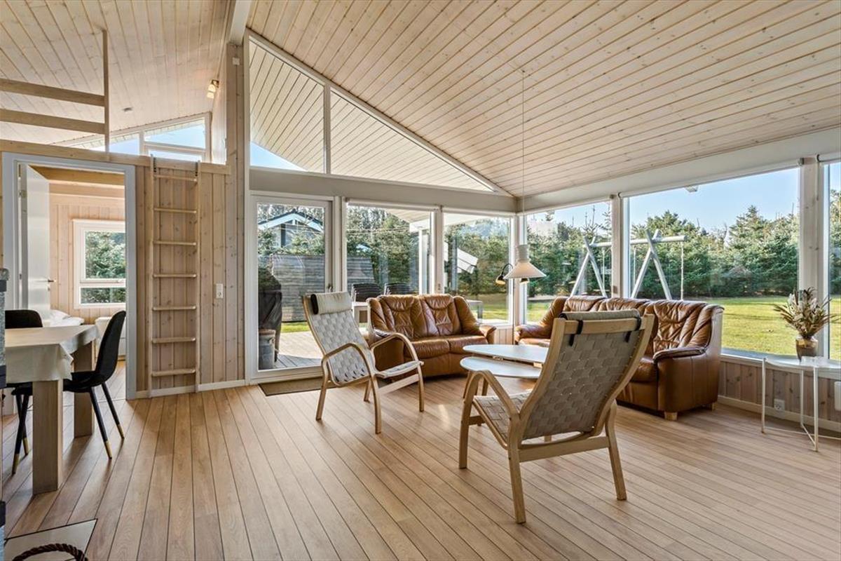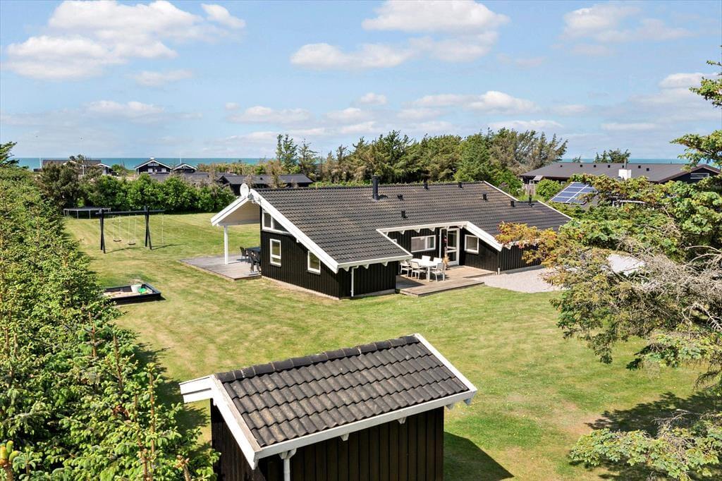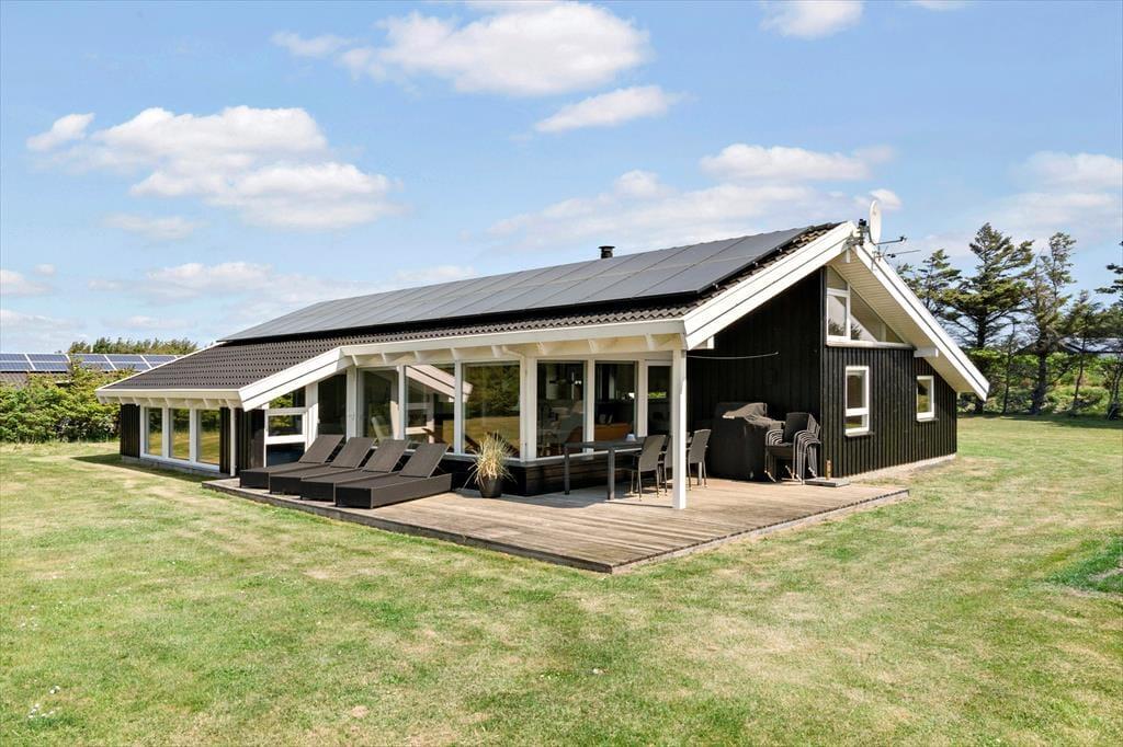 Das Ferienhaus wurde schön renoviert und mit Qualität als Hauptmerkmal erbaut, und man spürt, dass die Besitzer ihren persönlichen Touch in die Einrichtung eingebracht haben. Überall gibt es gute und gepflegte Möbel sowie moderne Annehmlichkeiten, z.B. kostenloses und drahtloses Internet. Der große und offene Wohnbereich mit Küche, Esstisch und Wohnzimmer ist zentral gelegen und wird schnell zum Treffpunkt der Familie. Im Wohnzimmer befindet sich eine gemütliche Sofaecke mit vielen Sitzplätzen, hier kann man an kühlen Abenden vor dem Fernseher sitzen oder ein gutes Buch bei der Wärme des Kaminofens lesen. Das Haus verfügt zudem über zwei Badezimmer, vier Schlafzimmer, zwei Schlafemporen und hat direkten Zugang zu zwei Terrassen. Familien mit Kindern werden die Spülmaschine, Waschmaschine, Trockner sowie das Bett und den Stuhl für die Kleinsten zu schätzen wissen. Insgesamt ein gut geeignetes und funktionelles Ferienhaus für einen unvergesslichen Familienurlaub im Nordjütland.
