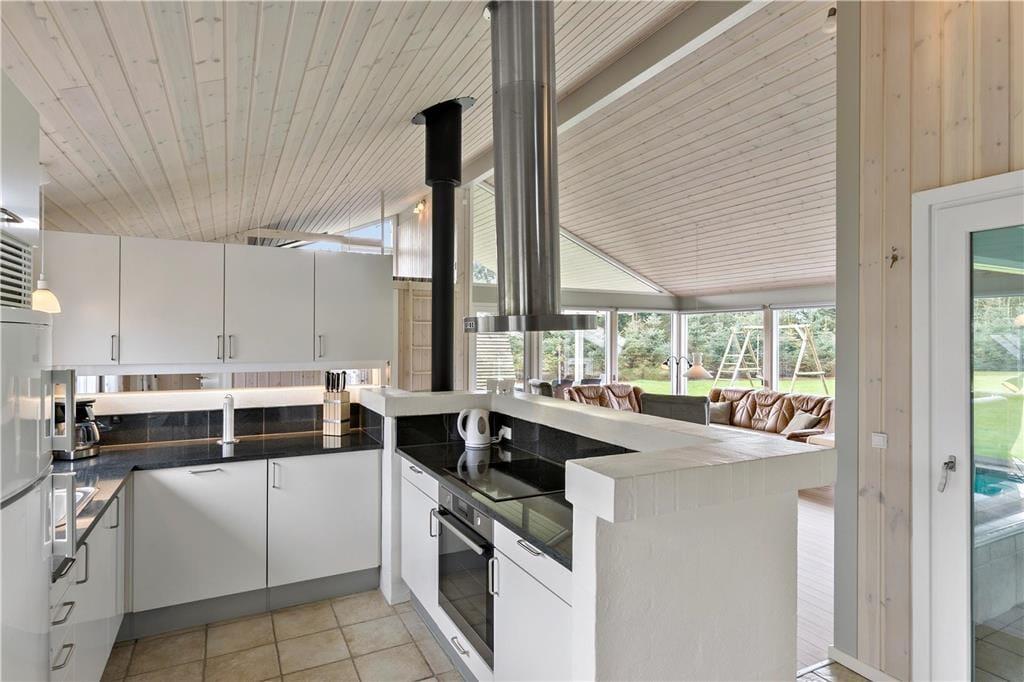 Luxusferienhaus nur 350 m vom Wasser entfernt – für viele Stunden Spaß drinnen und draußen. Ein Ferienhaus für die aktive Familie, die viele schöne Erlebnisse zusammen genießen möchte; Kinder und Erwachsene werden den zugehörigen Poolraum mit Becken und Whirlpool lieben.