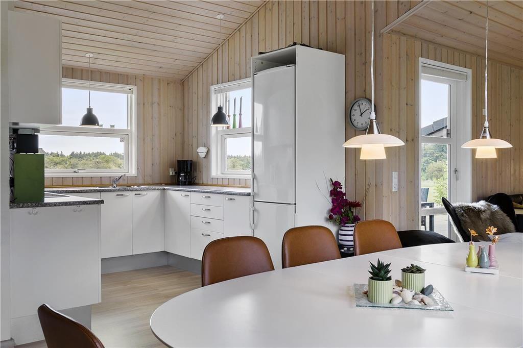 In dem hüggeligen Ferienhausgebiet Kettrup Bjerge, am Rande von Grönhöj liegt dieses exklusive Ferienhaus am Ende des Weges.