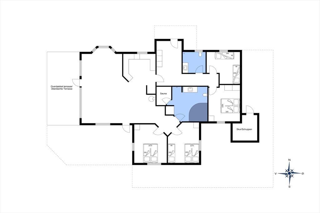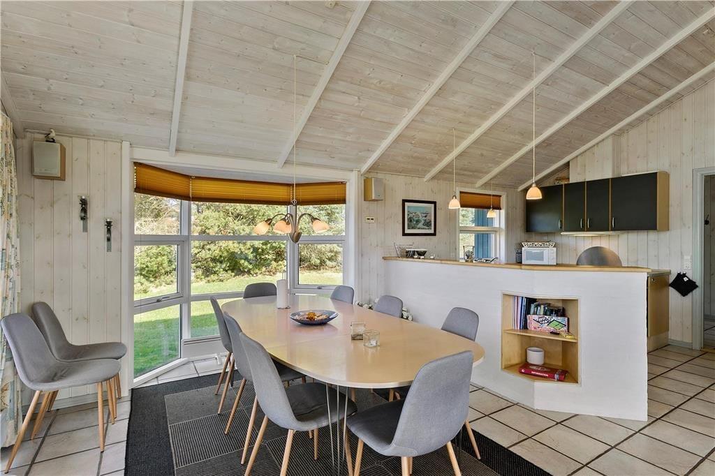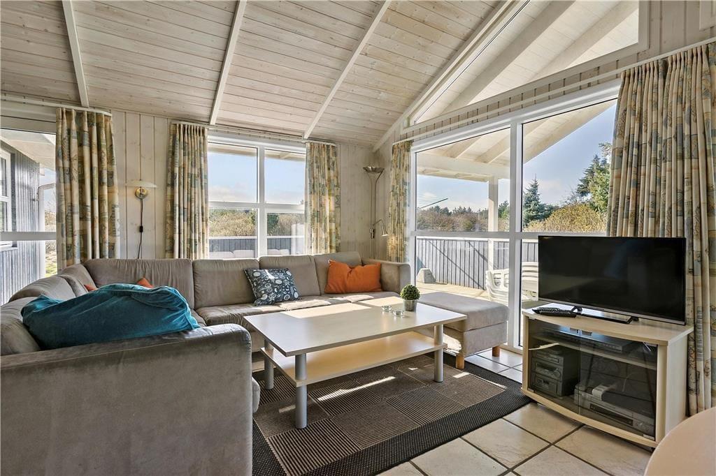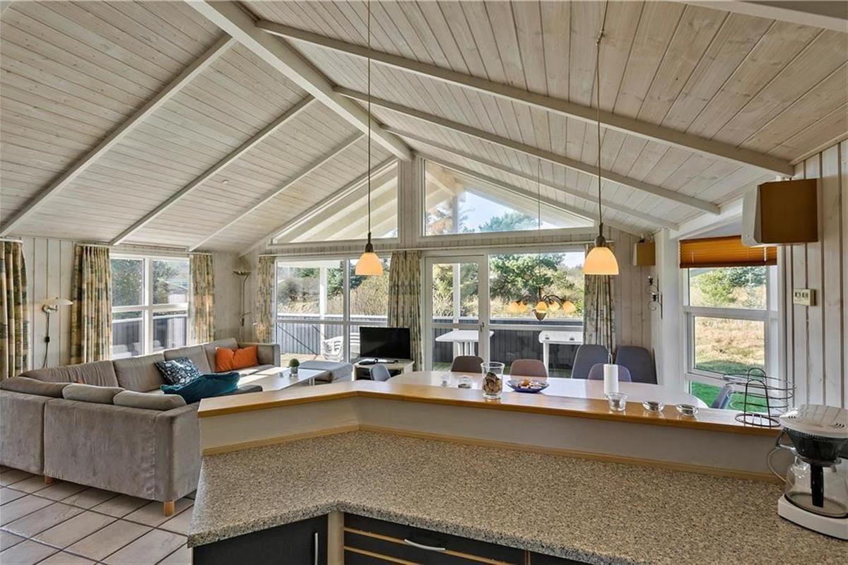 Das Ferienhaus ist modern, hell, geschmackvoll sowie geräumig eingerichtet. Hier werden alle Kriterien für erholsame, angenehme Ferienerlebnisse in der Nähe von Natur und faszinierender Nordsee erfüllt. Es gibt vier Schlafzimmer, Das große Badezimmer ist mit Sauna und Whirlpool ausgestattet und lädt zum Wellness daheim nach einem langen Tag am Strand oder einem Ausflug durch Nordjütland ein. Von dem geräumigen Wohnzimmer mit der offenen Küche haben Sie Zugang zu der teilweise überdachten Terrasse.