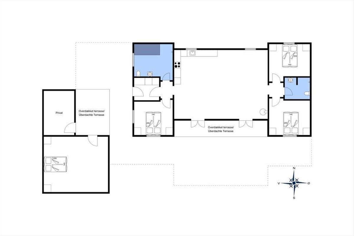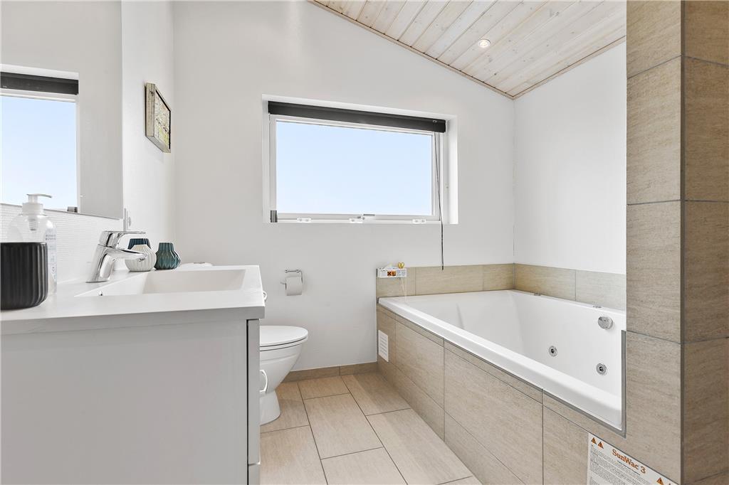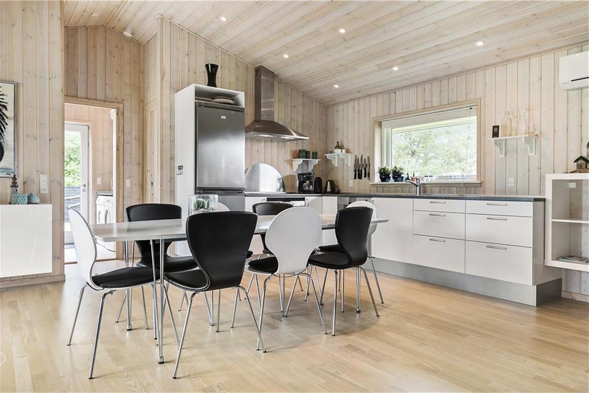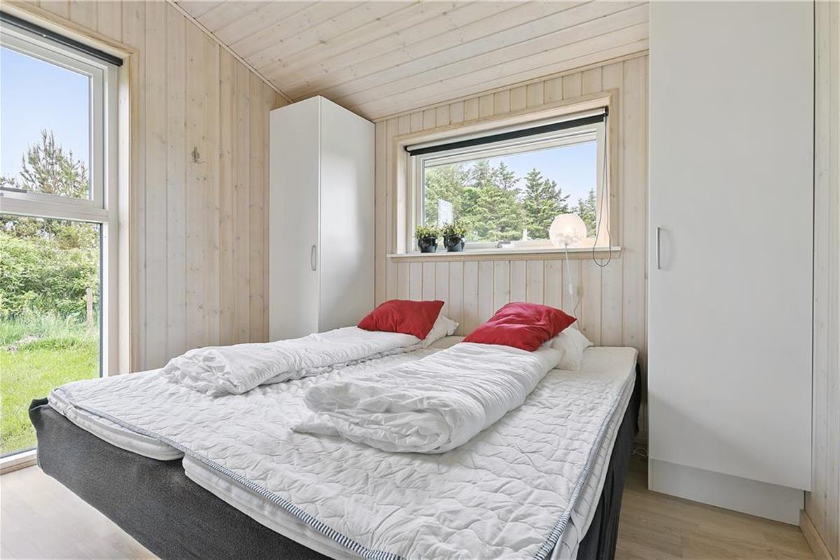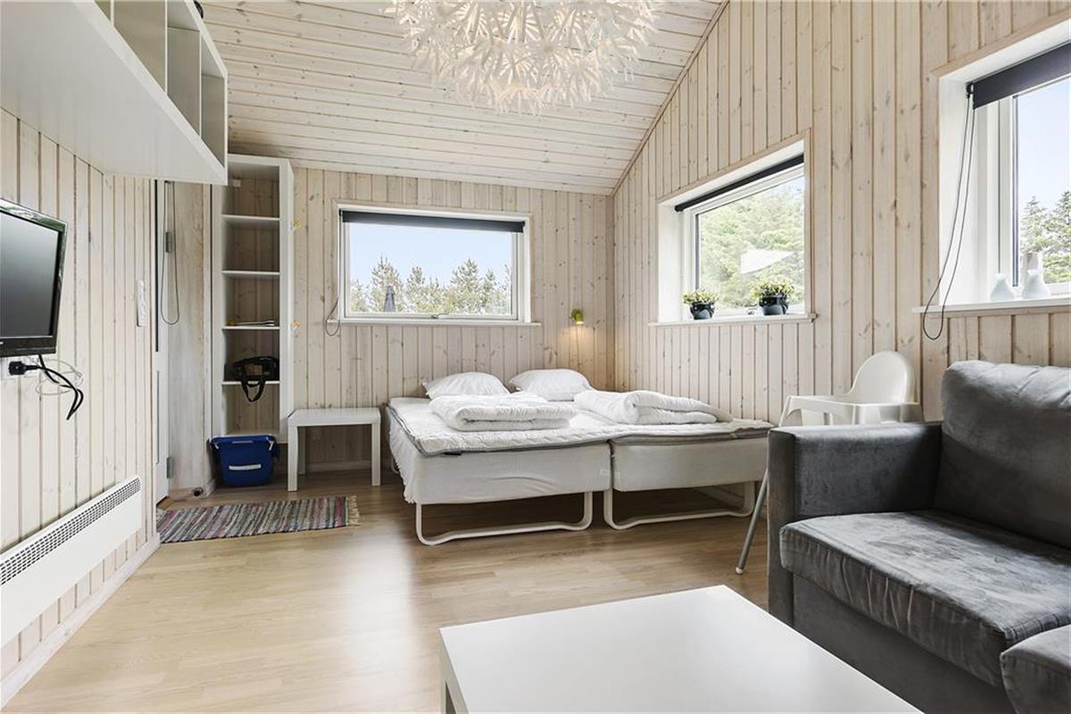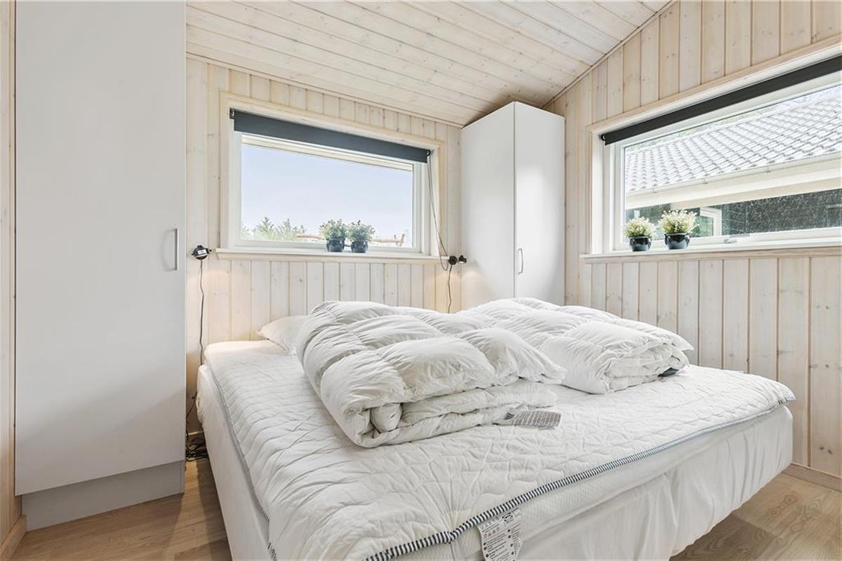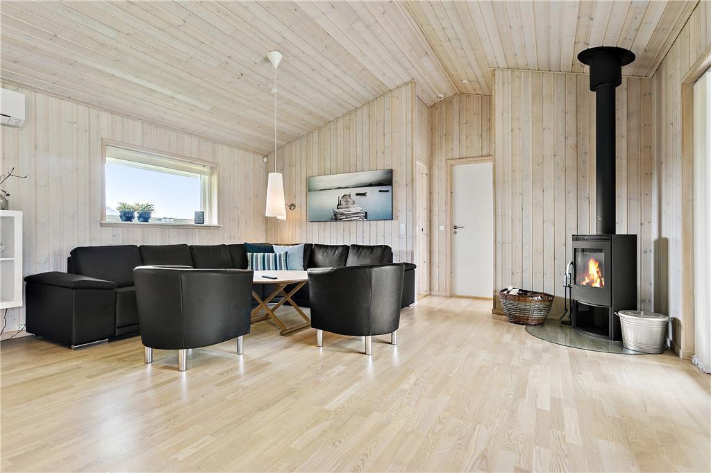Når man træder ind i dette sommerhus, vil man med det samme bemærke, at der er tænkt over alle detaljer under opførelsen. Sommerhuset har et stort centralt rum med kombineret køkken, spiseplads og stue; her vil man komme til at tilbringe de fleste timer - måske med ild i brændeovnen på en gråvejrsdag. Herfra har man også adgang til tre værelser med gode senge og de to badeværelser, hvoraf det ene er med spabad. Som en ekstra fin detalje for dette sommerhus skal fremhæves det hyggelige anneks, hvor der forefindes hyggemiljø med møbler og en seng.