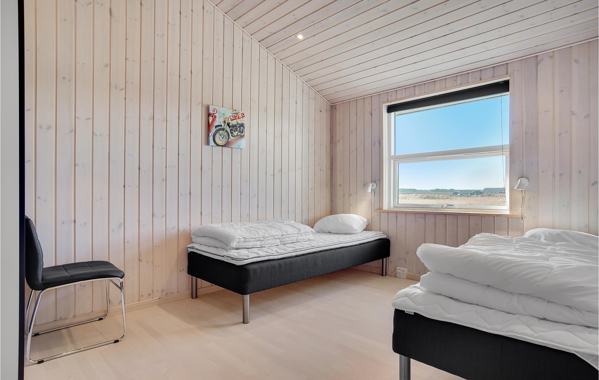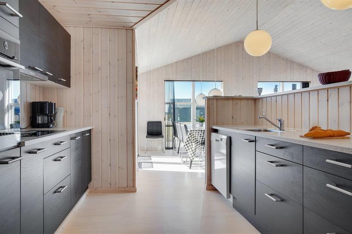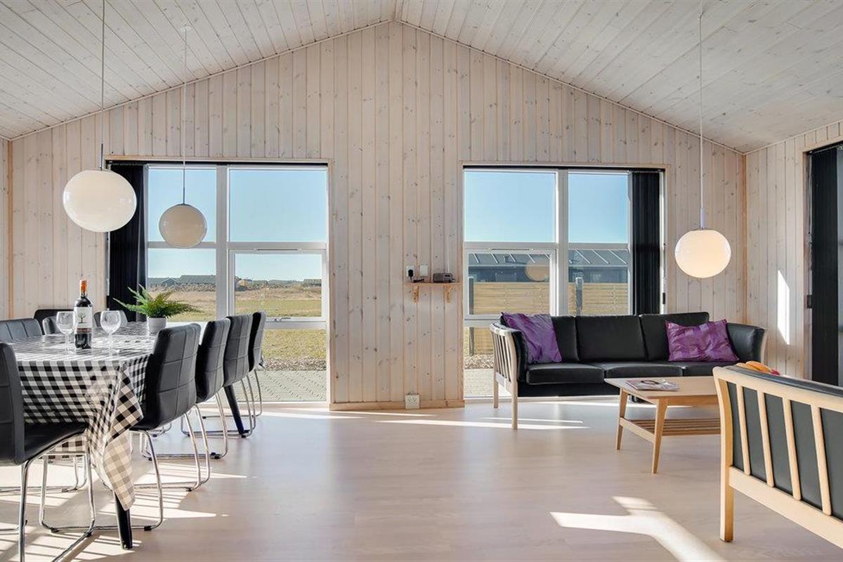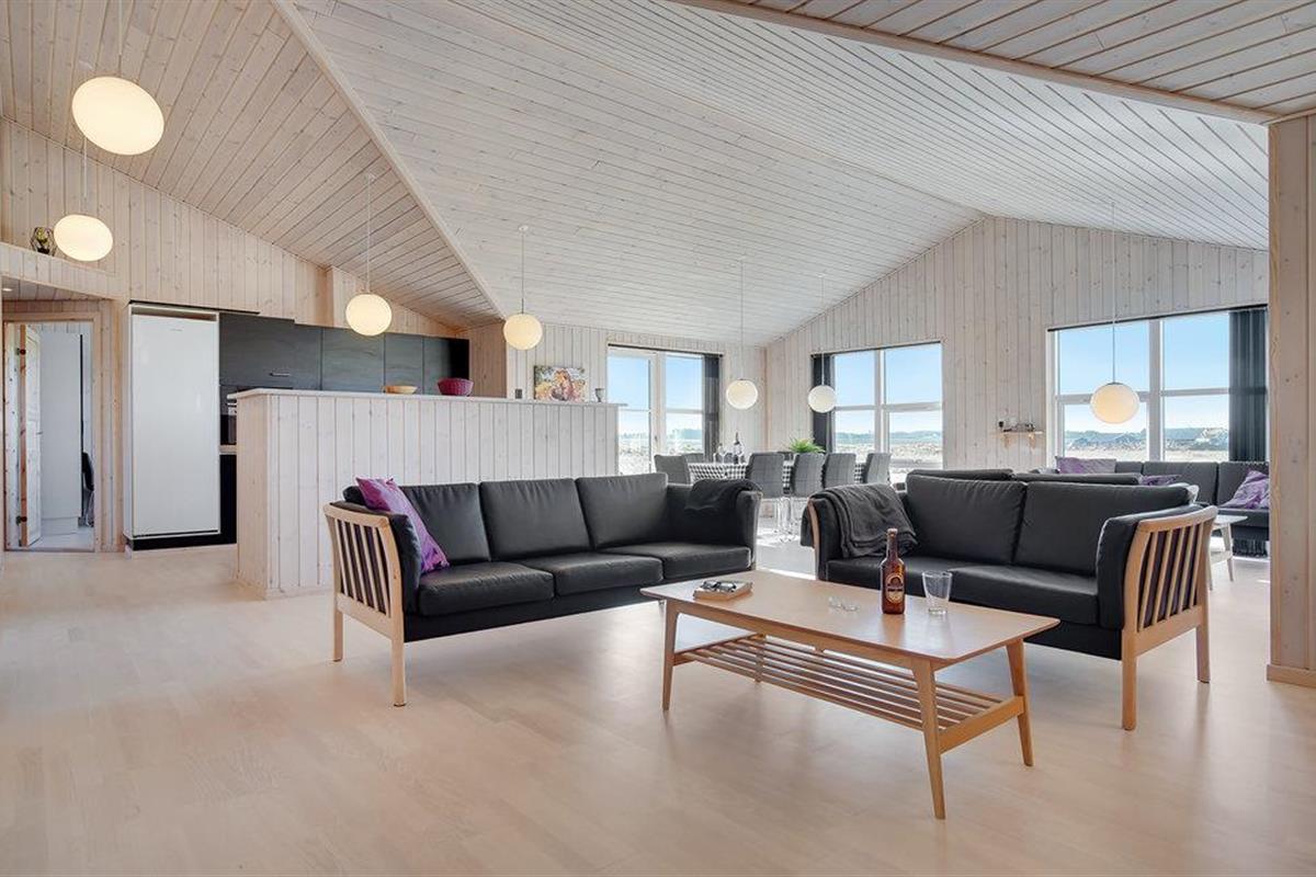 Op een groot, open perceel en op slechts een paar minuten lopen van de Noordzee bij Grønhøj staat dit mooie vakantiehuis. Het huis heeft 4 ruime slaapkamers en 2 badkamers, een met een whirlpool en de andere met een sauna. Het hart van het huis is de keuken en de ruime, lichte en gezellige woonkamer. Hier kan de familie samenkomen om te koken terwijl anderen zich vermaken met spelletjes of een goed boek lezen. Op het mooie terras kunt u genieten van uw koffie terwijl de kinderen en tieners rondrennen in de tuin.
