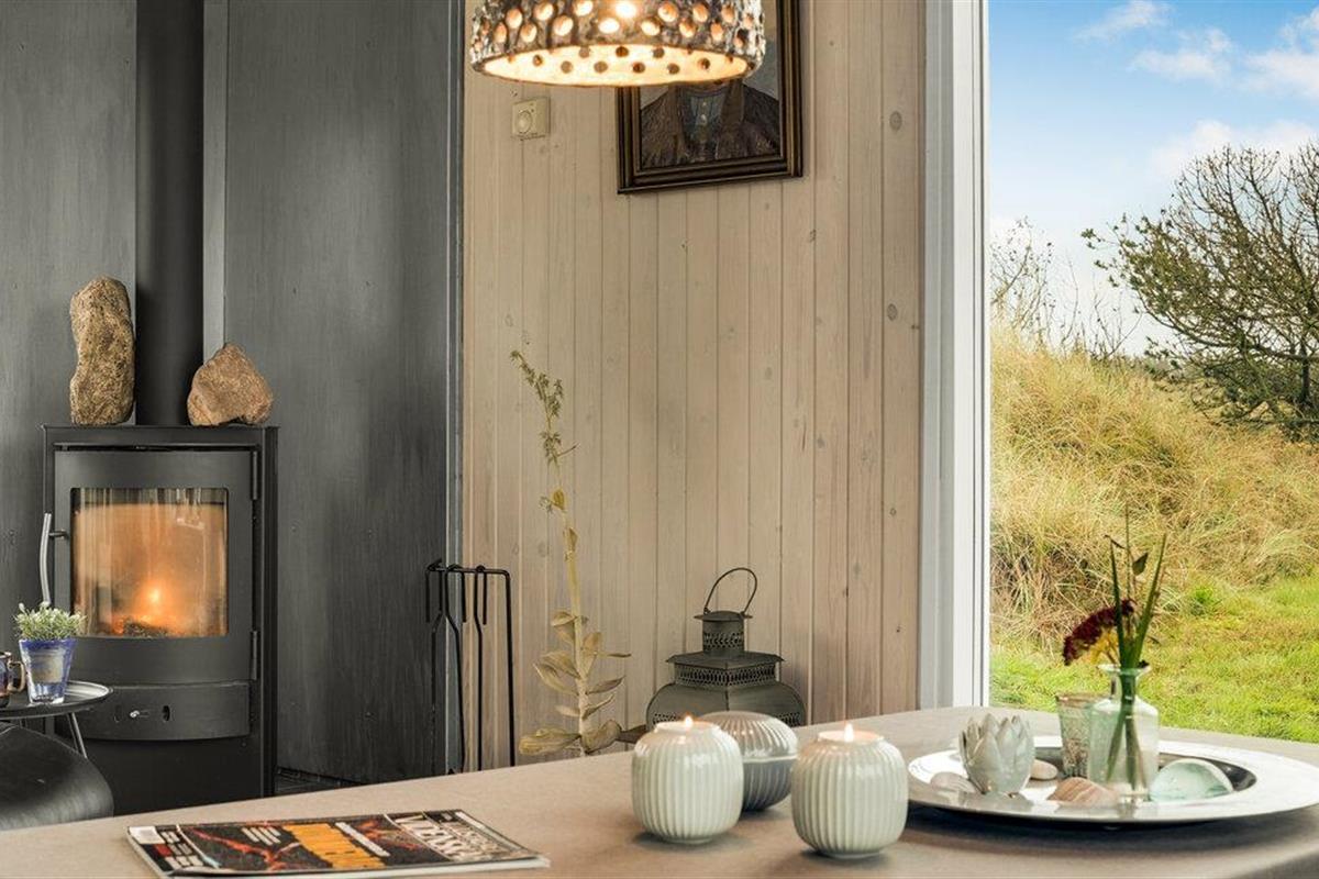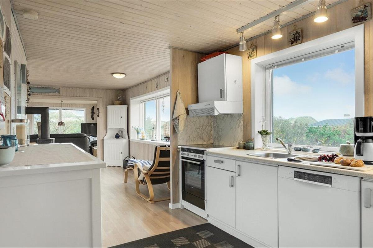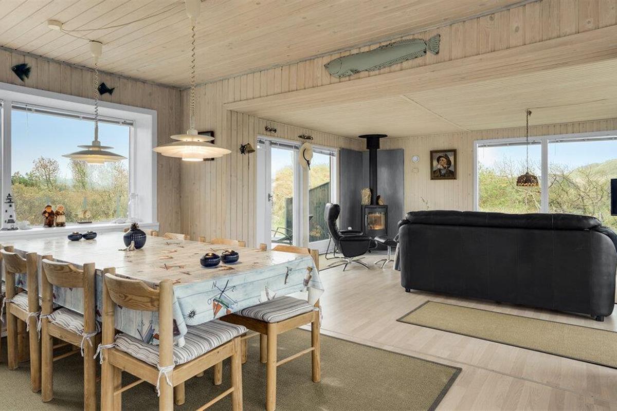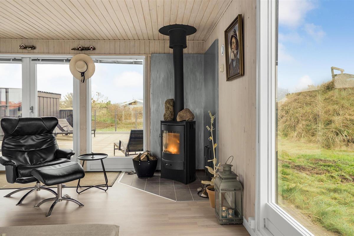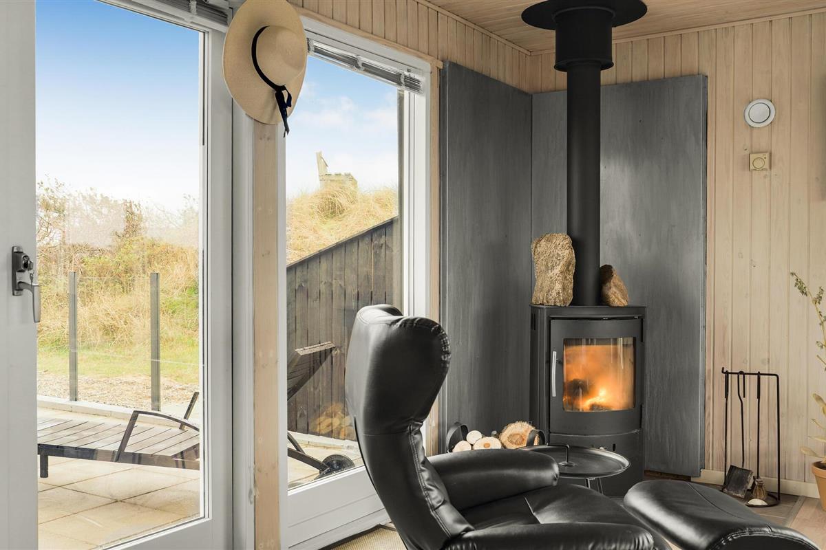 Ontspan in Noord-Jutland in dit mooie vakantiehuis, dat is uitgerust met alles wat u nodig heeft voor een ontspannende vakantie aan de Deense westkust. 's Avonds kunt u zich opwarmen voor de houtkachel terwijl de familie zich verzamelt rond een goede film of serie. Dankzij de open indeling kunt u van elkaars gezelschap genieten, terwijl sommigen ontspannen op de bank en anderen de spatel hanteren in de volledig uitgeruste keuken. De grote ramen zorgen voor veel natuurlijk licht en laten je genieten van het uitzicht op de natuur buiten. Op de twee terrassen van het huis kunt u genieten van de frisse zeelucht en de nabijheid van de zee verrijkt u met het rustgevende geluid van de golven. Direct voor het huis heeft u uw eigen privé-duin, waar u op een bankje kunt zitten en geheel ongestoord kunt genieten van het uitzicht op zee. Vlakbij ligt ook het hoogste duin in de omgeving.