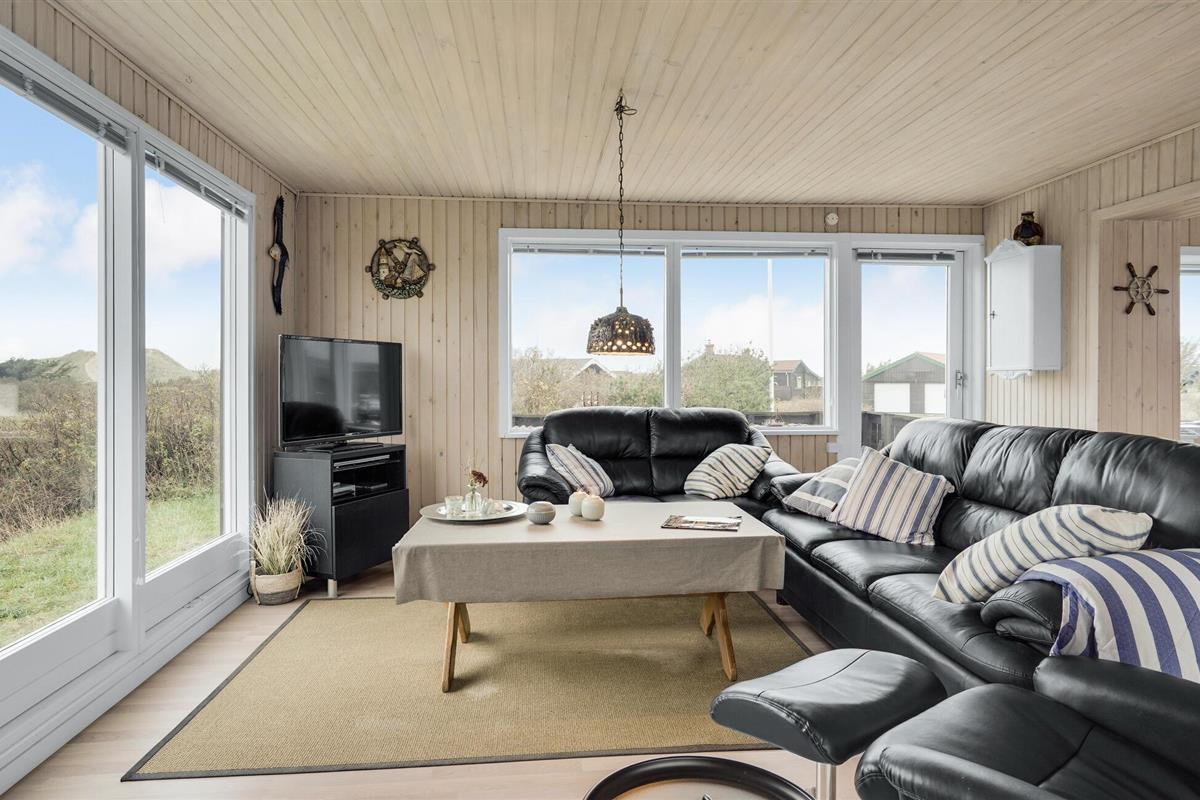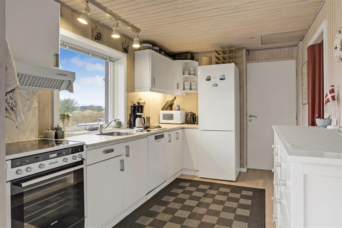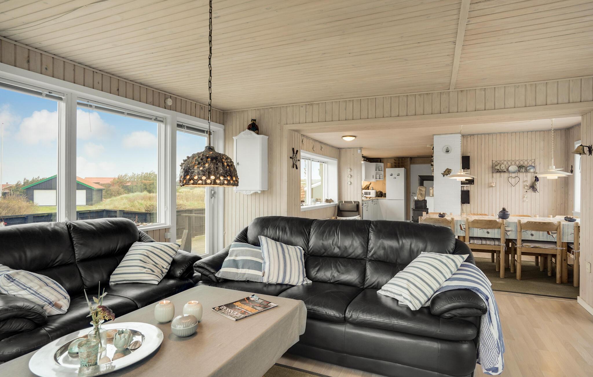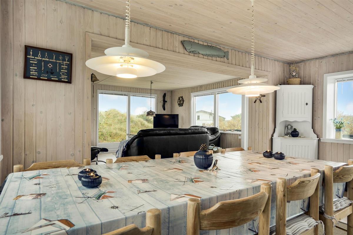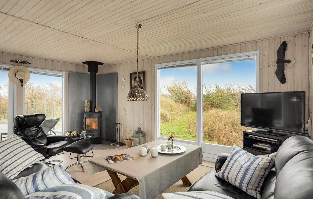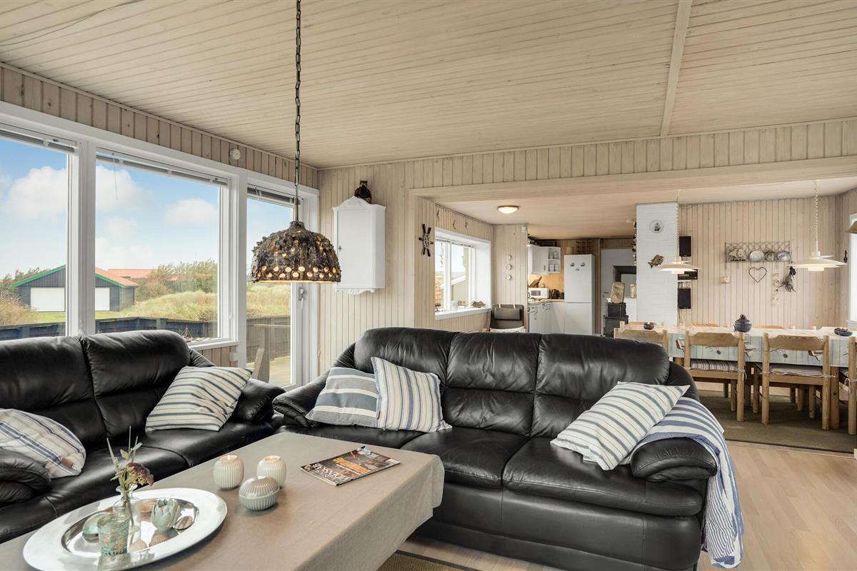 Ontspan in Noord-Jutland in dit mooie vakantiehuis, dat is uitgerust met alles wat u nodig heeft voor een ontspannende vakantie aan de Deense westkust. 's Avonds kunt u zich opwarmen voor de houtkachel terwijl de familie zich verzamelt rond een goede film of serie. Dankzij de open indeling kunt u van elkaars gezelschap genieten, terwijl sommigen ontspannen op de bank en anderen de spatel hanteren in de volledig uitgeruste keuken. De grote ramen zorgen voor veel natuurlijk licht en laten je genieten van het uitzicht op de natuur buiten. Op de twee terrassen van het huis kunt u genieten van de frisse zeelucht en de nabijheid van de zee verrijkt u met het rustgevende geluid van de golven. Direct voor het huis heeft u uw eigen privé-duin, waar u op een bankje kunt zitten en geheel ongestoord kunt genieten van het uitzicht op zee. Vlakbij ligt ook het hoogste duin in de omgeving.