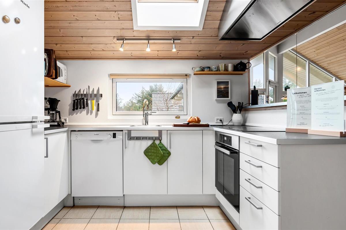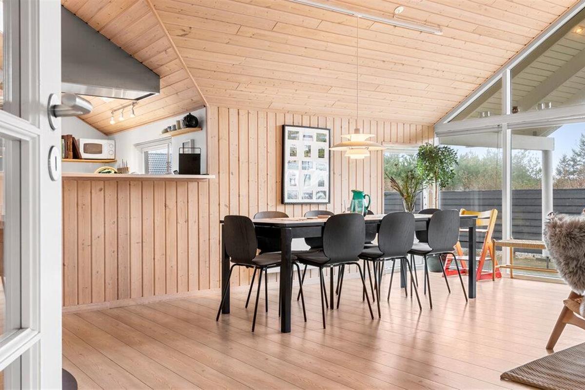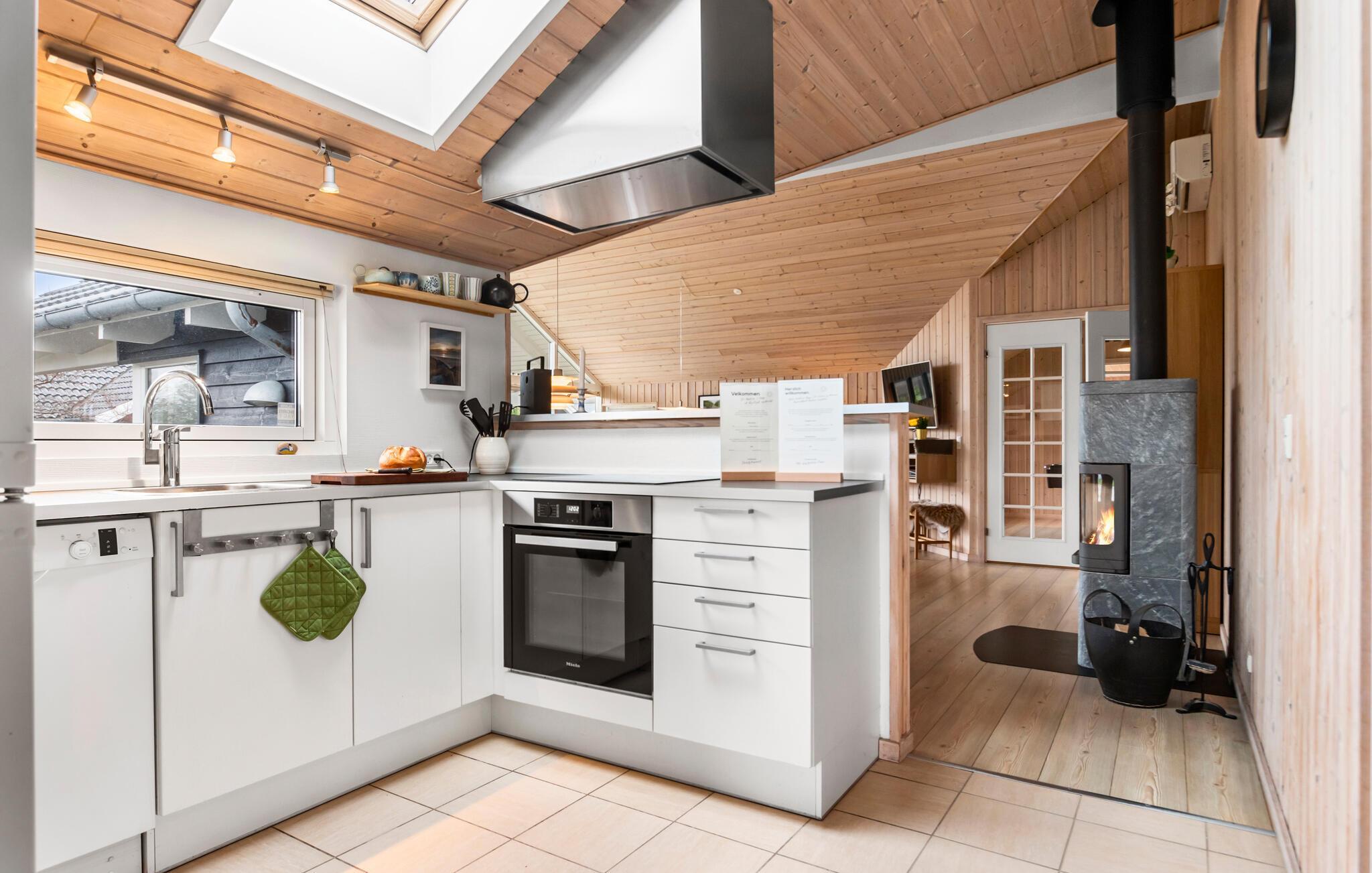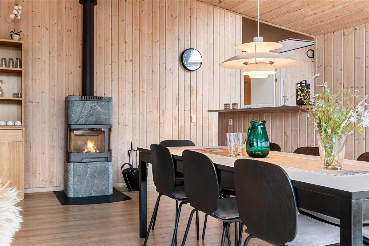 Je uitnodigende vakantiehuis op Grønhøj Strand, tussen de populaire vakantiebestemmingen Løkken en Blokhus, biedt je de ideale gelegenheid om te genieten van de adembenemende natuur en ontspannen sfeer van de Deense westkust. Laat het leven van alledag achter je en verheug je op een ontspannen vakantie in dit ruime huis met ruimte voor twee gezinnen, dat je comfort en gezelligheid in één biedt. De ruime, lichte kamers nodigen uit om te blijven hangen. Maak het jezelf gemakkelijk op de gezellige banken, dineer samen aan de lange eettafel en ontspan bij de knisperende houtkachel.