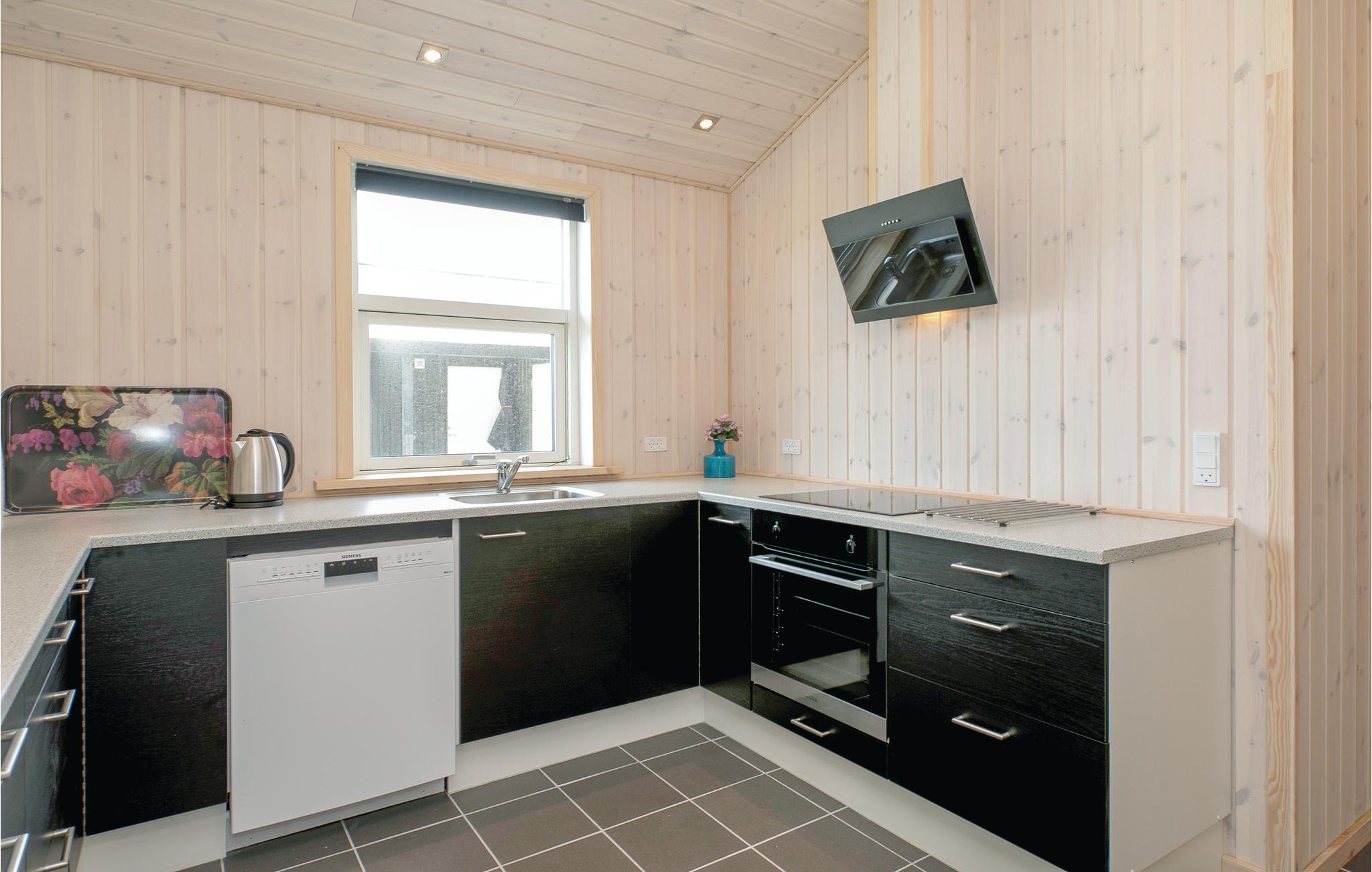 Op het open natuurperceel in het rustige Grønhøj, tussen Blokhus en Løkken, staat een mooi vakantiehuis met een echt goede inrichting. Er zijn drie slaapkamers in het hoofdhuis, ook twee badkamers. Het terras ligt voor de woonkamer. In het bijgebouw is ook een grote slaapkamer met een grote kledingkast, een mooi gastentoilet en een extra TV. Er is een mooi terras tussen het hoofdhuis en het bijgebouw. Er is ook een carport bij het huis. Er is een prachtig zwemstrand op loopafstand. Geniet daar van de zon tussen de warme kliffen. Een mooi huis met ruimte voor twee gezinnen.