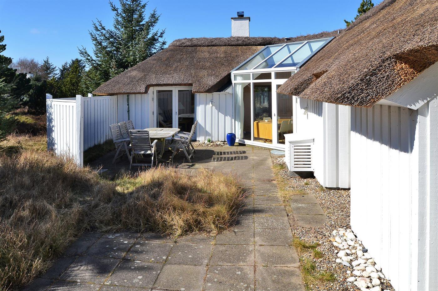 De vakantiewoning is gelegen op een 1400 m² groot natuural grond. Afstand tot de zee 1100 m. Dichtstbijzijnde winkel 5000 m. Er is een golfbaan op een afstand van 5000 m. Bij de vakantiewoning hoort 40 m² terras. Barbecue. Het huis heeft een stopcontact voor het opladen van een elektrische auto. Parkeerplaats bij het huis.