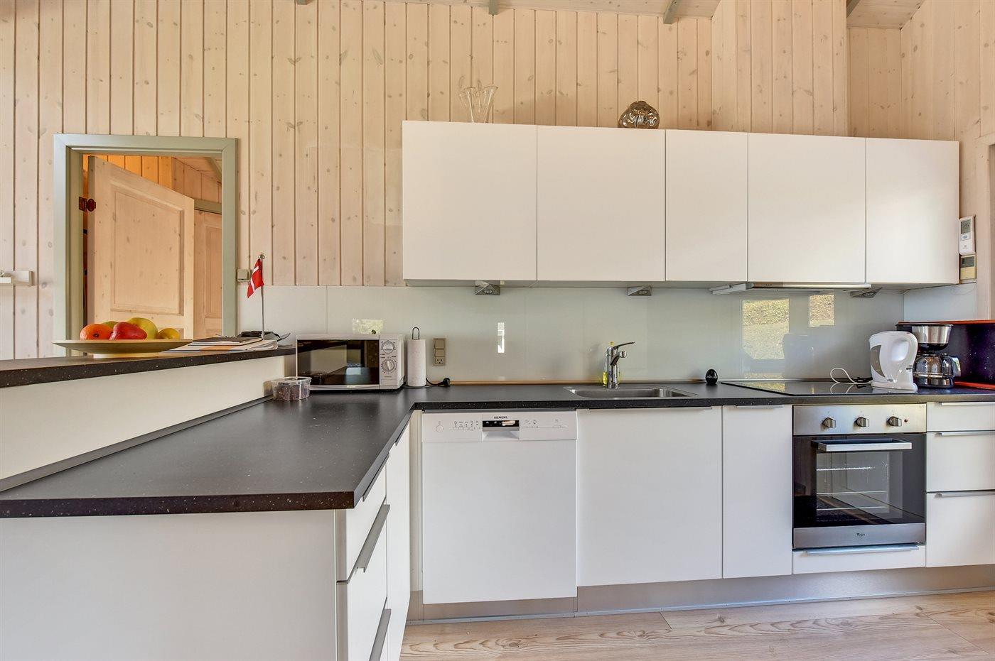 De keuken is uitgerust met koelkast Er is 4 elektrische kookplaten, heteluchtoven, magnetron en vaatwasser.