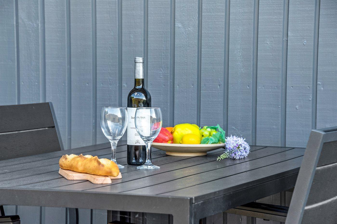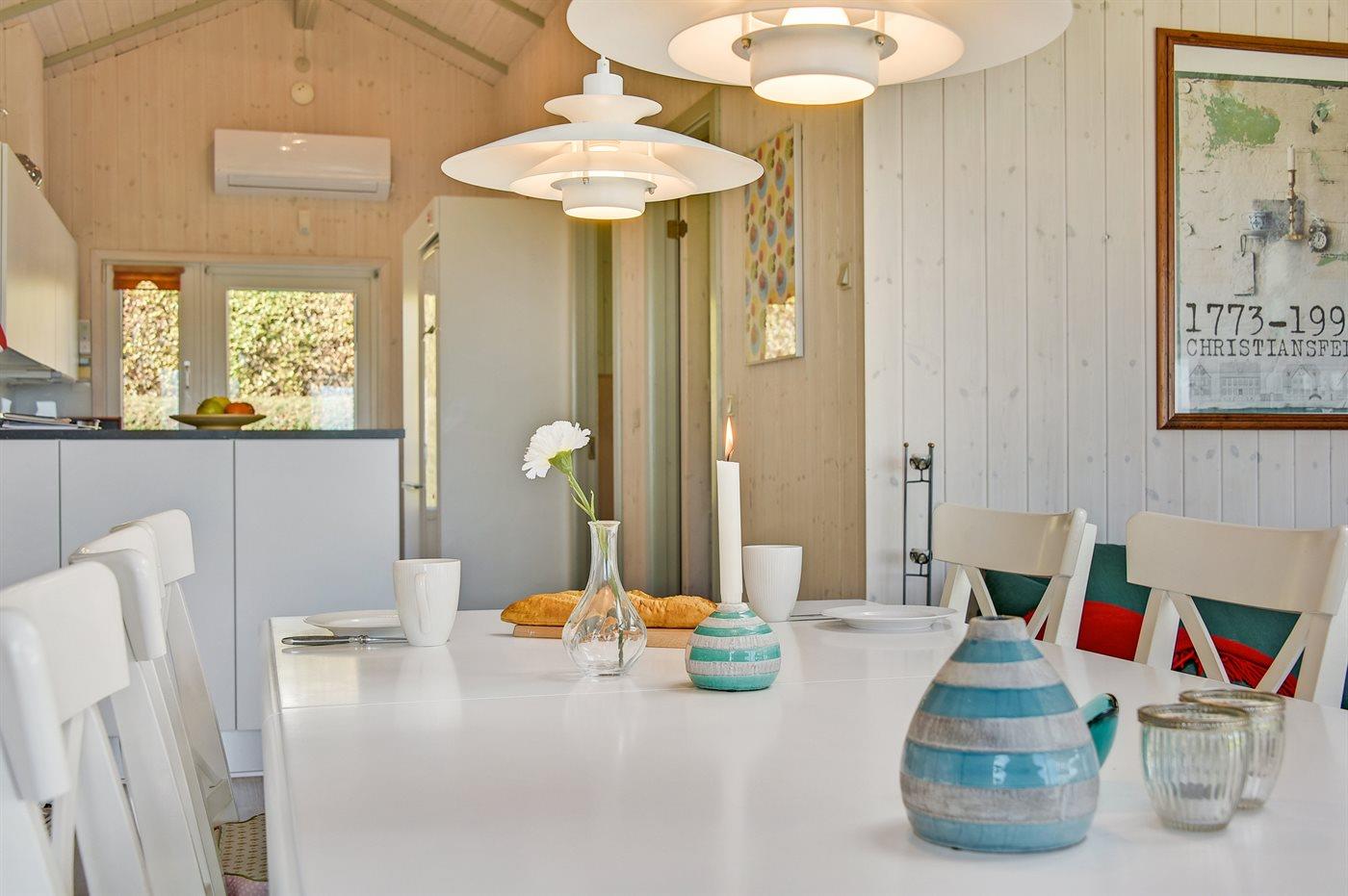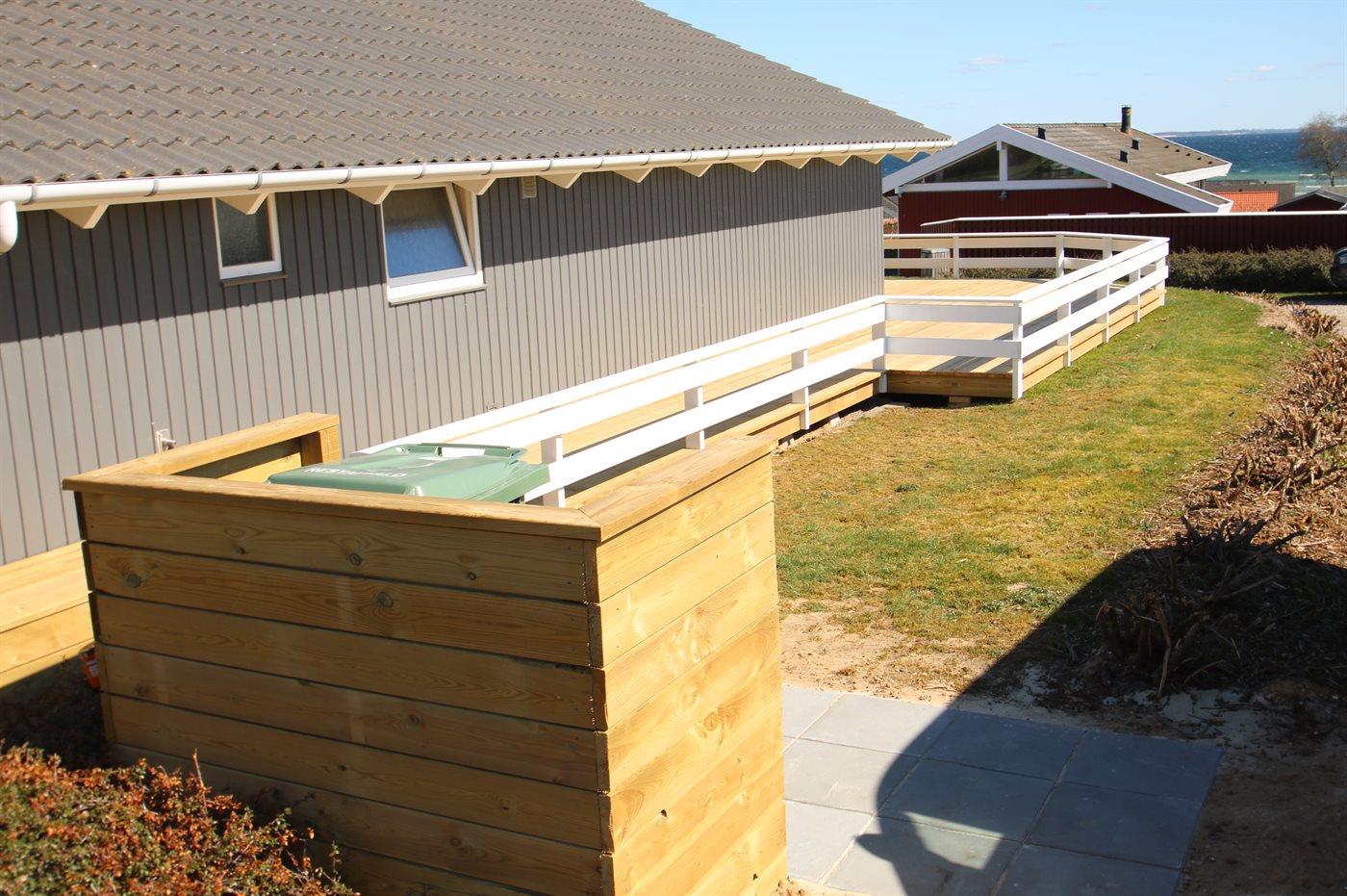 De vakantiewoning is gelegen op een 725 m² groot aangelegde tuin. Afstand tot de zee 150 m. Er is een zwemsteiger in de buurt. Dichtstbijzijnde winkel 400 m. Bij de vakantiewoning hoort 40 m² terras. Daarnaast is er een 15 m² groot overdekt terras. Gereedschapsruimte. Schommel. Carport ter beschikking.
