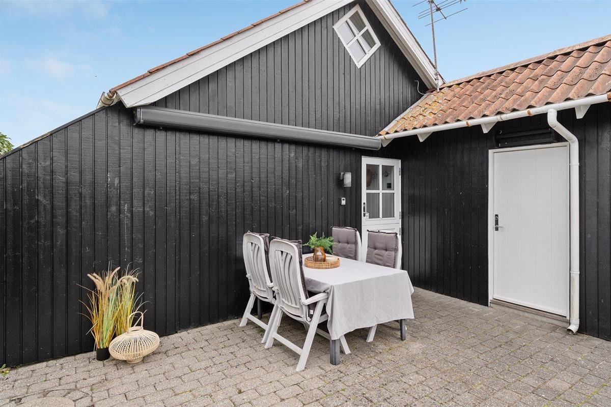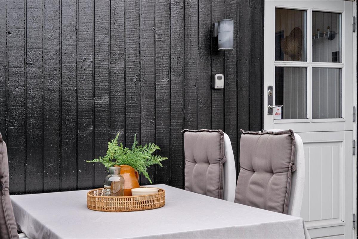 De vakantiewoning is gelegen op een 213 m² groot natuural grond. De grond is omheind. Afstand tot de zee 50 m. Dichtstbijzijnde winkel 300 m. Bij de vakantiewoning hoort 50 m² terras. Gereedschapsruimte. Barbecue. Parkeerplaats bij het huis.