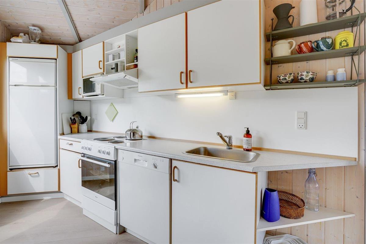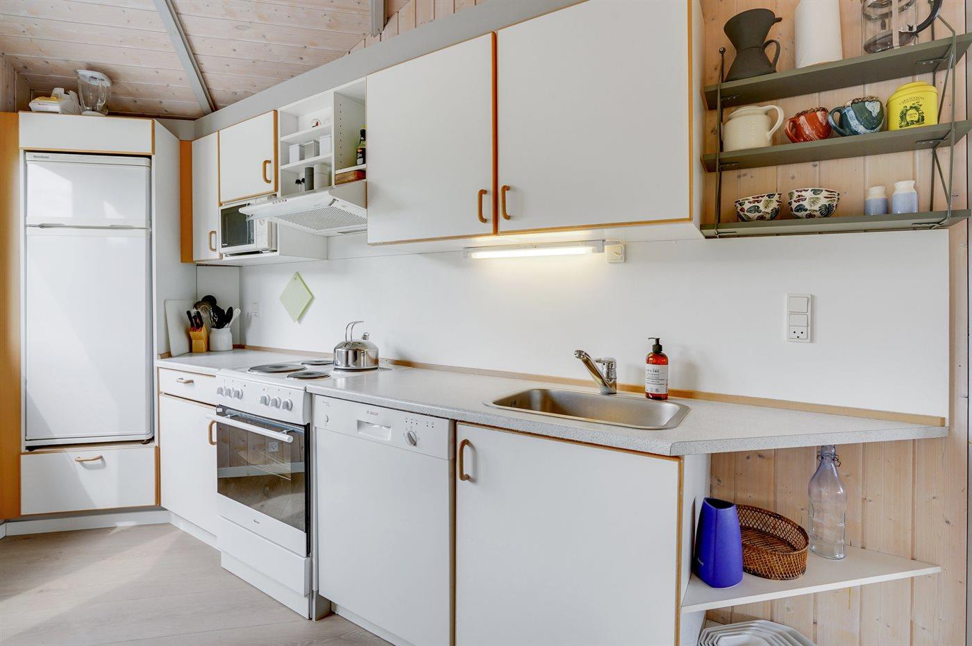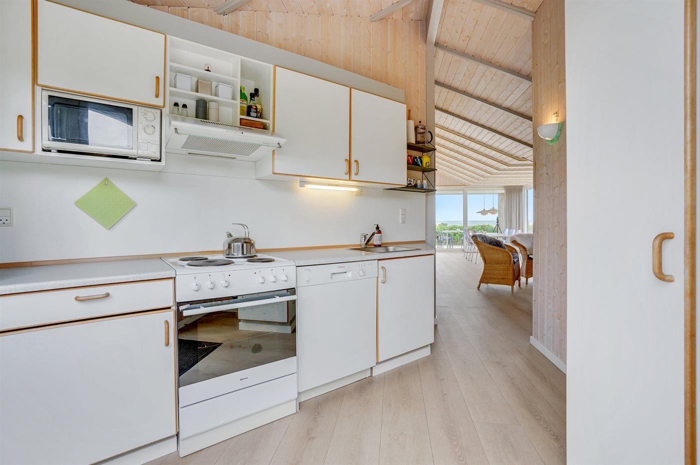 De keuken is uitgerust met koelkast Er is 4 elektrische kookplaten, heteluchtoven, magnetron en vaatwasser.