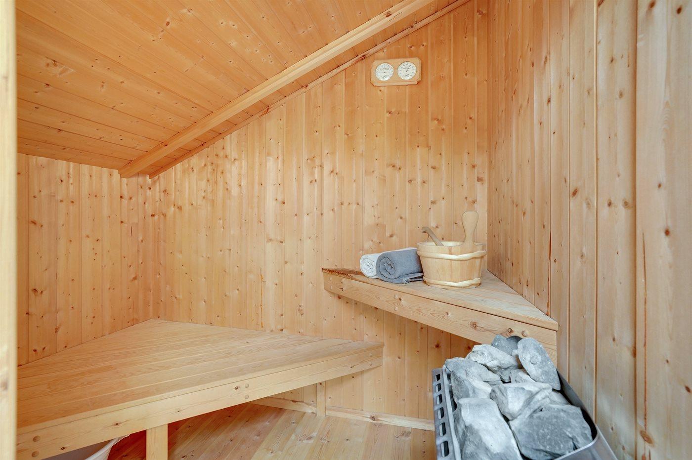 Er is 1 badkamer met douchehok en 1 toilet.. Er is vloerverwarming in 1 badkamer. De sauna biedt de gelegenheid tot ontspanning.