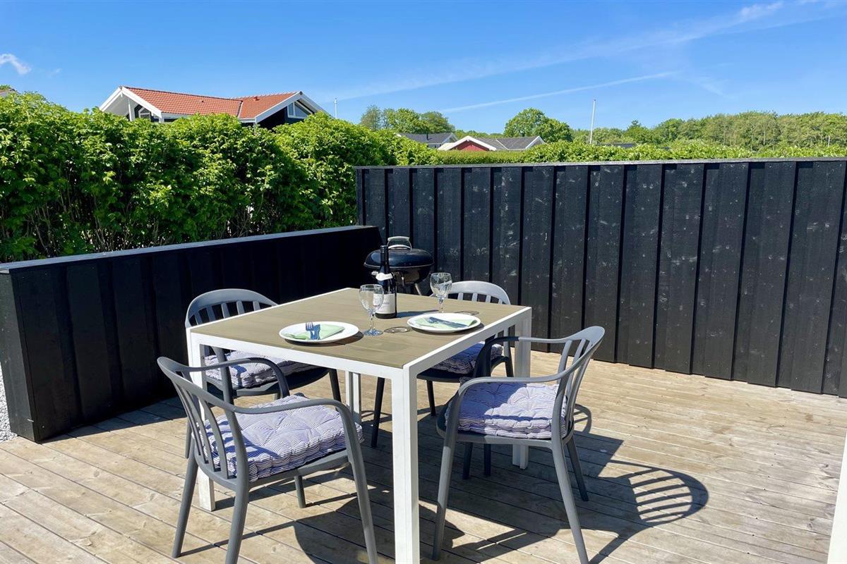 De vakantiewoning is gelegen op een 800 m² groot natuural grond. Afstand tot de zee 300 m. Dichtstbijzijnde winkel 600 m. Bij de vakantiewoning hoort 20 m² terras. Daarnaast is er een 20 m² groot overdekt terras. Gereedschapsruimte.Vuurplaats. Barbecue. Parkeerplaats bij het huis.