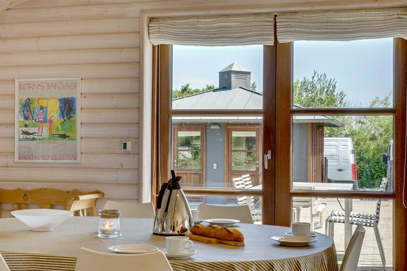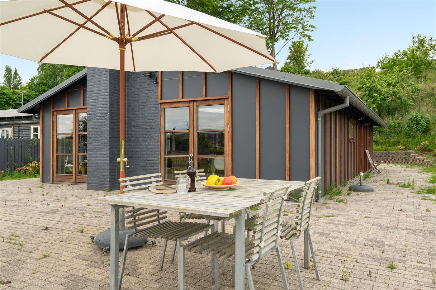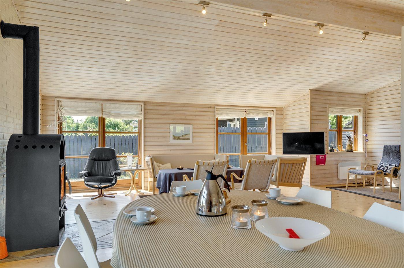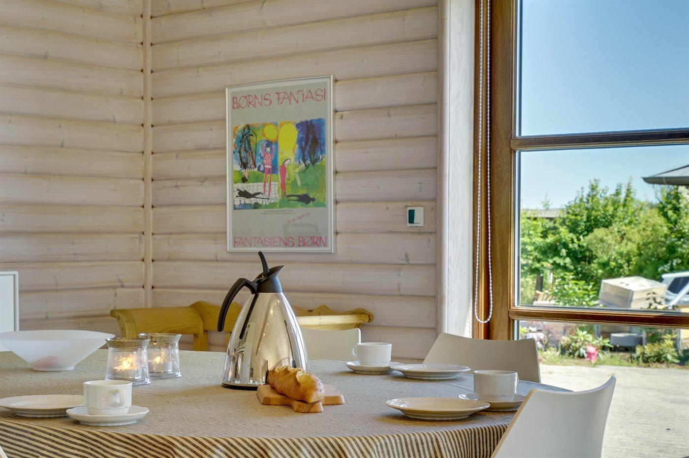 Gezellig vakantiehuis in Sjølund met zeezicht, 2 badkamers, houtkachel en groot terras, ideaal voor een ontspannen verblijf.