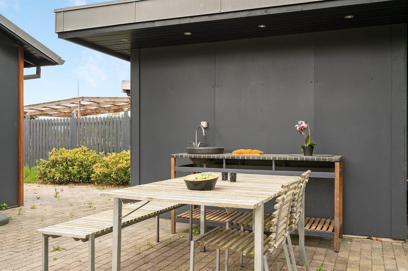 De vakantiewoning is gelegen op een 1076 m² groot natuural grond. Afstand tot de zee 93 m. Dichtstbijzijnde winkel 300 m. Bij de vakantiewoning hoort 100 m² terras. Barbecue. Parkeerplaats bij het huis.