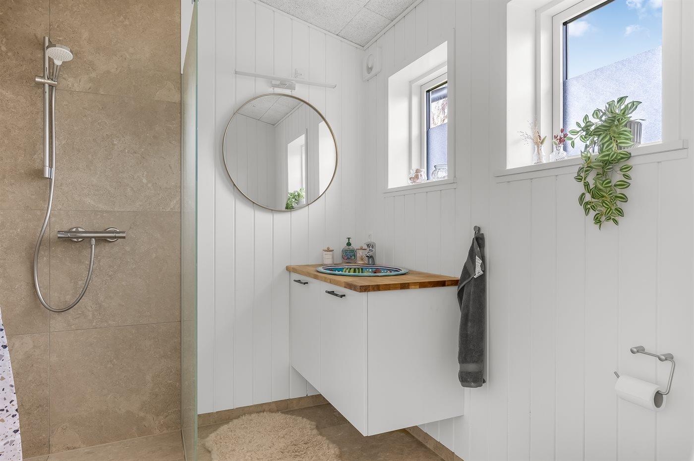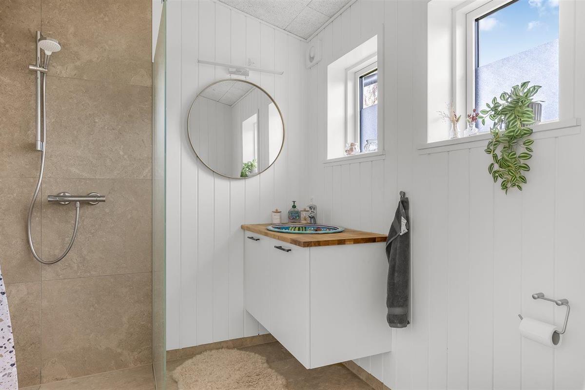 Er is 1 badkamer met douchehok en 2 toiletten, waarvan 1 gastentoilet. Er is vloerverwarming in 1 badkamer. Er is vloerverwarming in het gastentoilet.