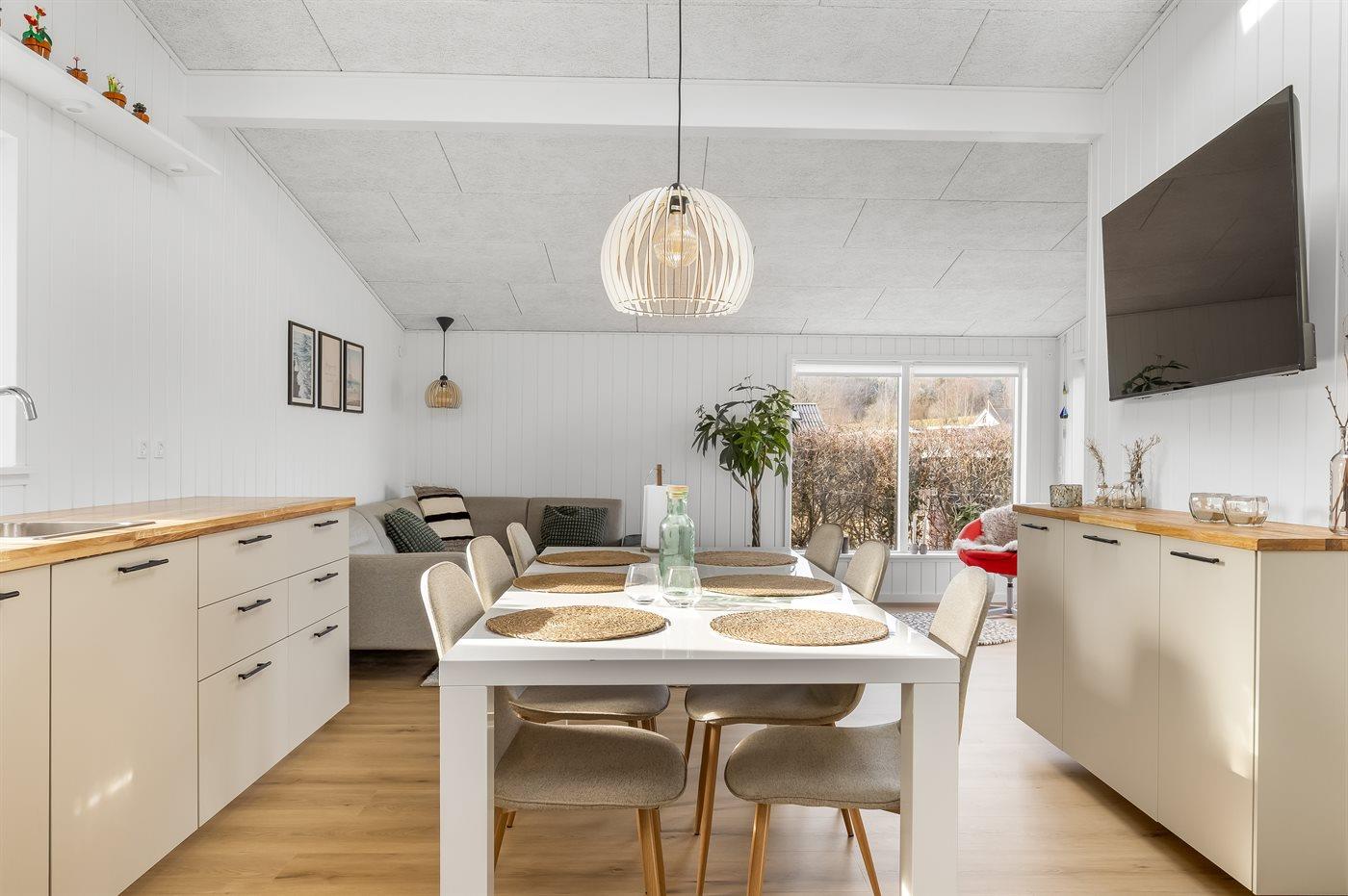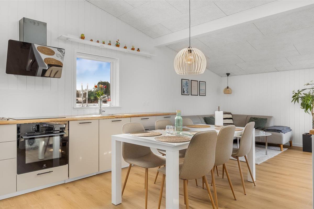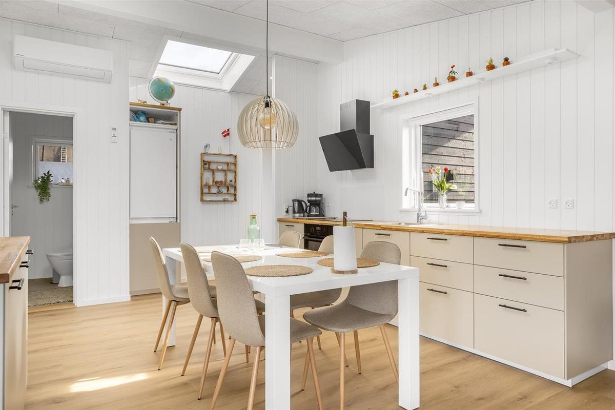 De keuken is uitgerust met koelkast Er is 4 inductiekookplaten, heteluchtoven en vaatwasser.