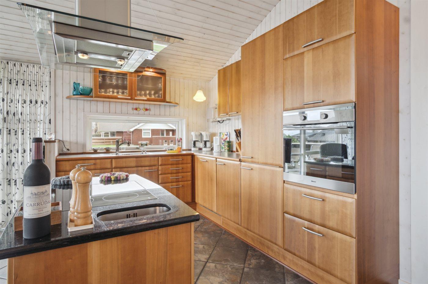 De keuken is uitgerust met koelkast Er is 4 inductiekookplaten, heteluchtoven, magnetron en vaatwasser.