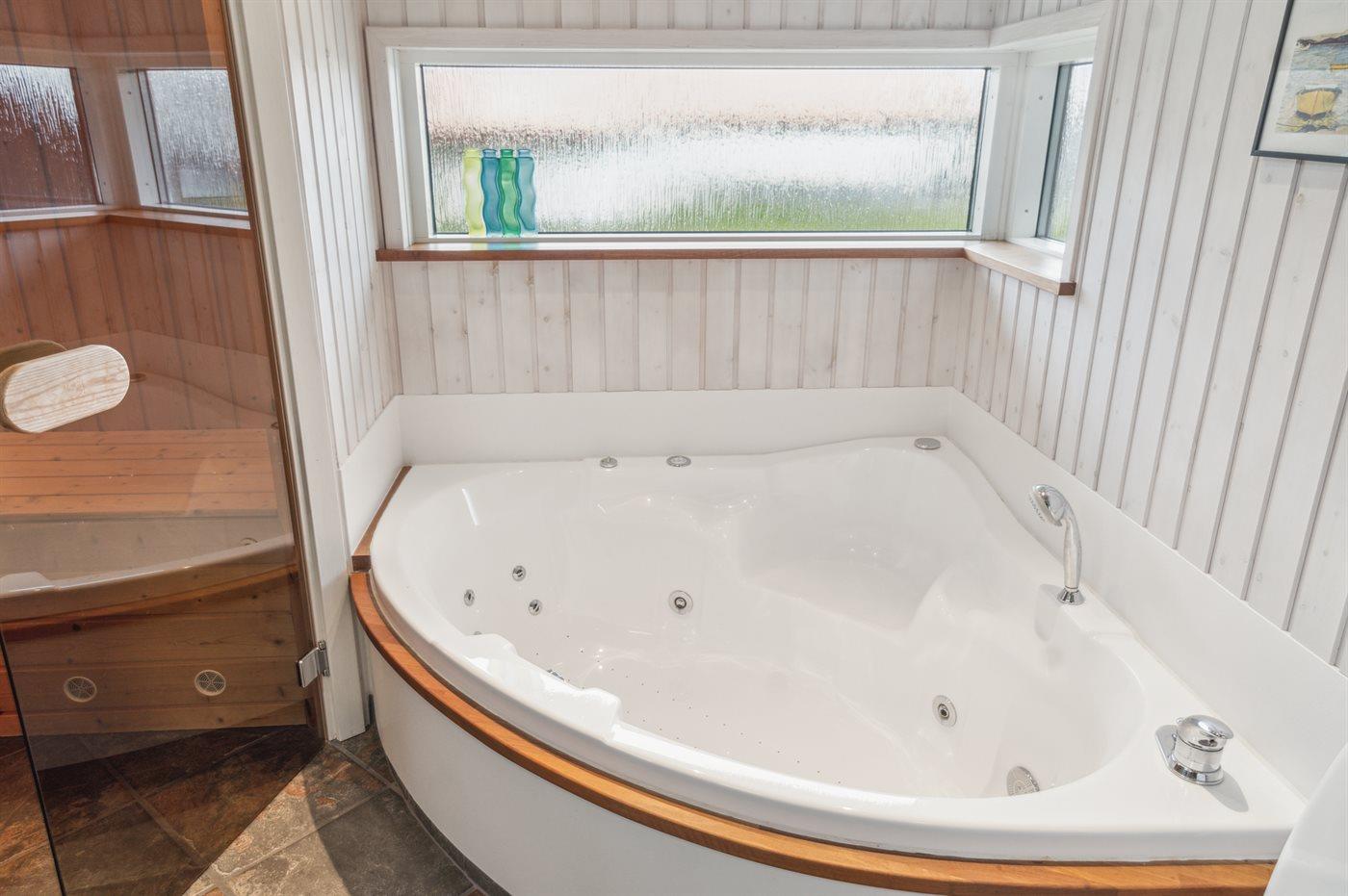Het binnenbubbelbad (vulwater) biedt ontspanning aan 2 personen.