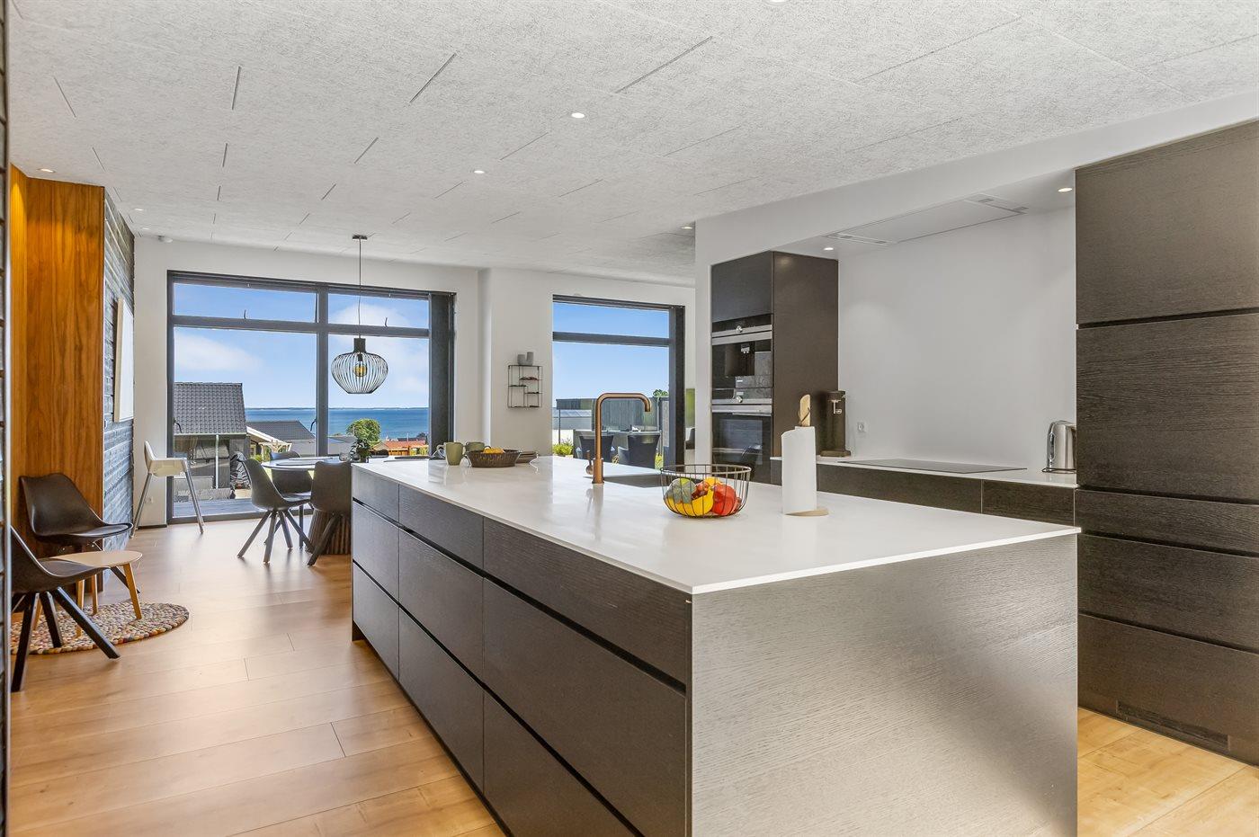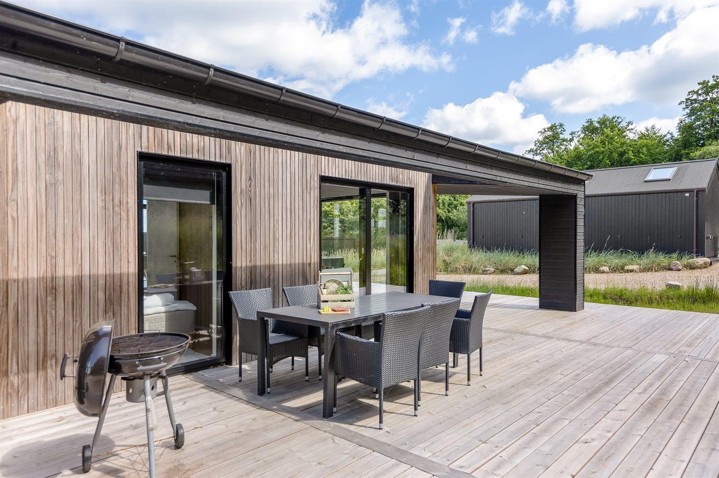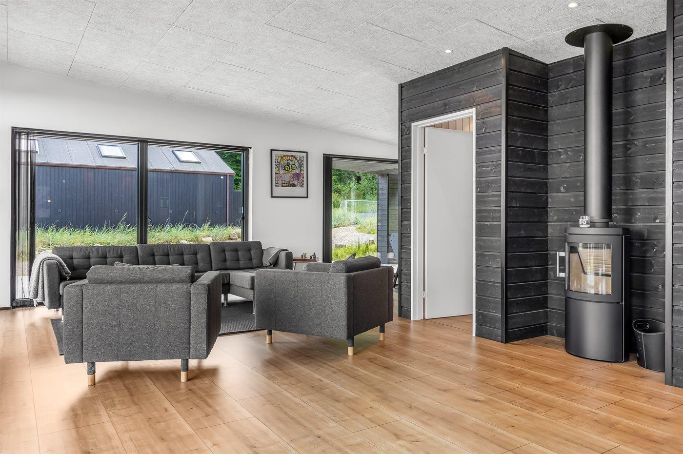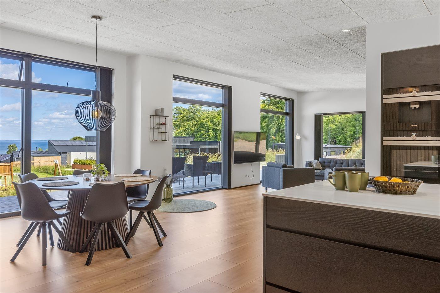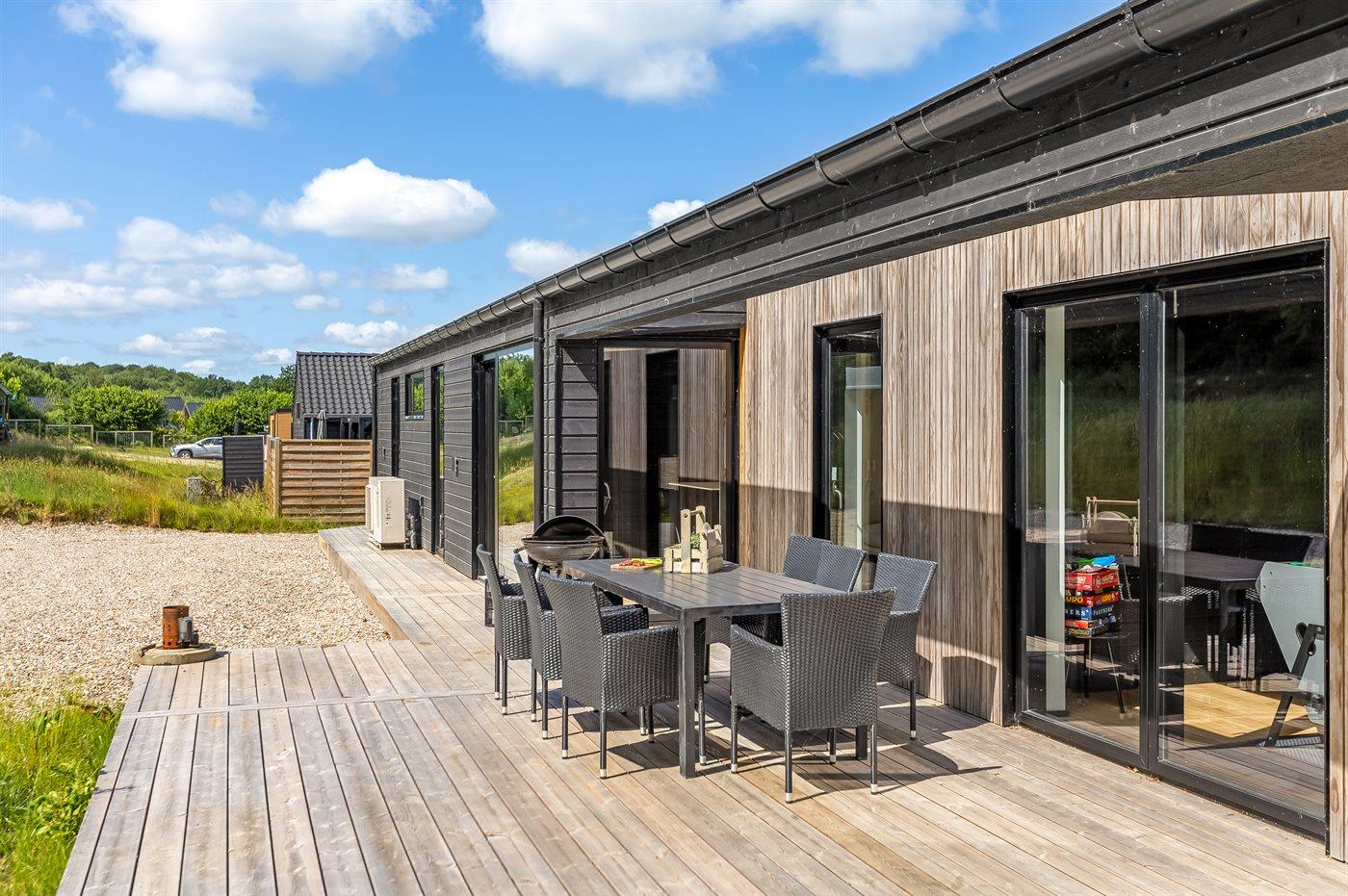 Modern vakantiehuis in Denemarken met zeezicht, vloerverwarming en ruime tuin, ideaal voor een ontspannen verblijf.