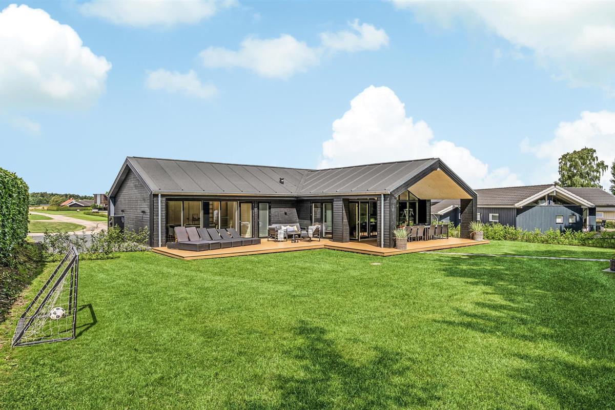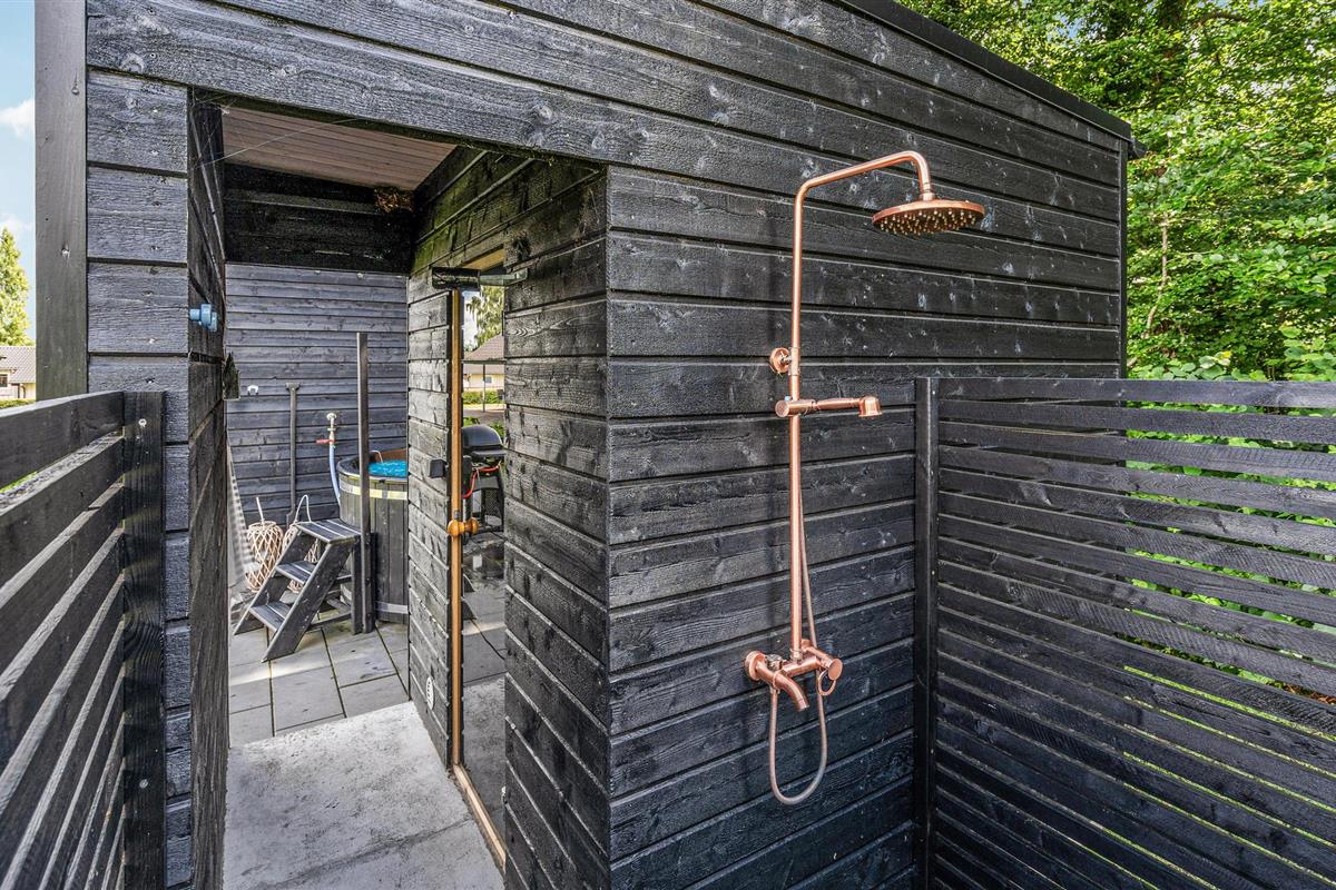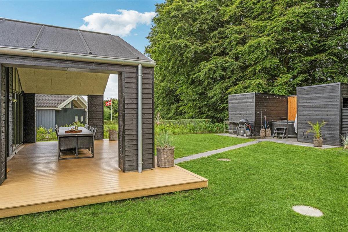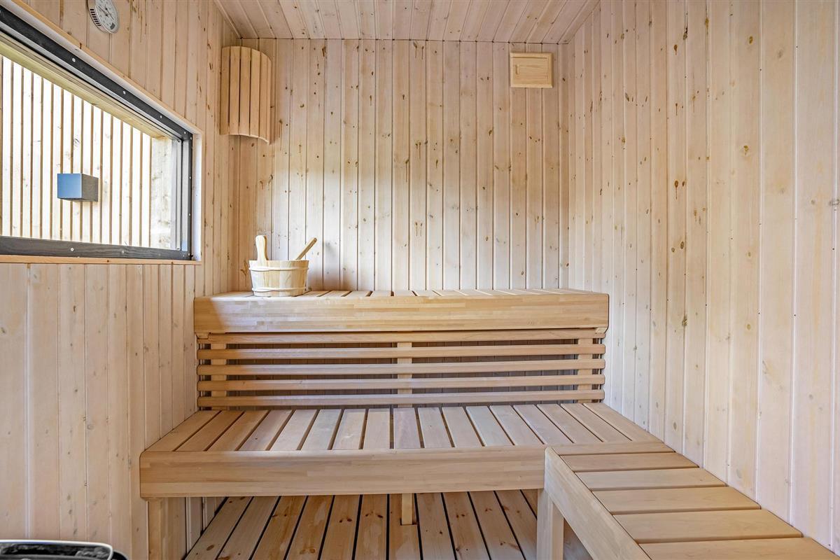 Modern vakantiehuis vlak bij het strand met sauna, hot tub en ruime tuin voor ontspanning.