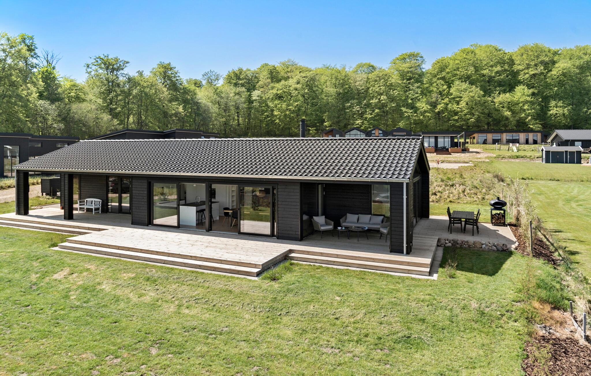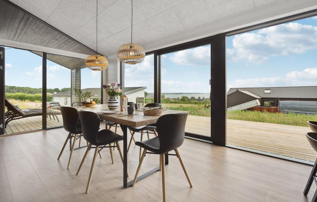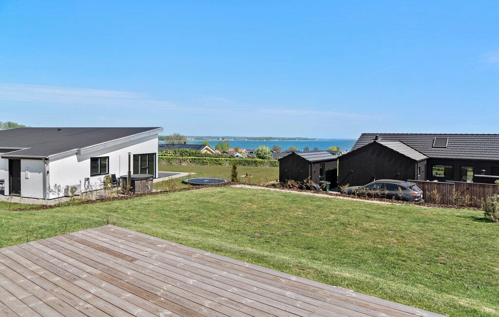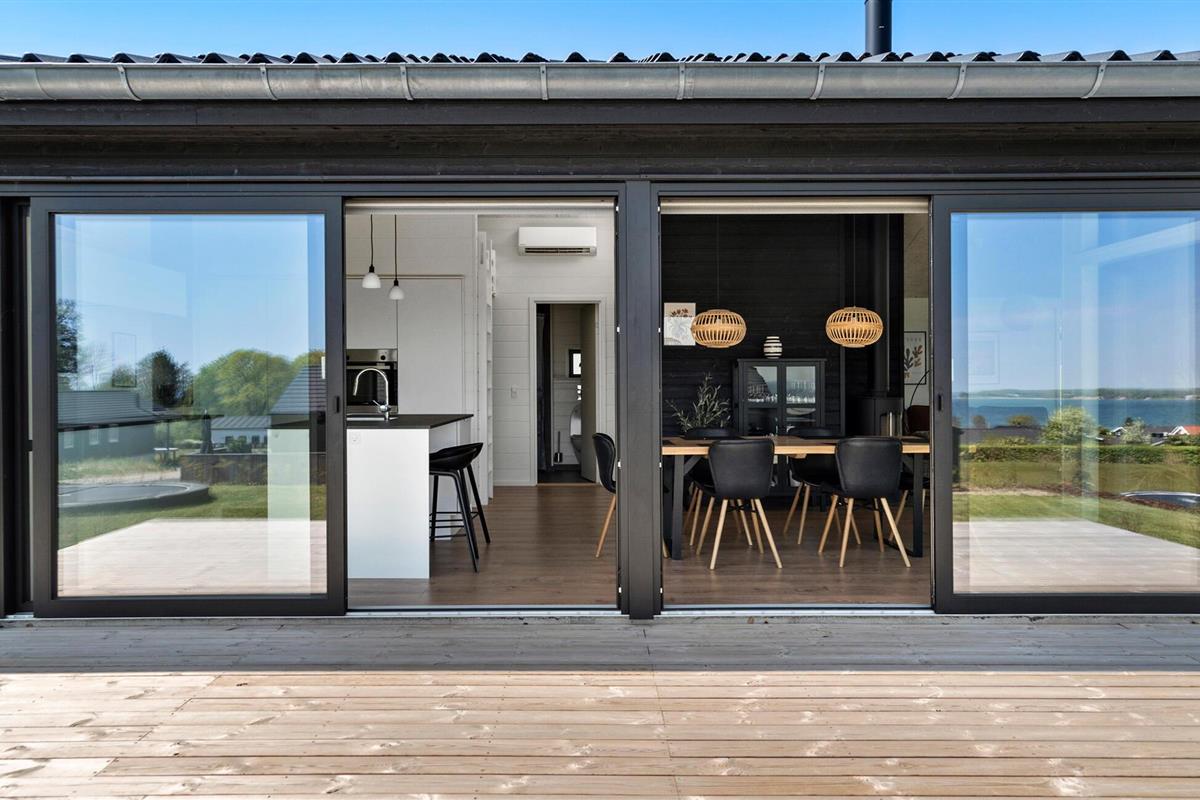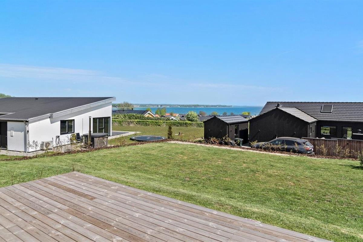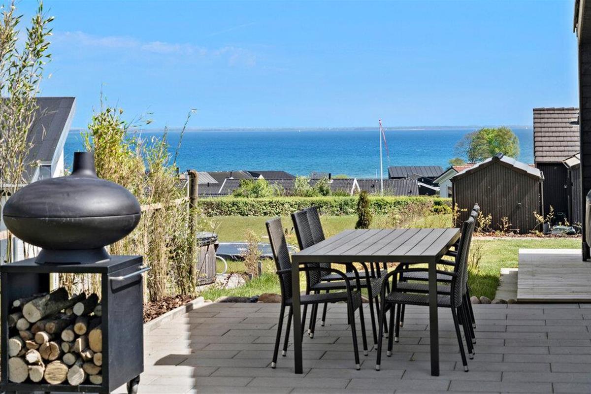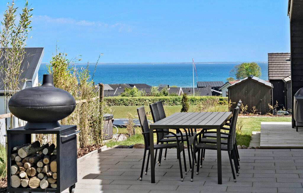Stijlvol vakantiehuis in Grønninghoved met zeezicht, nabij een kindvriendelijk zandstrand en ruime tuin.