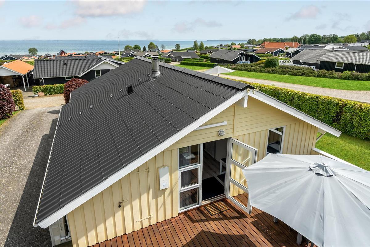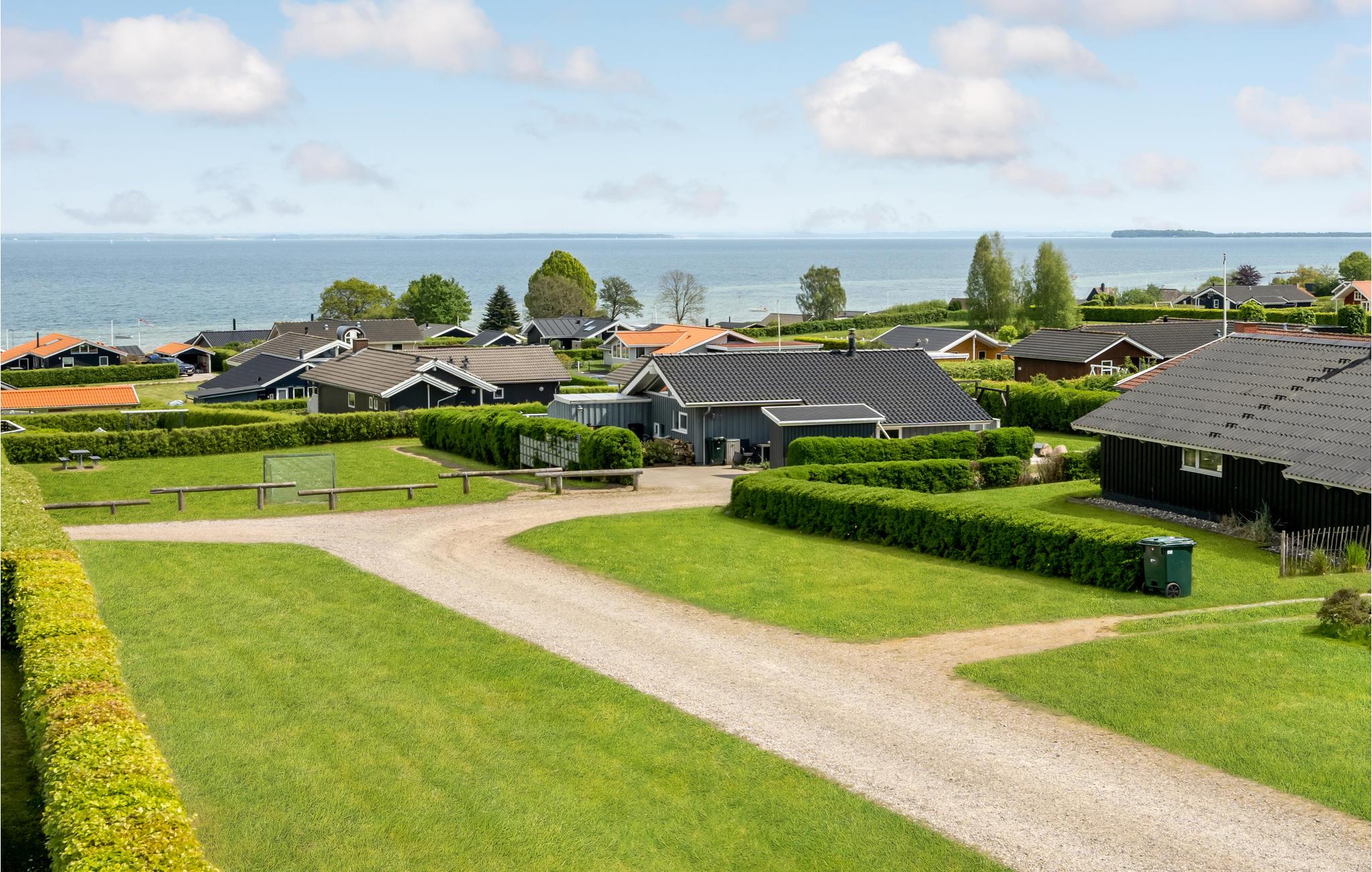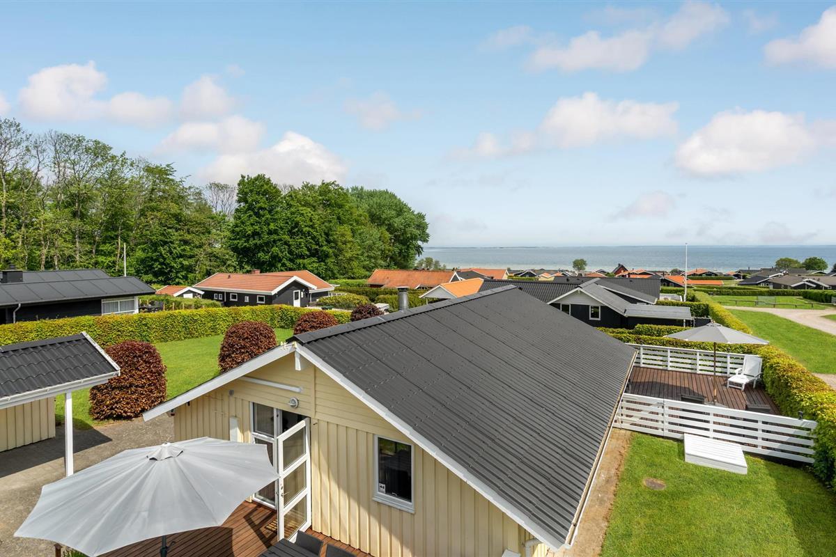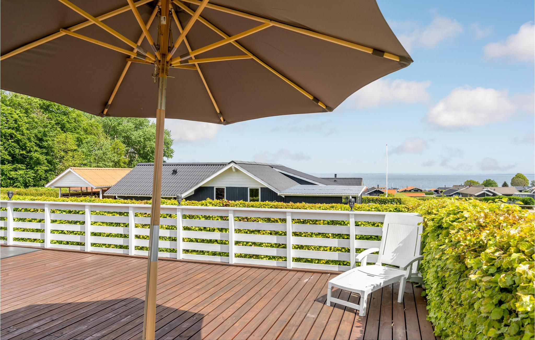 Dit mooie, nieuwere houten huis ligt op een aangelegd tuinperceel, omgeven door bomen. Het huis is goed uitgerust met een moderne keuken en badkamer en mooi, comfortabel meubilair. Het ligt in een gevarieerde en heuvelachtige omgeving. Vanaf het terras en de woonkamer heeft u een prachtig panoramisch uitzicht op de Kleine Belt tot aan Funen. Het huis ligt in een groot, nieuw vakantiehuisgebied.
