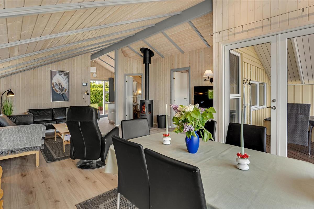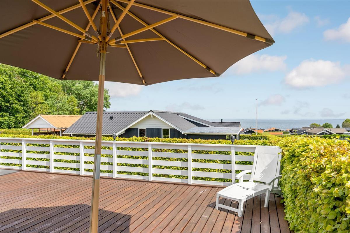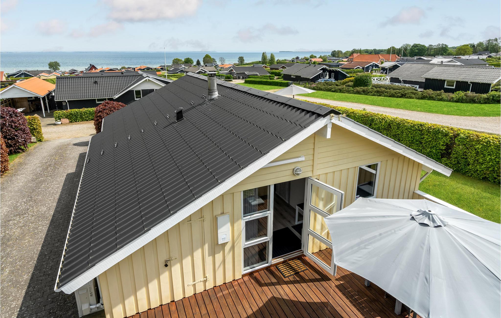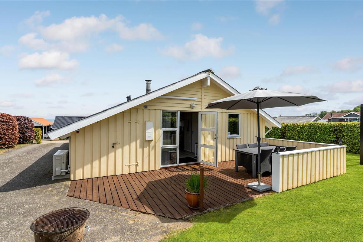 Dit mooie, nieuwere houten huis ligt op een aangelegd tuinperceel, omgeven door bomen. Het huis is goed uitgerust met een moderne keuken en badkamer en mooi, comfortabel meubilair. Het ligt in een gevarieerde en heuvelachtige omgeving. Vanaf het terras en de woonkamer heeft u een prachtig panoramisch uitzicht op de Kleine Belt tot aan Funen. Het huis ligt in een groot, nieuw vakantiehuisgebied.