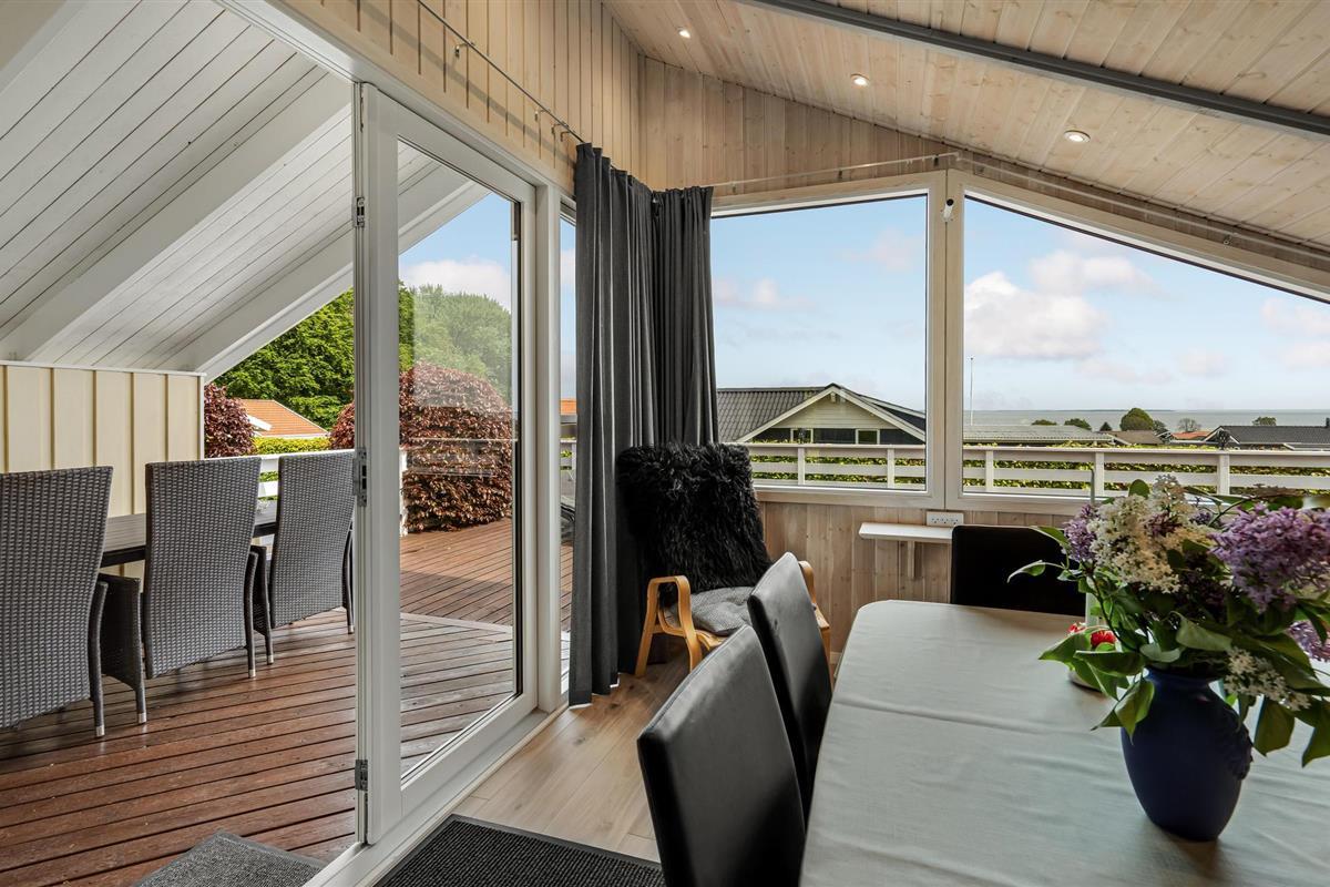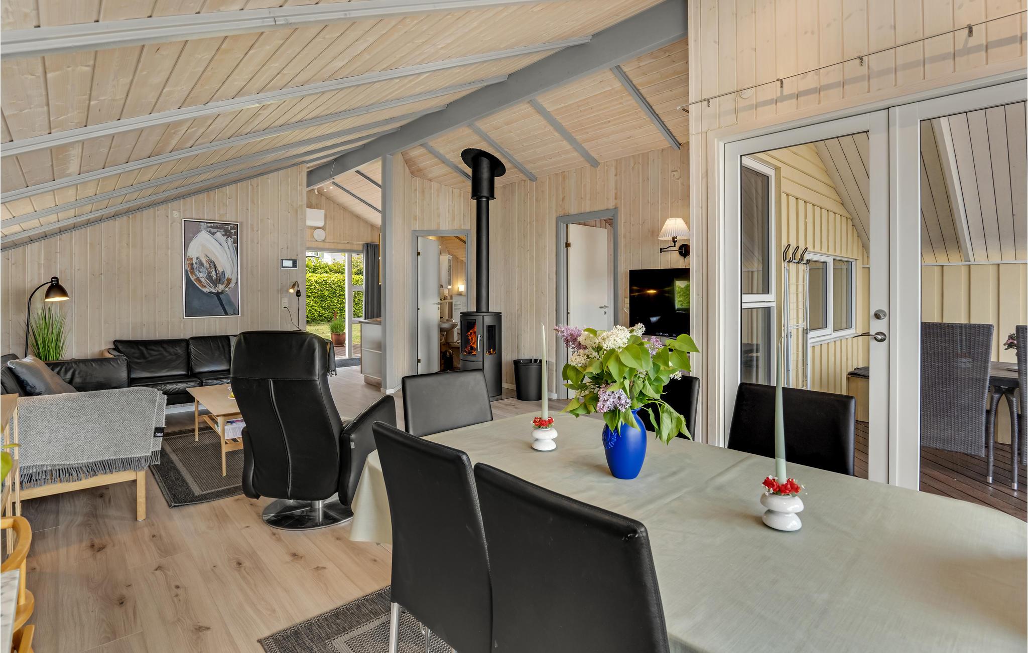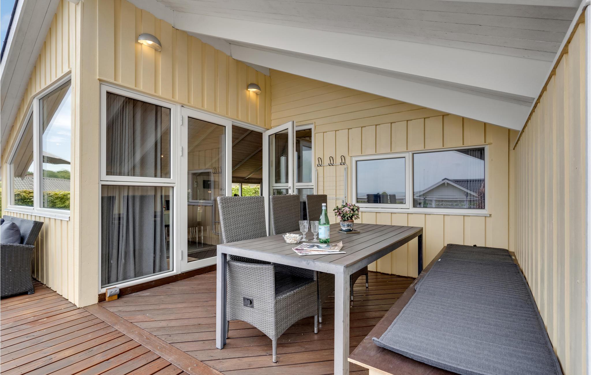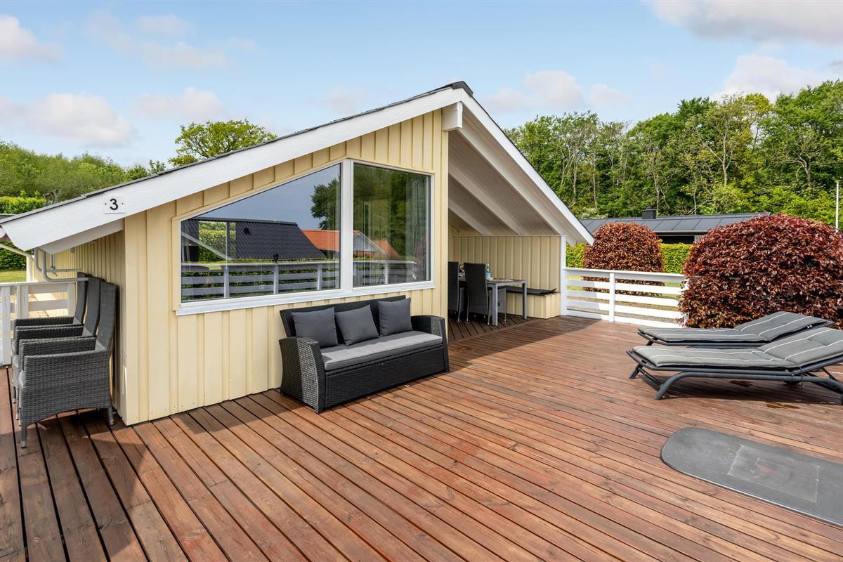 Dit mooie, nieuwere houten huis ligt op een aangelegd tuinperceel, omgeven door bomen. Het huis is goed uitgerust met een moderne keuken en badkamer en mooi, comfortabel meubilair. Het ligt in een gevarieerde en heuvelachtige omgeving. Vanaf het terras en de woonkamer heeft u een prachtig panoramisch uitzicht op de Kleine Belt tot aan Funen. Het huis ligt in een groot, nieuw vakantiehuisgebied.