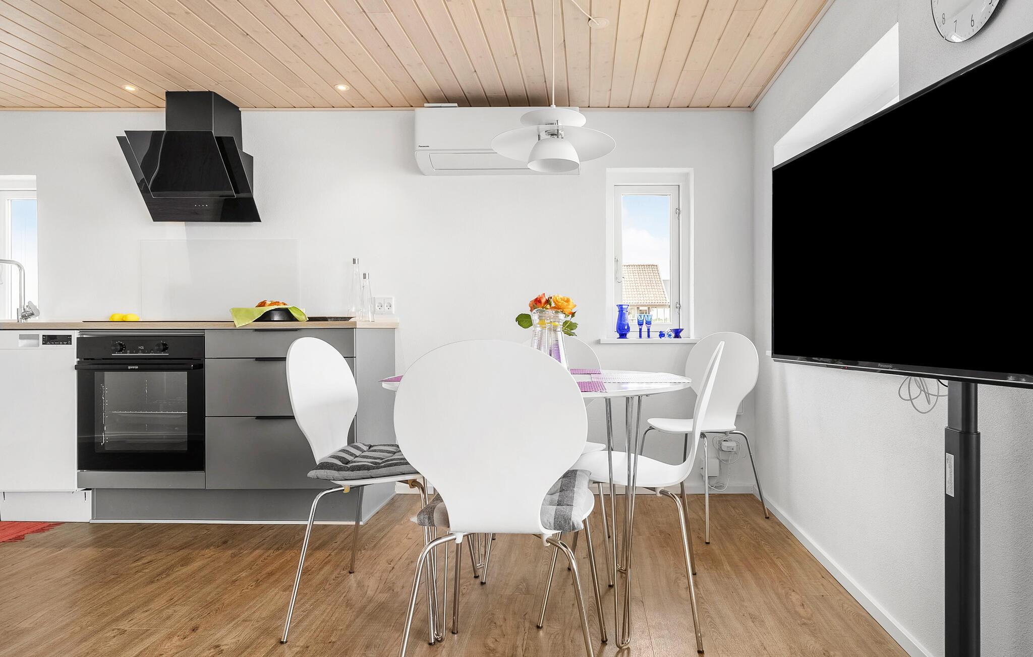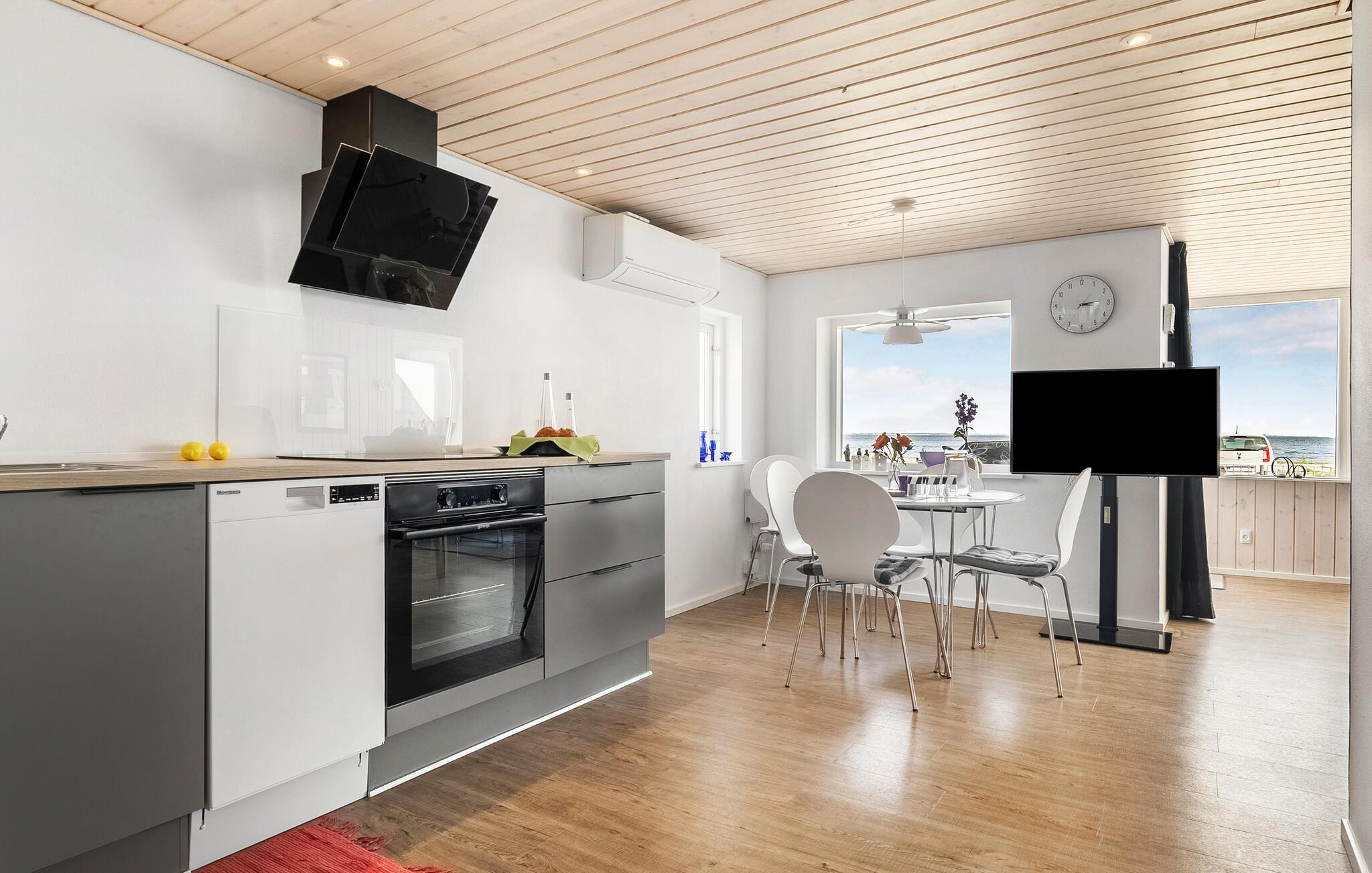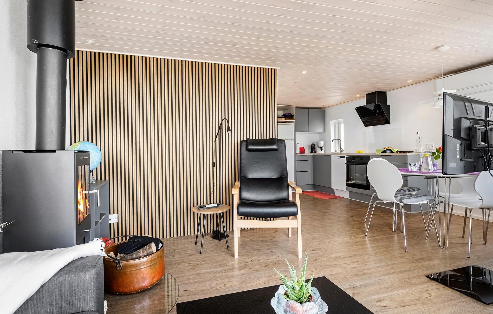 Het comfortabele huis verwelkomt je op een ideale locatie aan zee en is de perfecte plek voor een ontspannen vakantie, waar je zwemplezier en excursies in de omgeving kunt combineren. Het zandstrand is vanaf het huis in een paar stappen te bereiken. Je zult je meteen thuis voelen in de gezellige kamers met houten lambrisering. Dineer met uitzicht op zee bij het gezellige geknetter van de open haard en laat de avondmaaltijd naadloos overgaan in een leuke spelletjesavond.