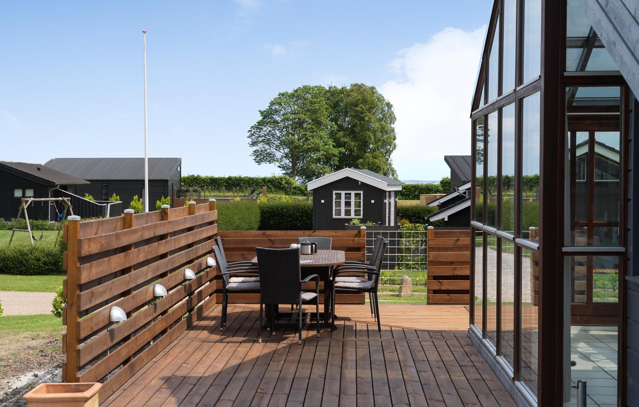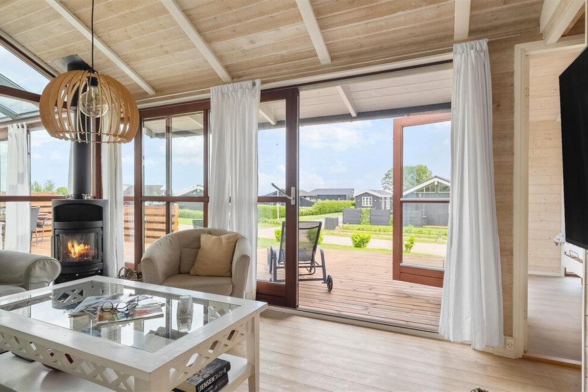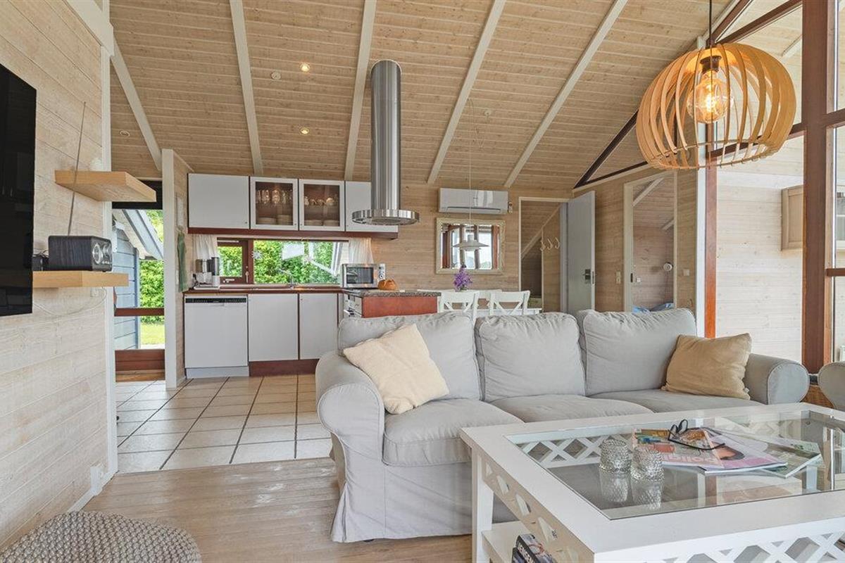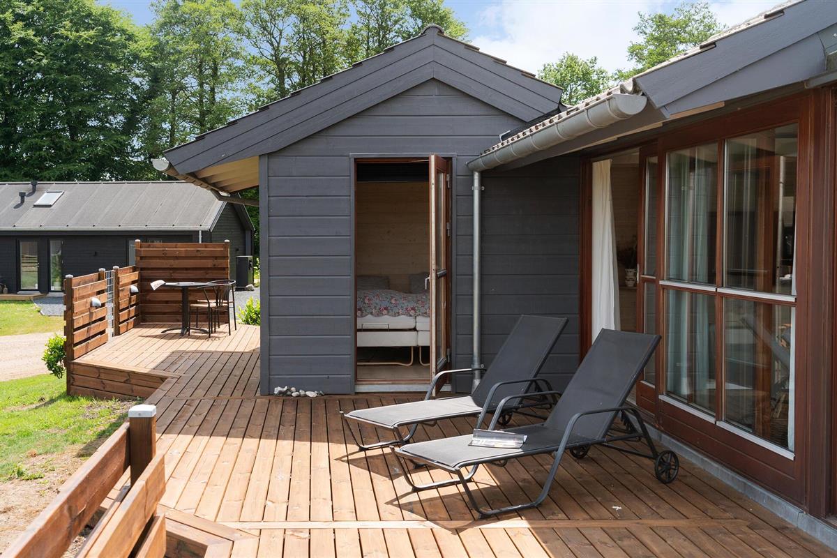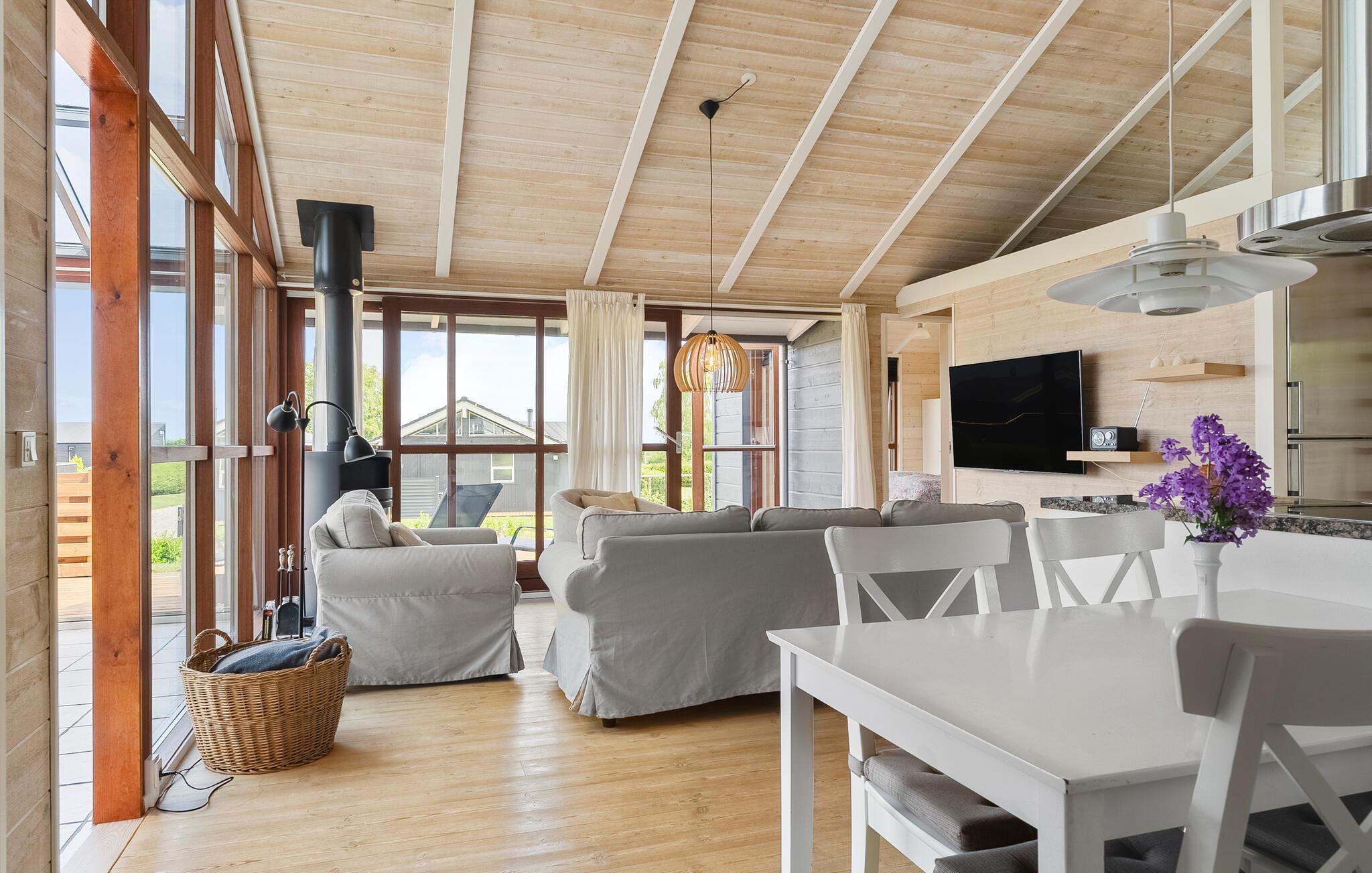 Geniet van een lichte vakantiewoning met sauna, open haard en terras nabij strand en natuur in Denemarken.