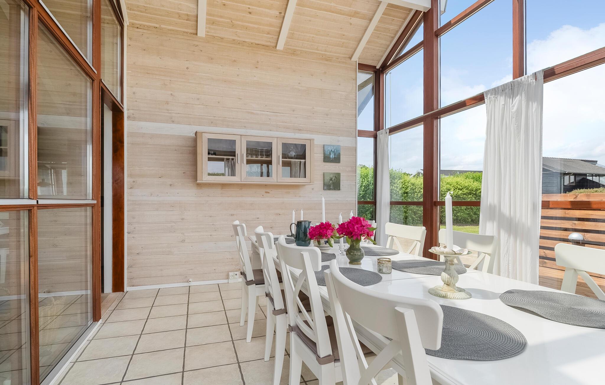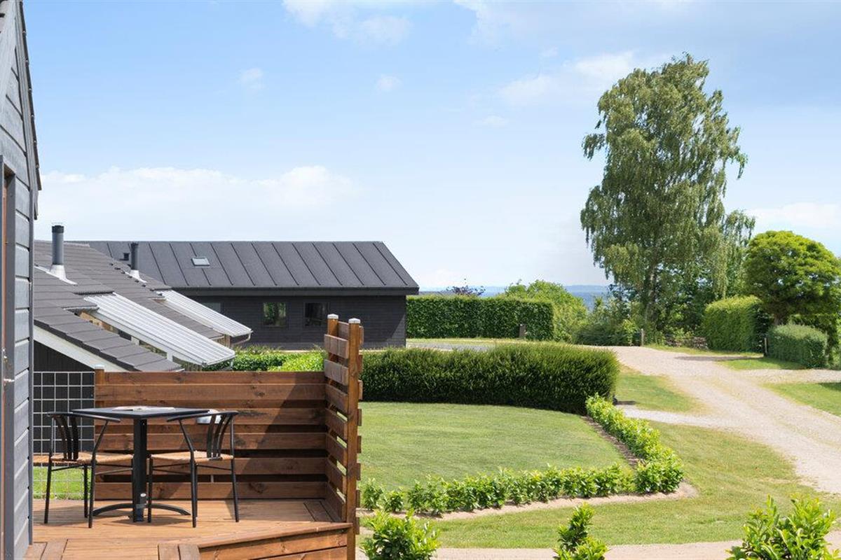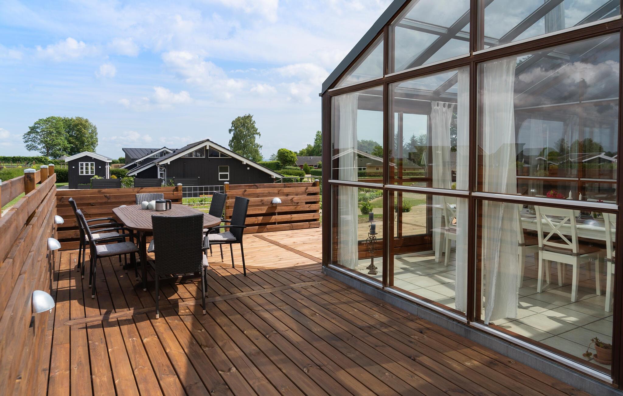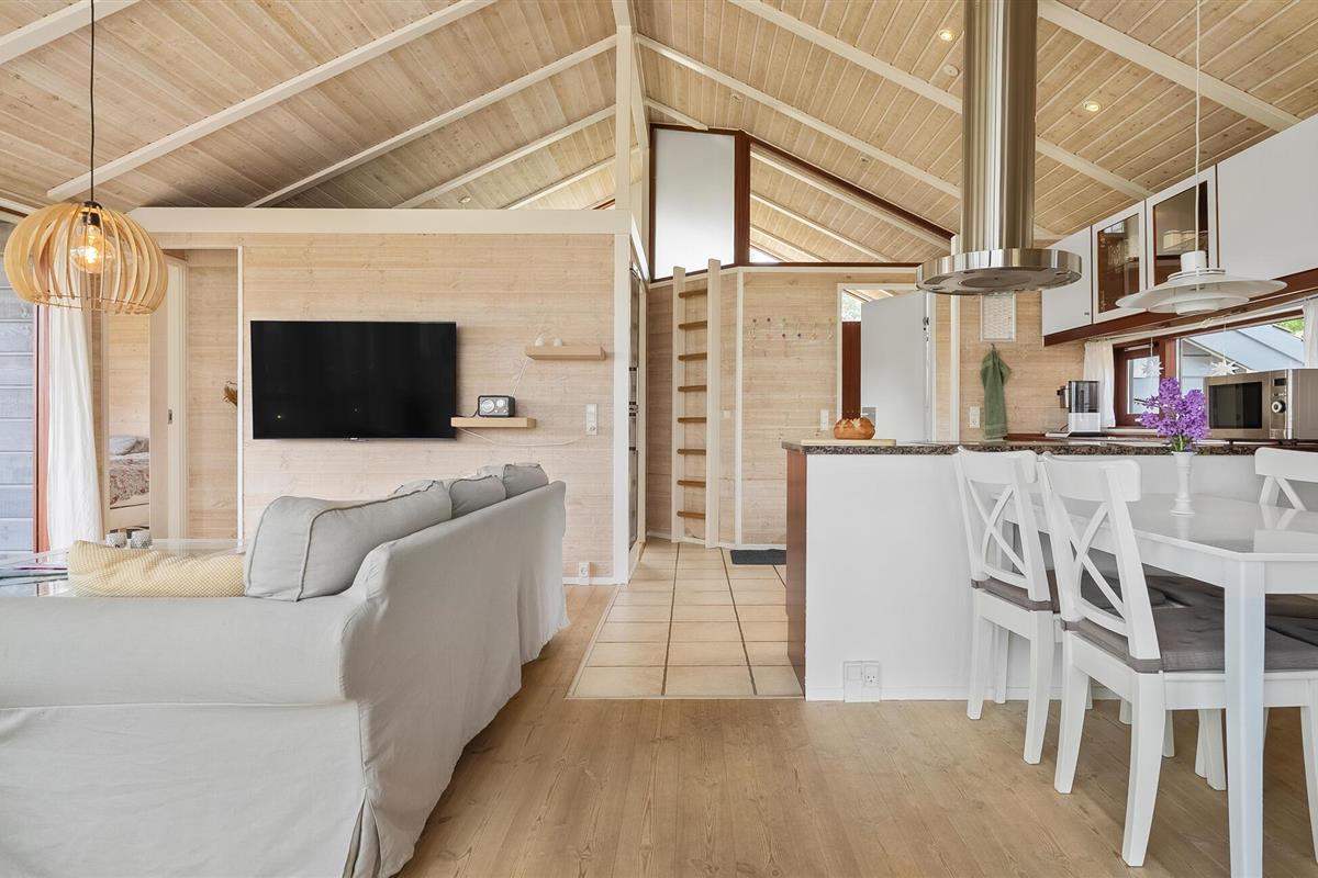 Geniet van een lichte vakantiewoning met sauna, open haard en terras nabij strand en natuur in Denemarken.