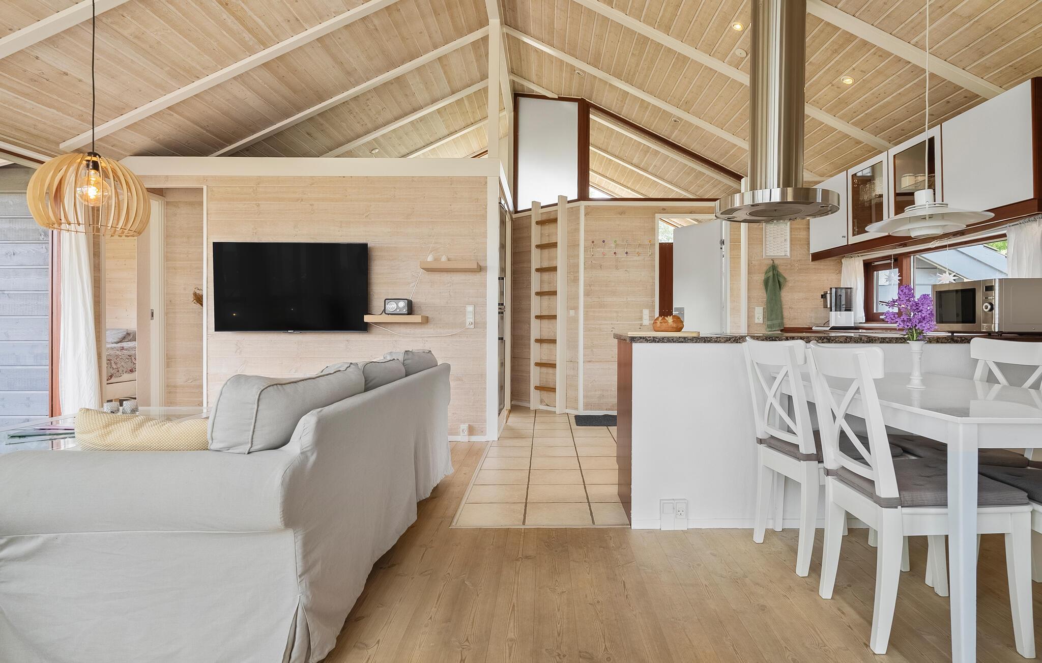 Hier wordt u verwelkomd door een daglichtrijke vakantiewoning met een gezellige inrichting en vriendelijk design. De keuken en de woonkamer zijn slechts gescheiden door een kitchenette, zodat beide kamers kunnen profiteren van de mooie lichtinval. Naast de whirlpool in de badkamer is er ook een sauna, een open haard voor gezellige warmte in de koude maanden en airconditioning op warme zomerdagen. Een groot terras nodigt uit tot mooie uren onder de open hemel en het open perceel biedt allerlei activiteiten voor jong en oud. Hier vindt u buitenspelen, waaronder een zandbak en een glijbaan, een barbecue voor ontspannen avonden met heerlijke maaltijden en ligstoelen zodat u comfortabel naar de verandering van de wolkenformaties kunt kijken.