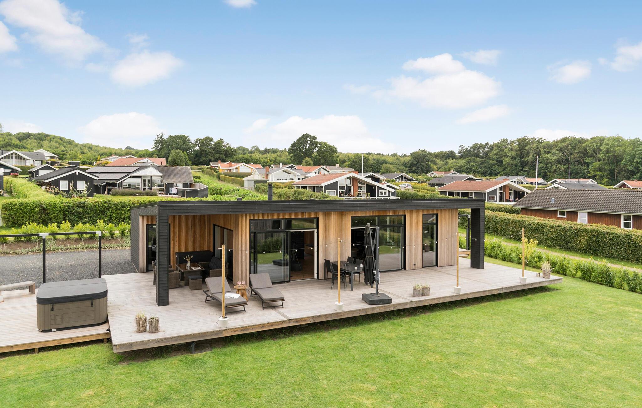 Modern vakantiehuis nabij strand met zeezicht en luxe voorzieningen.