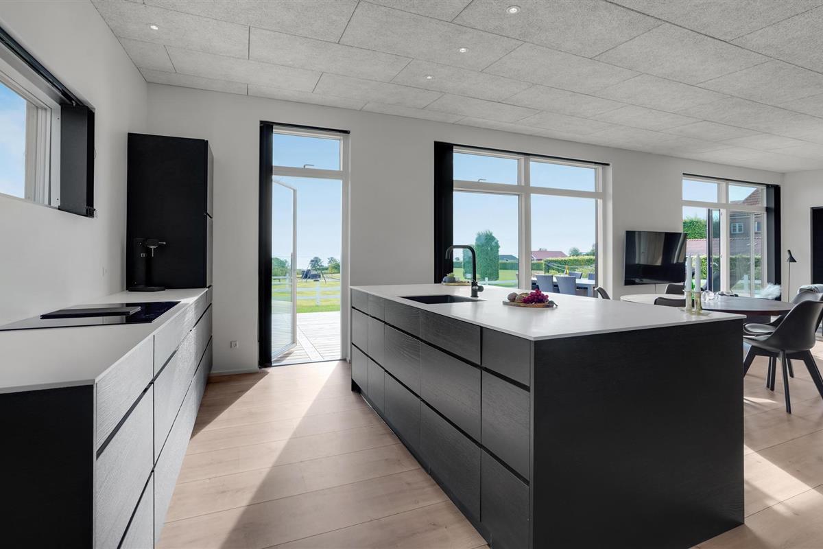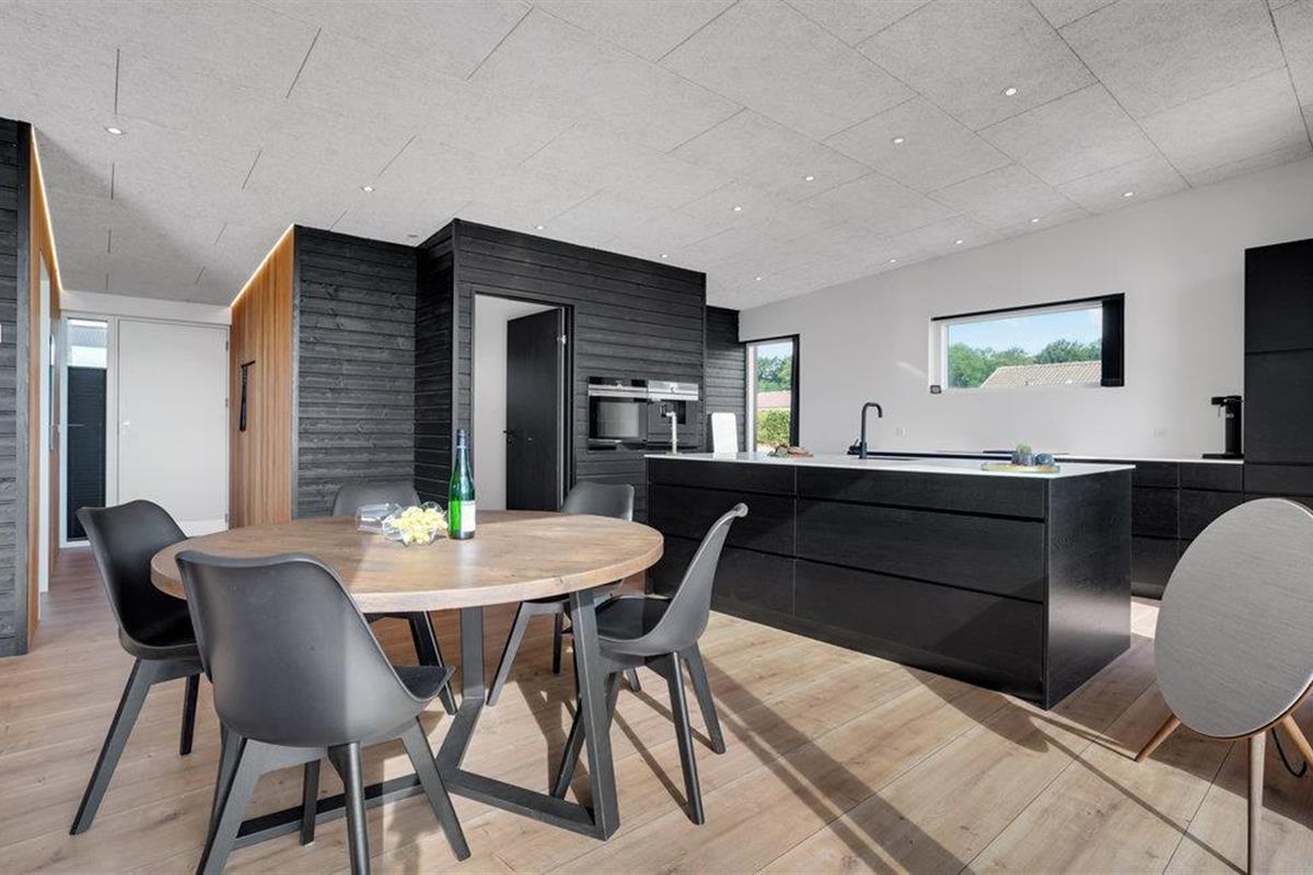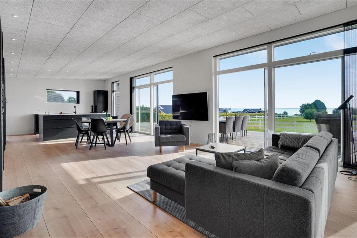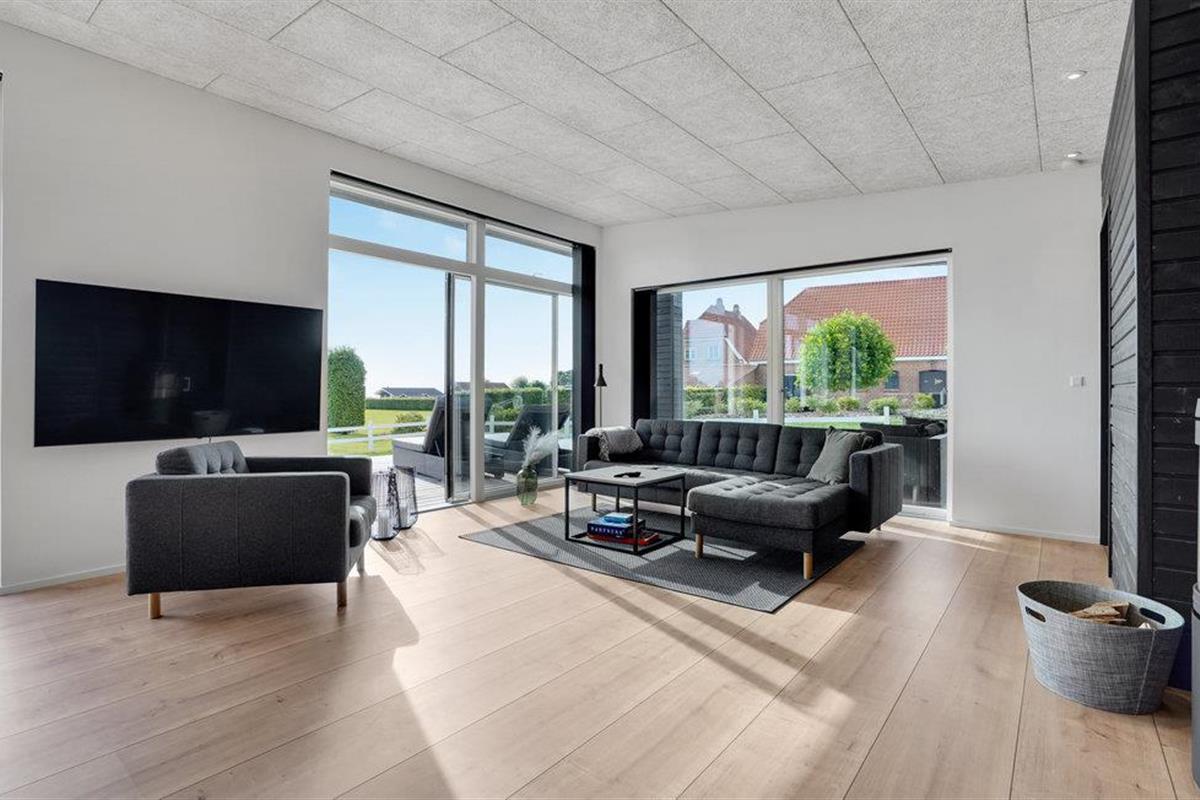 Het mooie en moderne vakantiehuis presenteert zich in tijdloos licht, donker en hoogwaardig meubilair. Enkele houten elementen maken het plaatje compleet en stralen gezelligheid uit. Voel u hier thuis en geniet van een perfect gelukte vakantie met uw familie. De lichtovergoten woonkamer biedt u een prachtig uitzicht op de tuin en de zee.