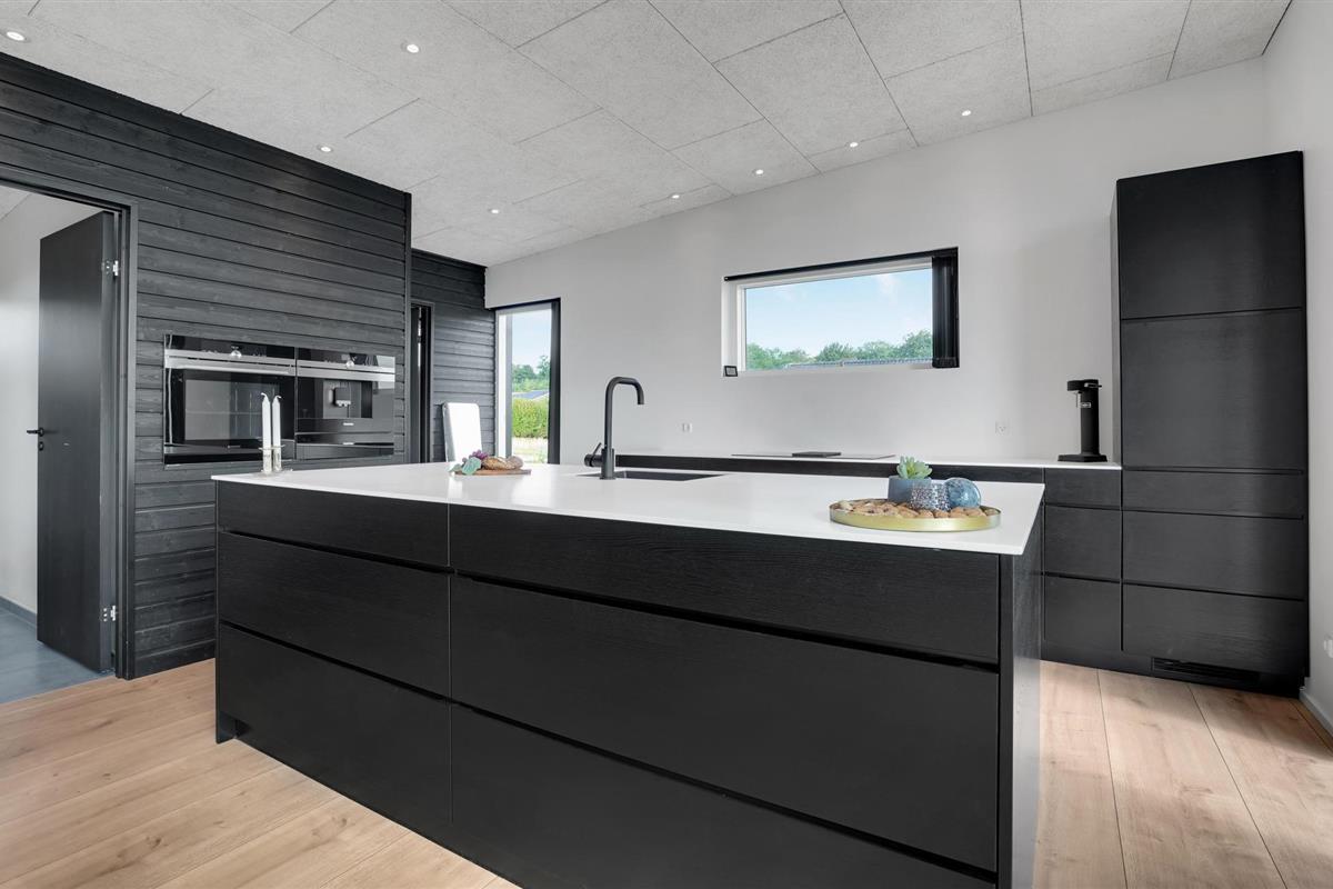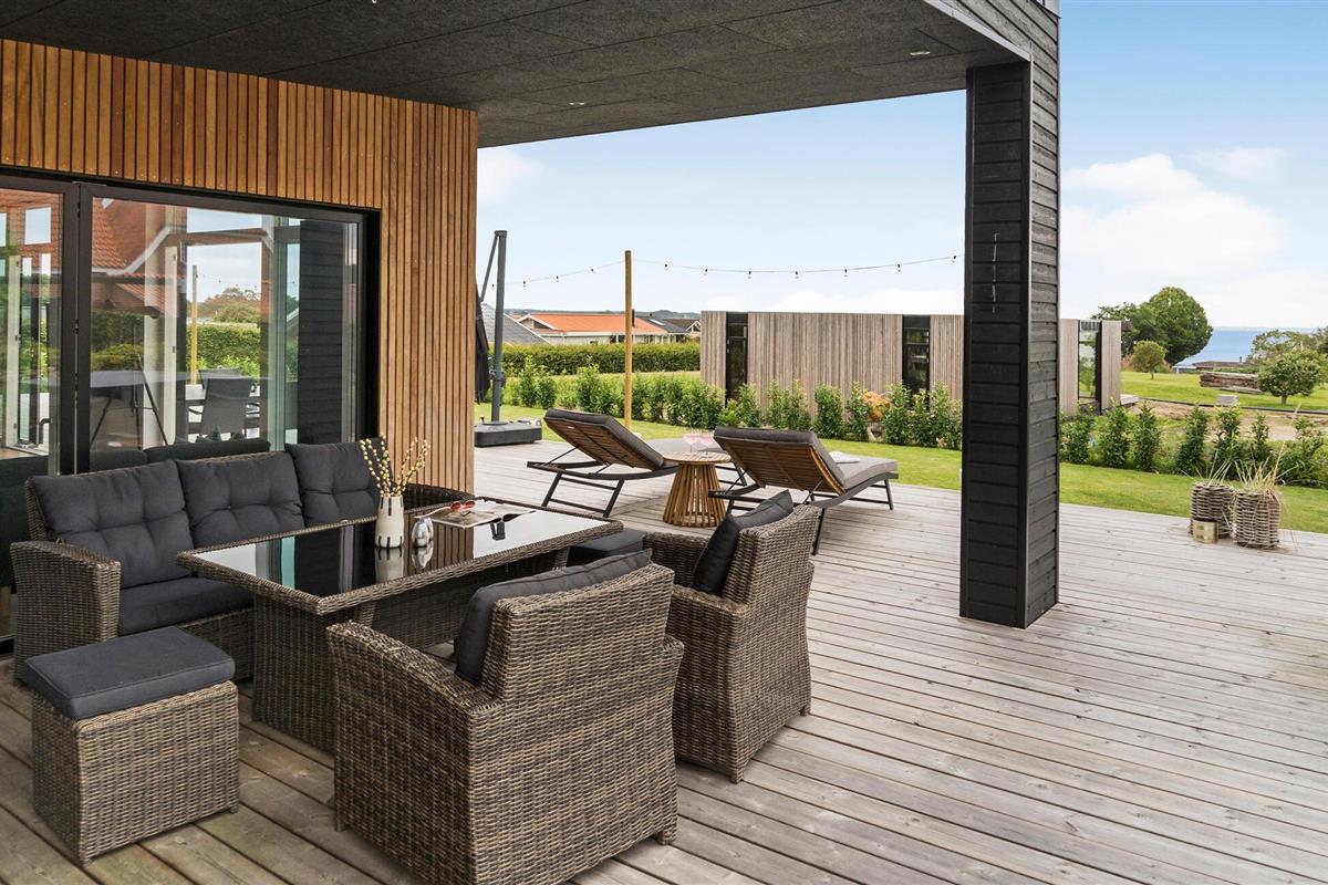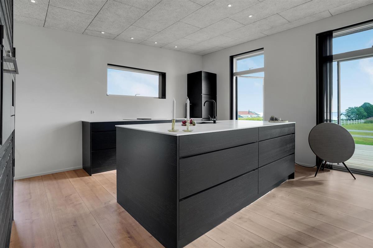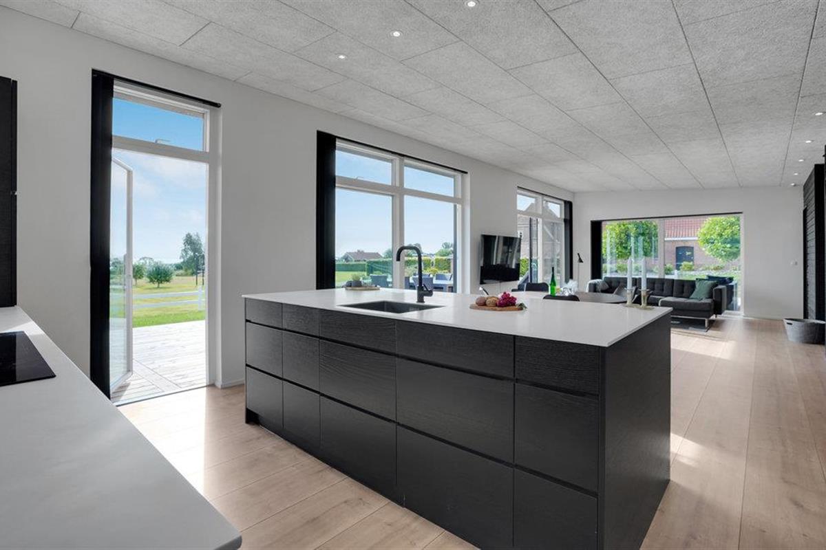 Het mooie en moderne vakantiehuis presenteert zich in tijdloos licht, donker en hoogwaardig meubilair. Enkele houten elementen maken het plaatje compleet en stralen gezelligheid uit. Voel u hier thuis en geniet van een perfect gelukte vakantie met uw familie. De lichtovergoten woonkamer biedt u een prachtig uitzicht op de tuin en de zee.