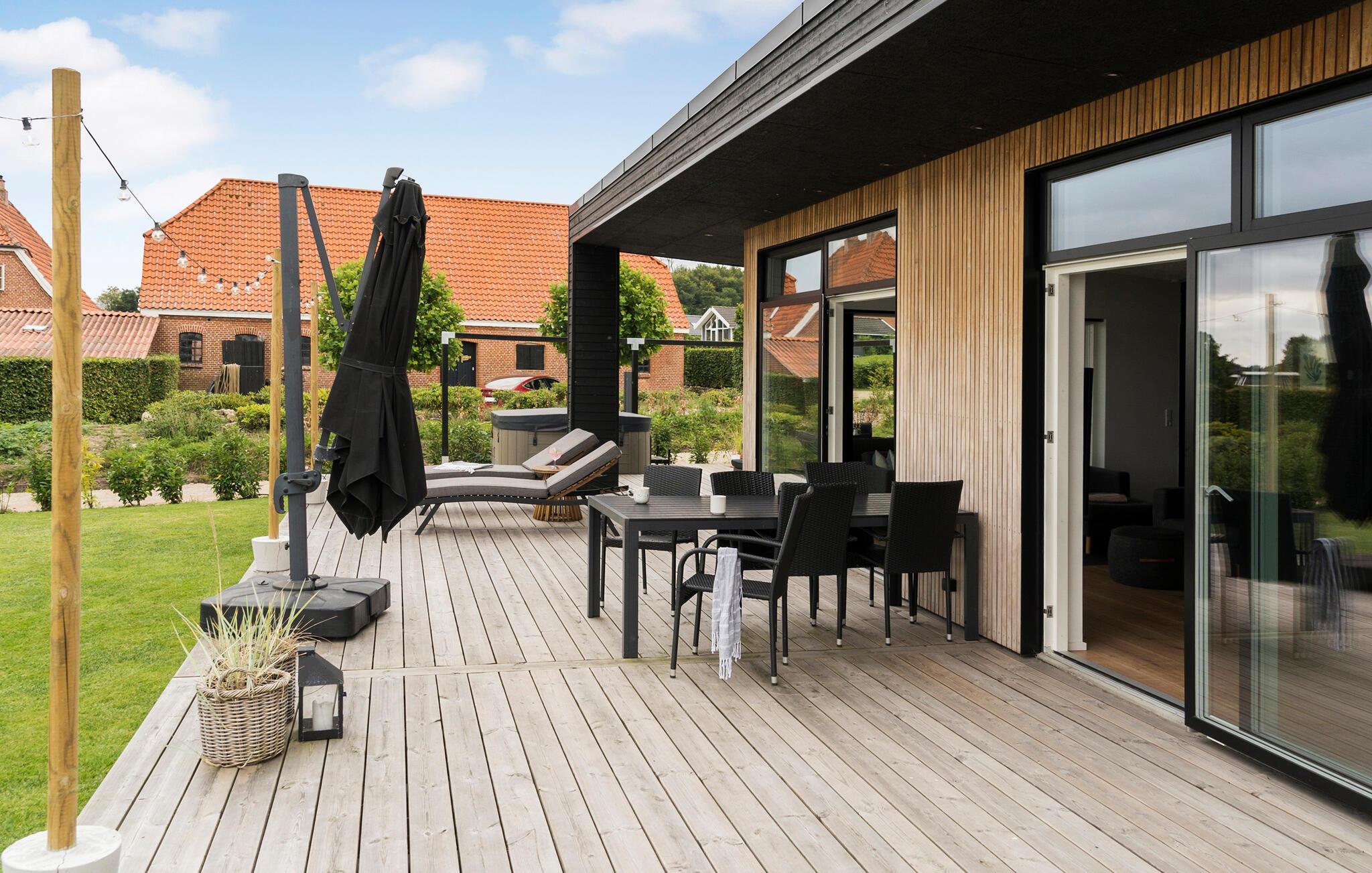 Ontspan op het ruime houten terras terwijl u uw kinderen op het terrein ziet spelen. Vermaak u op het grote grasveld door met het hele gezin Vikingen of voetbal te spelen.