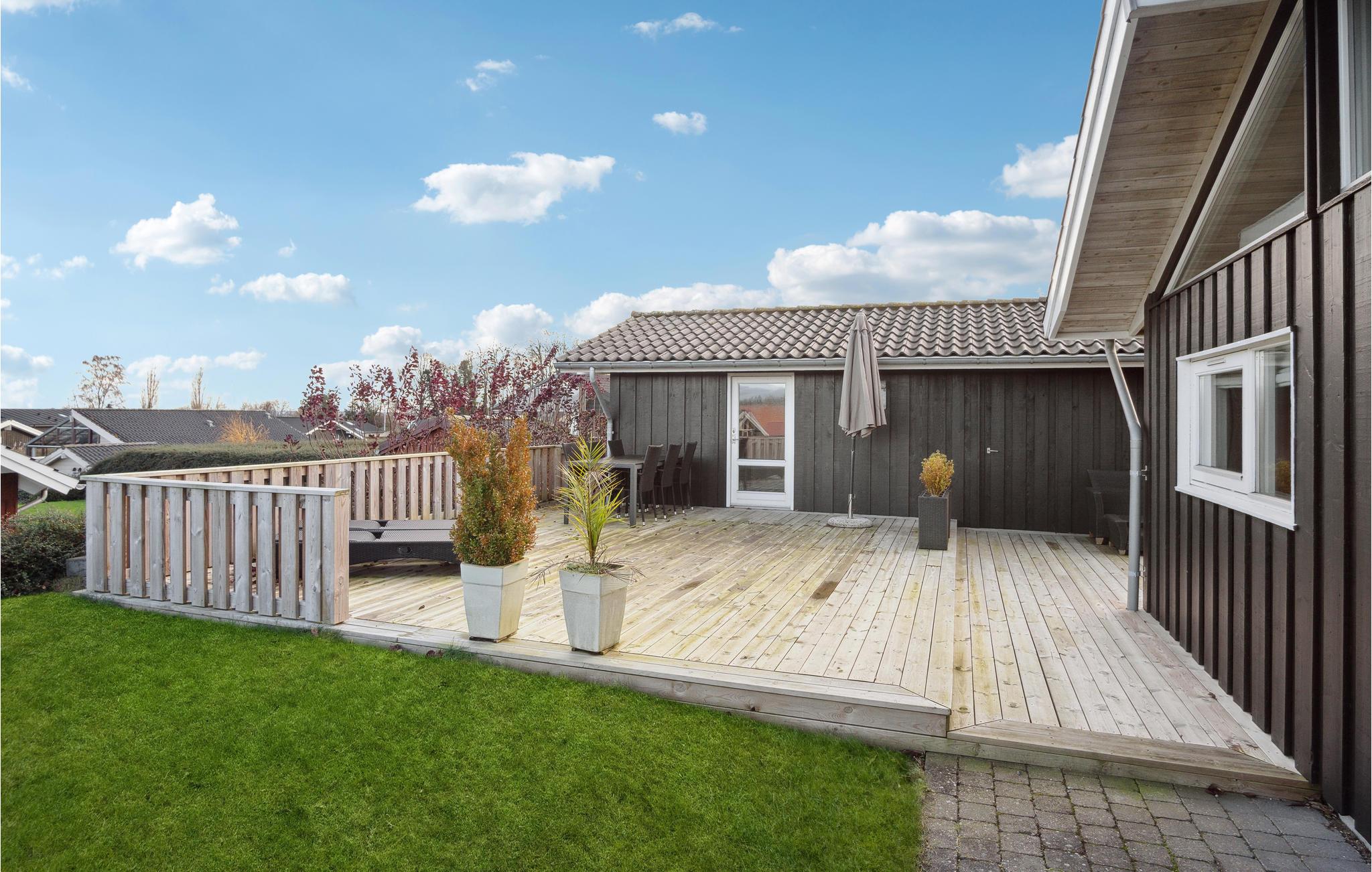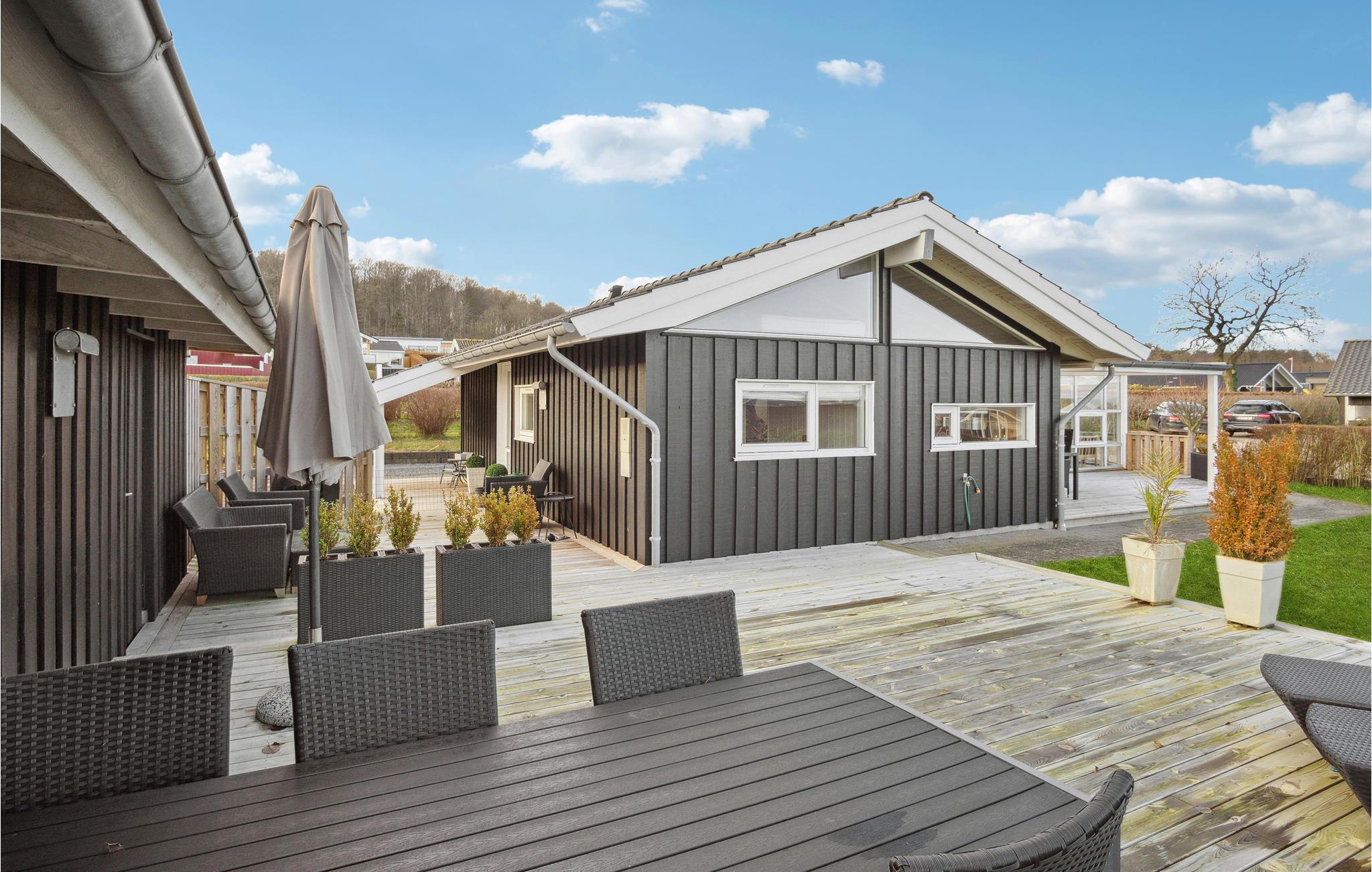 Comfort en gezelligheid verwelkomen je in dit mooie vakantiehuis in Grönninghoved. Geniet van het uitzicht door de grote ramen terwijl je kookt, eet, speelt en ontspant op de bank. De aangrenzende serre is ook een heerlijke plek om je terug te trekken met een boek. Je zult hier niets missen en je helemaal thuis voelen. Je kunt je ook verheugen op de grote houten terrassen, ideaal voor barbecues en andere buitenactiviteiten.