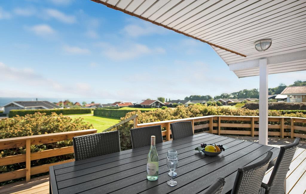 Mooi vakantiehuis op een verhoogde positie bij Grønningehoved. De locatie biedt een fantastisch uitzicht op de Kleine Belt vanuit het woongedeelte en het terras. Het interieur is licht en vriendelijk en er is een woonkamer, een keuken, drie slaapkamers en een alkoof met twee bedden. Het terras is gedeeltelijk overdekt.