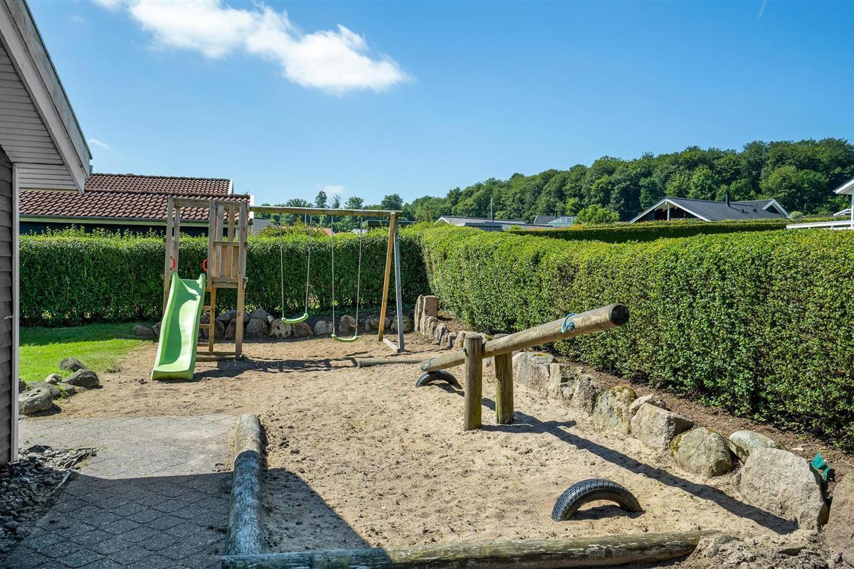 Dit vakantiehuis ligt in een gebied bij Grønninghoved. Het is smaakvol ingericht met mooie, moderne meubels. Zowel vanaf het mooie terras als vanuit de woonkamer kunt u genieten van het uitzicht op de Kleine Belt tot aan Funen. Het vakantiehuisgebied grenst aan het historische dorp 'Skamlingsbanken'. Grote bosgebieden in de buurt van het huis nodigen uit tot vele buitenactiviteiten en natuurbelevenissen. Hier verblijft u ook niet ver van de grote attracties van Jutland zoals Universe, waar u zich een hele dag kunt vermaken met natuurwetenschap, en Givskud Zoo, waar u wilde dieren van dichtbij kunt bekijken.